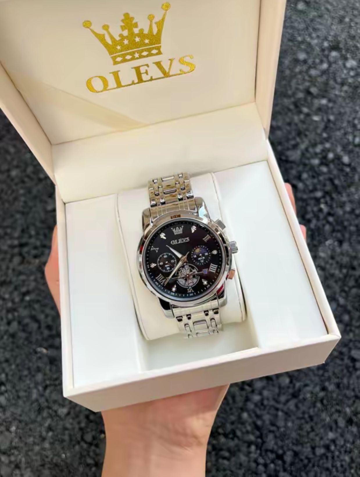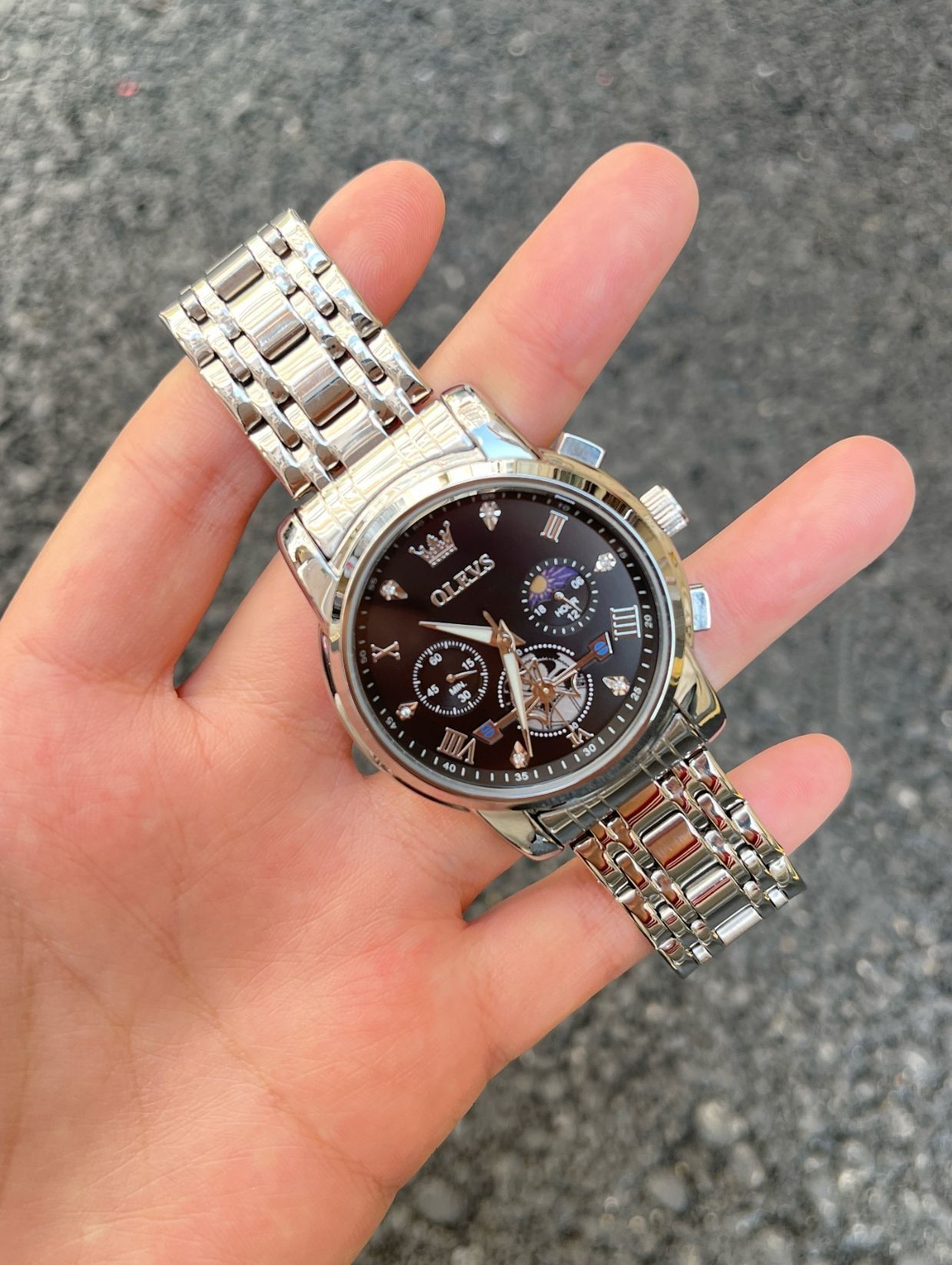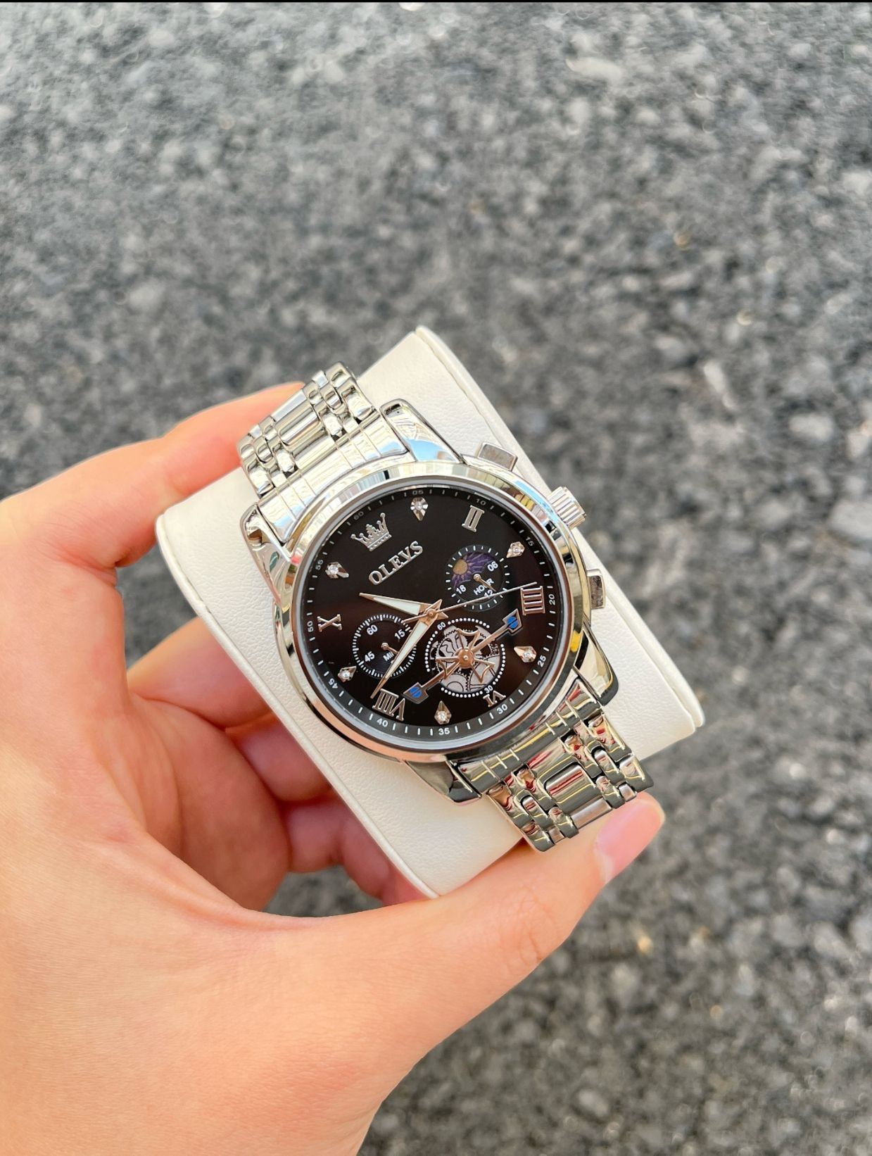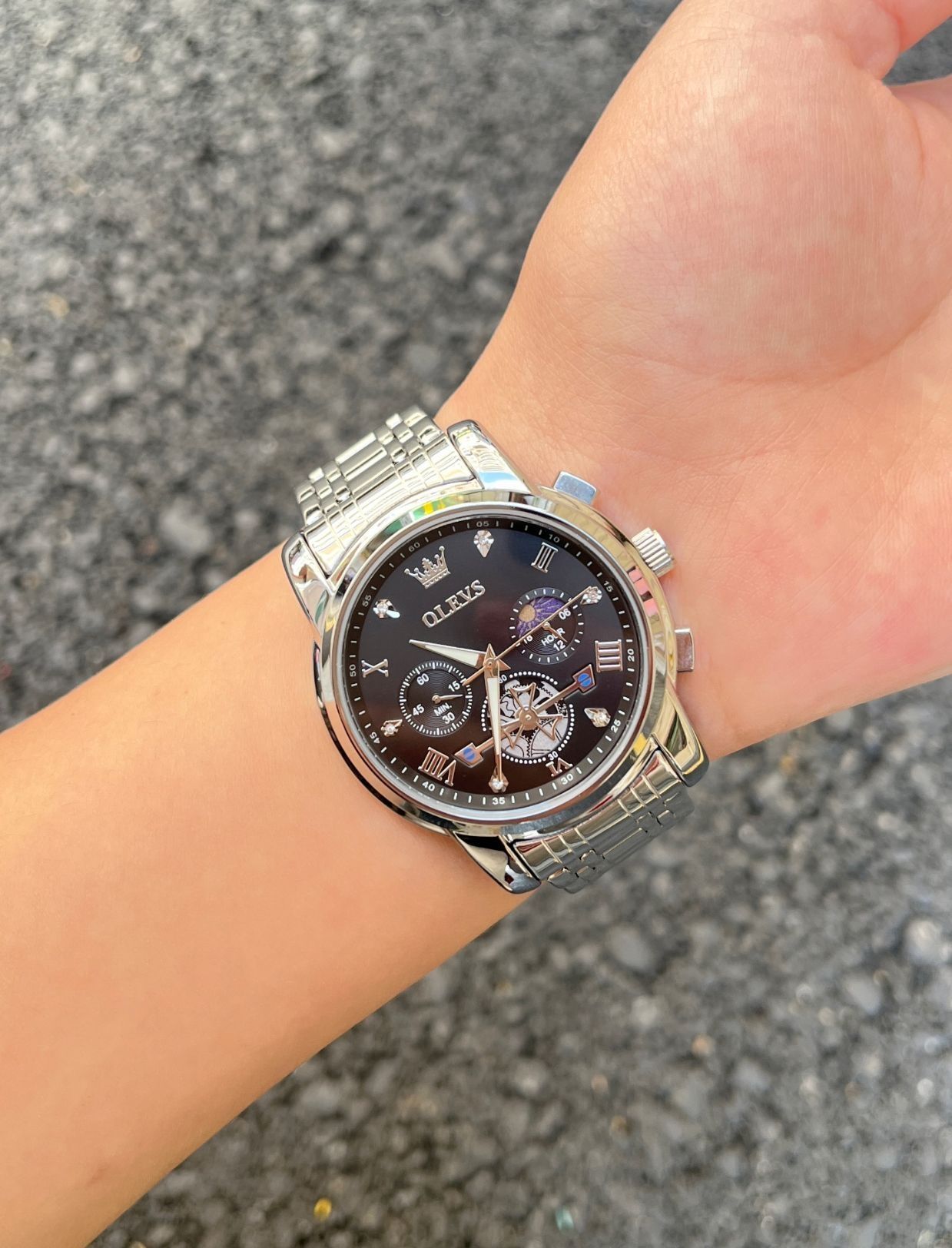 本篇笔记关联了OLEVS/欧利时 精钢带时尚经典大表盘镶钻陀飞轮夜光日月星辰防水石英男士手表 钢带本黑等商品,为用户提供真实的使用体验和购买参考。