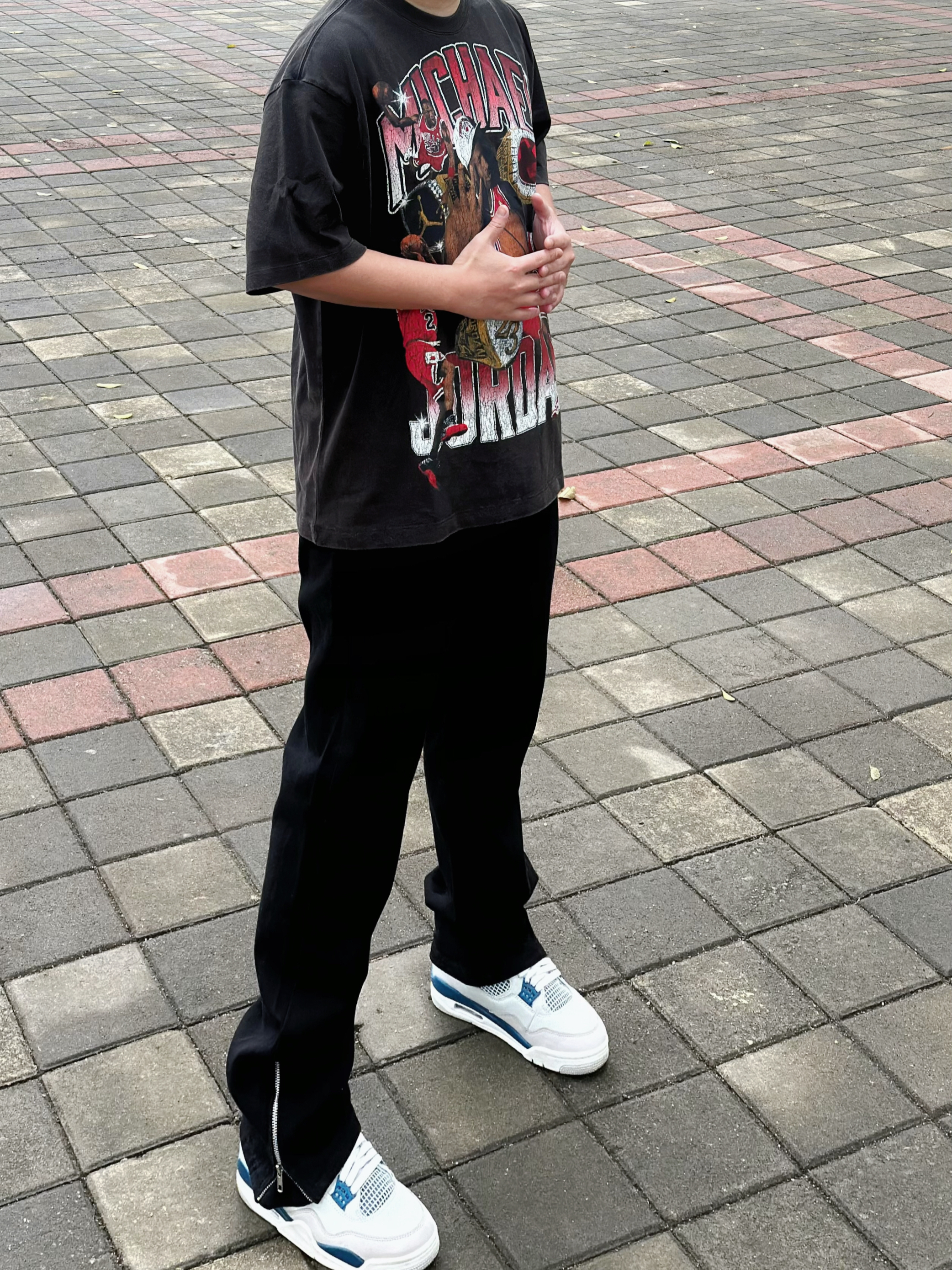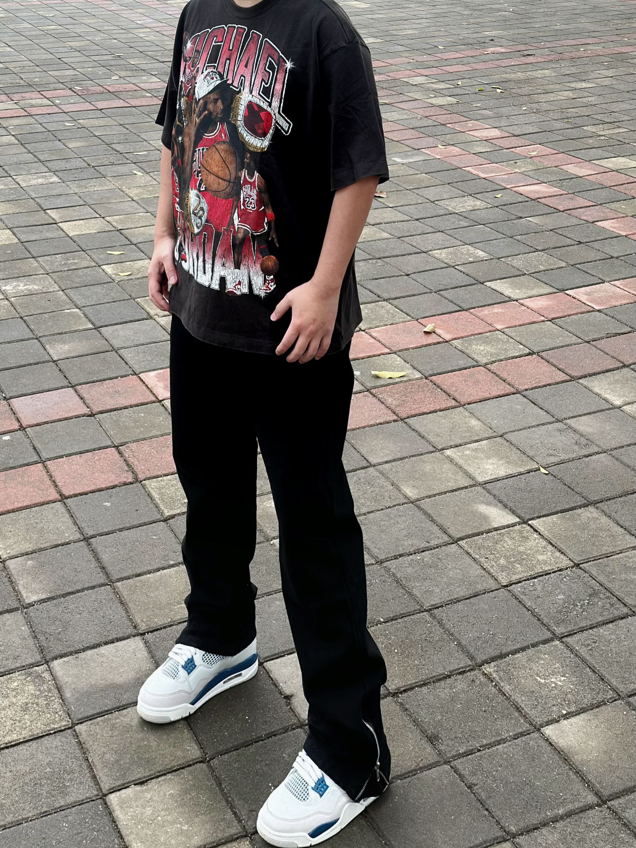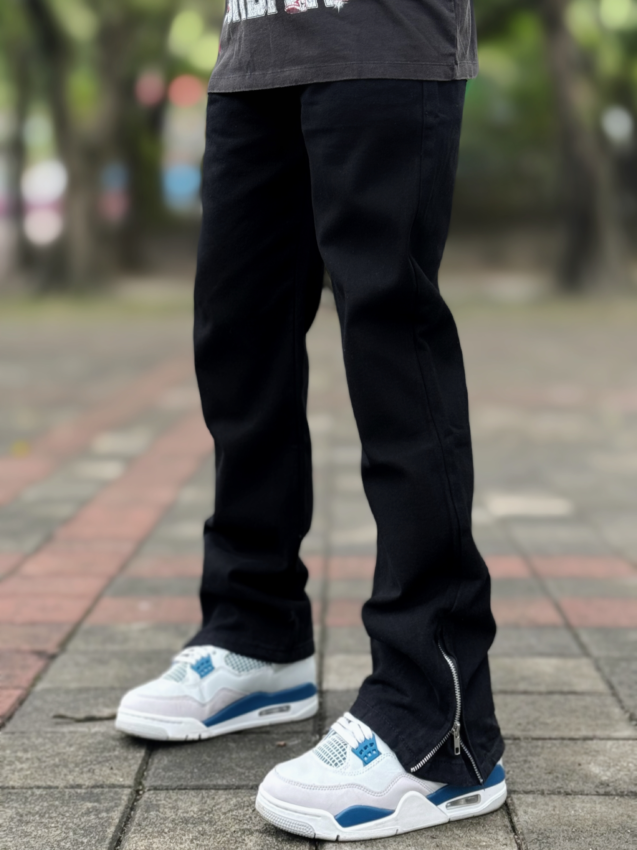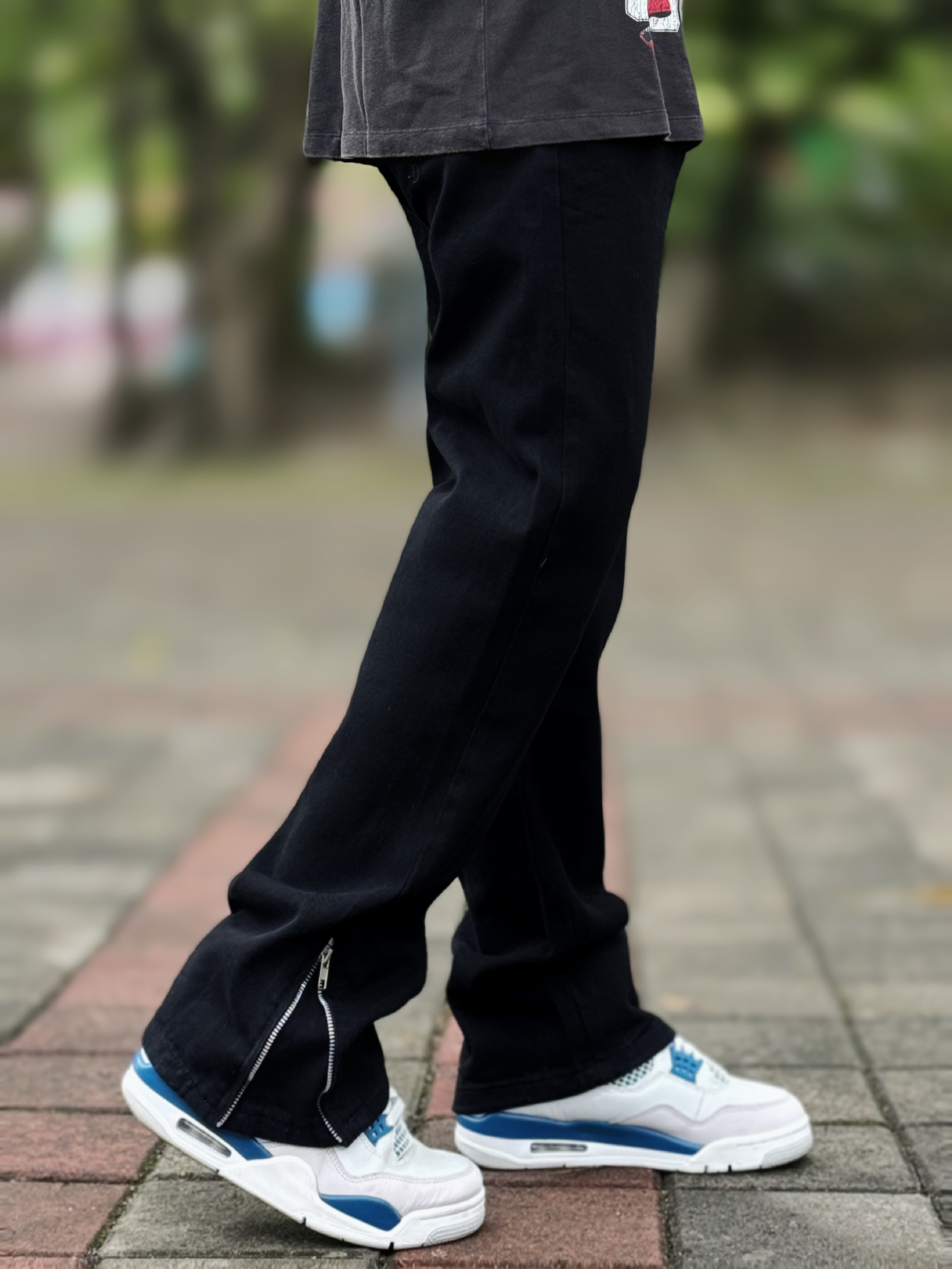 这条高街微喇的牛仔裤真的好显瘦 直筒修身版型 和我一样腿粗的bro也可以驾驭 两侧裤腿处的拉链设计可穿出不同风格 搭配一件jordan 印花T恤和一双球鞋 这样穿妥妥的美式户外街头小汁!! 身高丨体重丨尺码 : 178丨90kg丨3XL