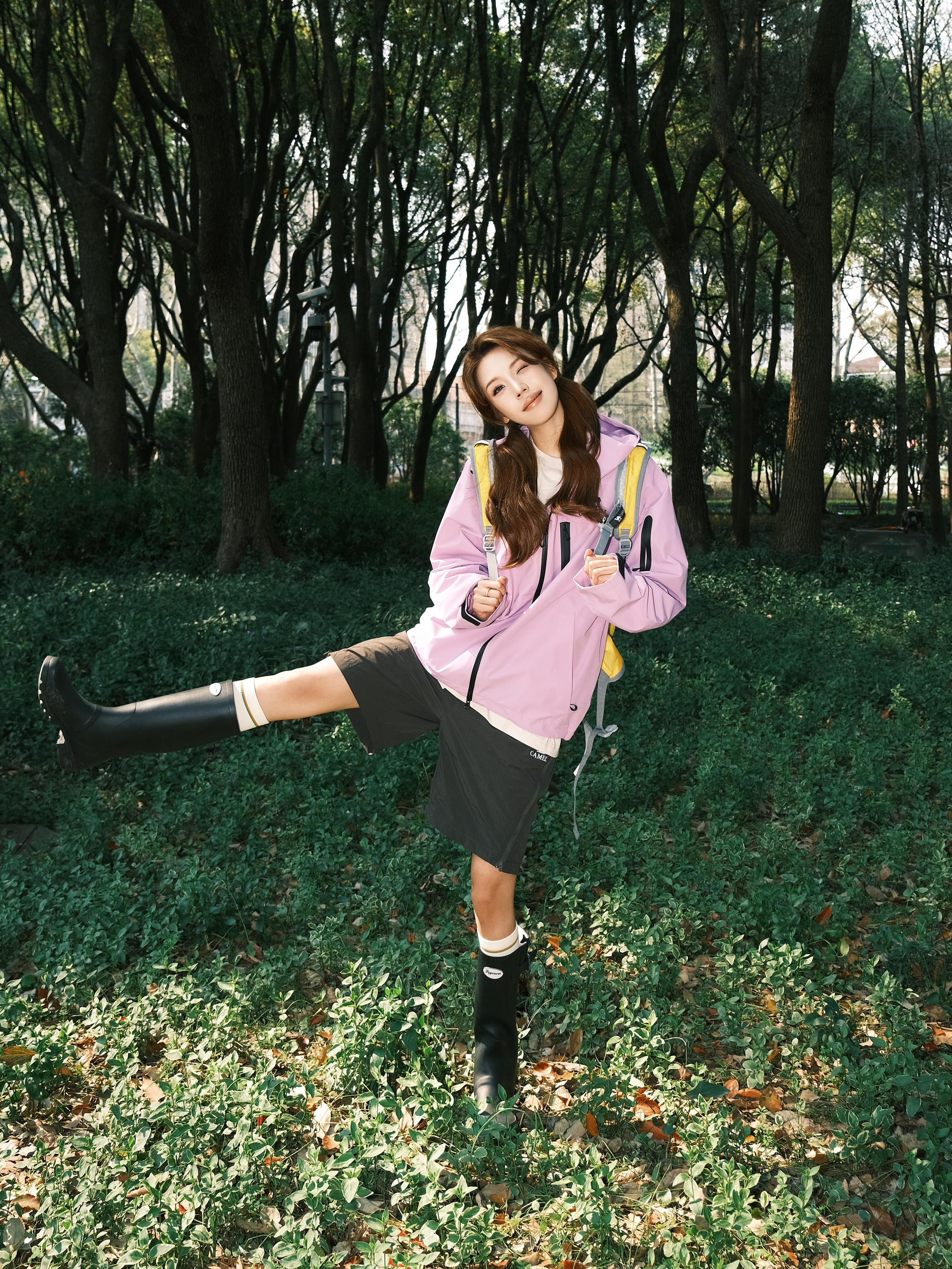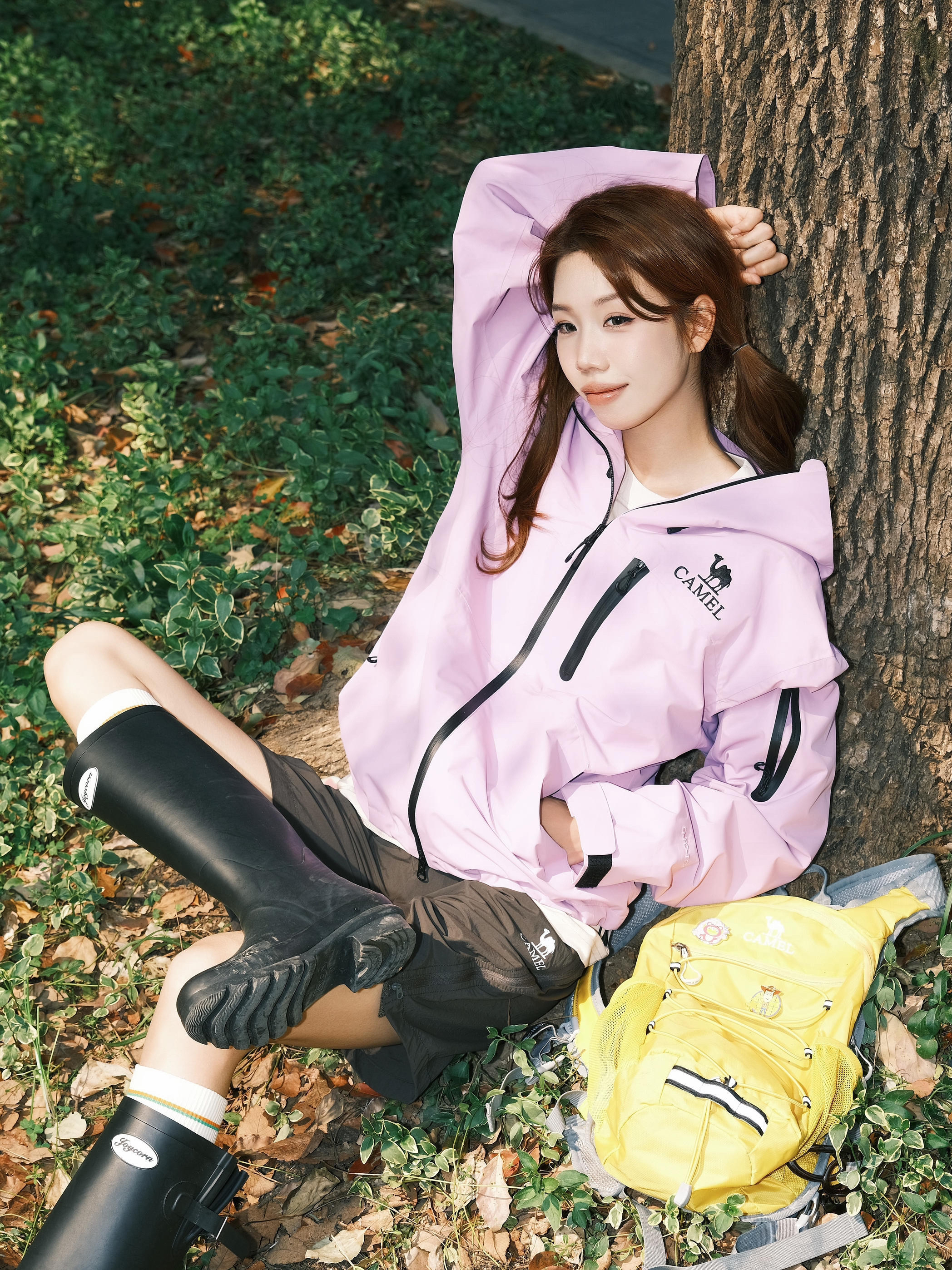 放假撒欢模式开启~ Dididi一键解锁户外多巴胺 春天就是要把色彩穿在身上 骆驼的紫色冲锋衣 防风又轻便 内搭清爽短袖 简约舒适~ 搭配条灰色透气的速干短裤 再踩一双雨靴去户外开心玩耍咯 去感受春风拂面 去聆听溪水潺潺 在这个春天 尽情释放活力吧!