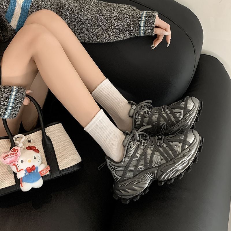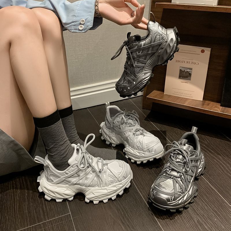 超酷~6cm齿轮增高厚底酷炫老爹鞋2025春高跟拼色运动休闲单鞋女