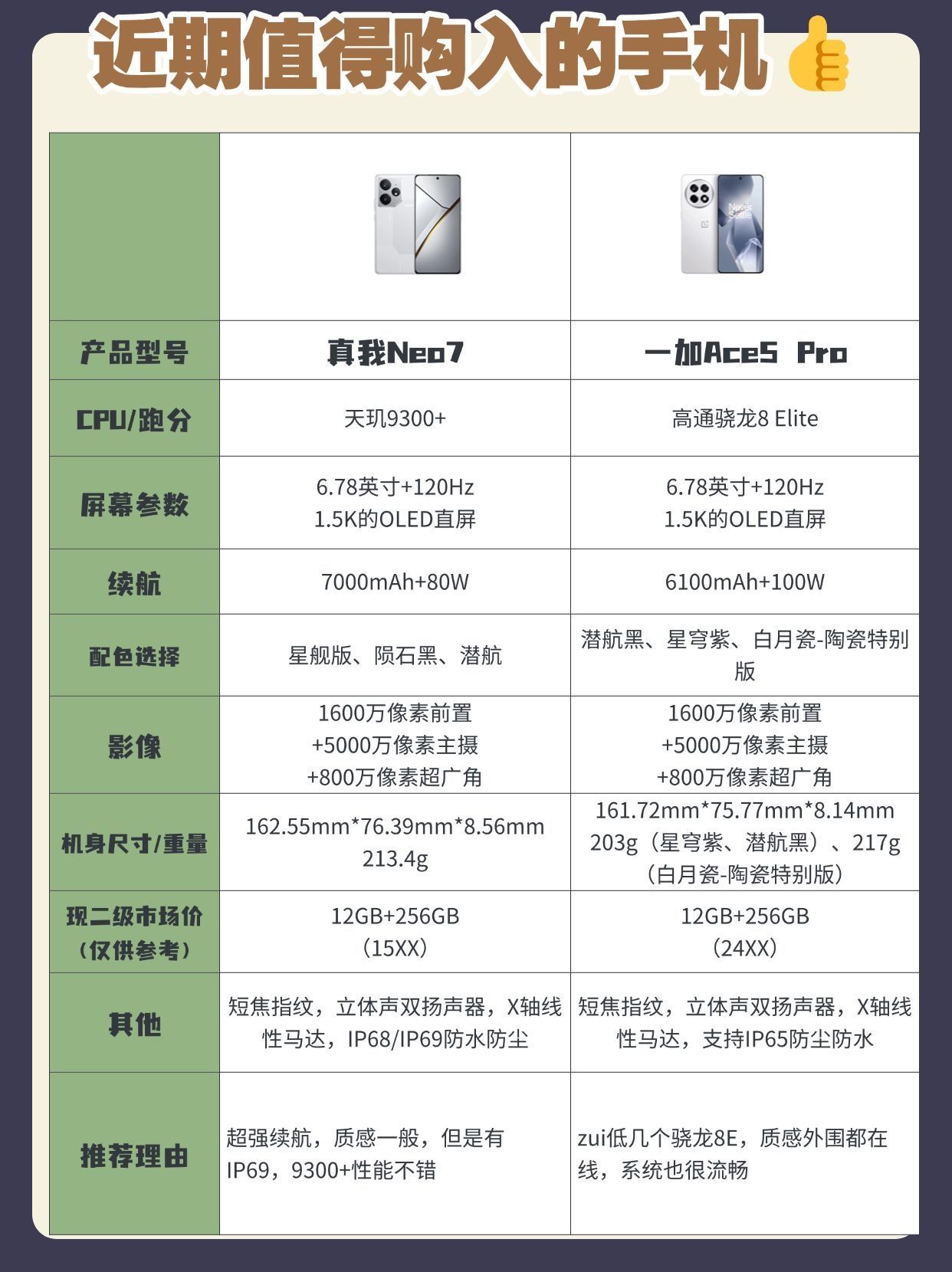 如果你近期想购置一台新手机,却不知道怎么选择,快来看看这份合集!给大家整理了一些近期各价位值得购买机器:红米 Turbo4、真我Neo7、IQOO Neo10、一加Ace5、IQOO Neo10 Pro、一加Ace5 Pro、红米K80、IQOO 13。最近想换机小伙伴快用起来,有想法但还在犹豫的小伙伴,可以先收藏哦!