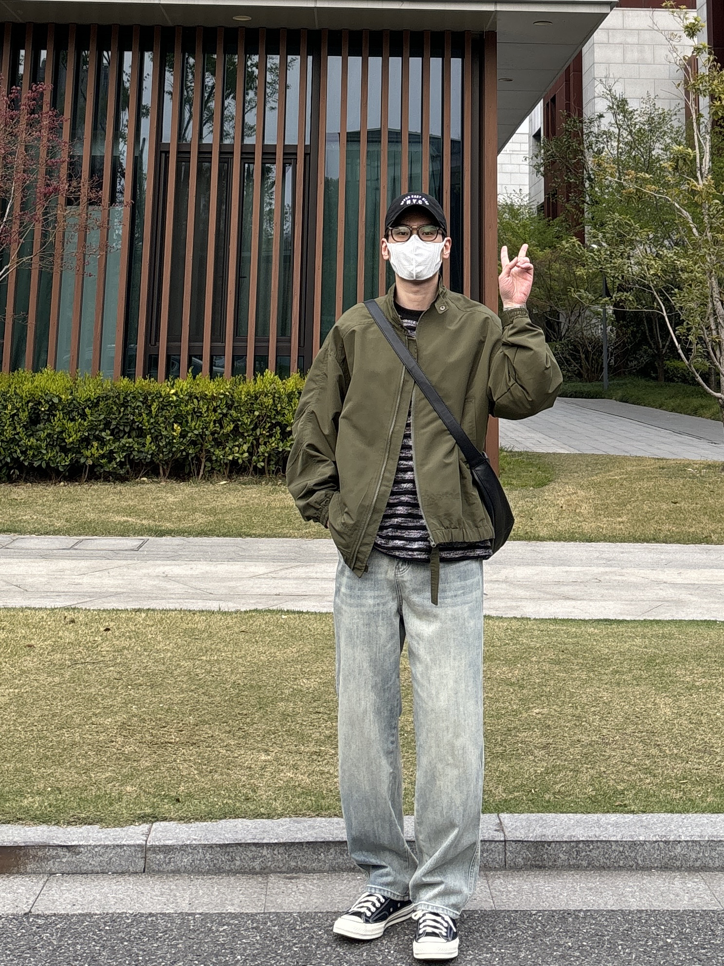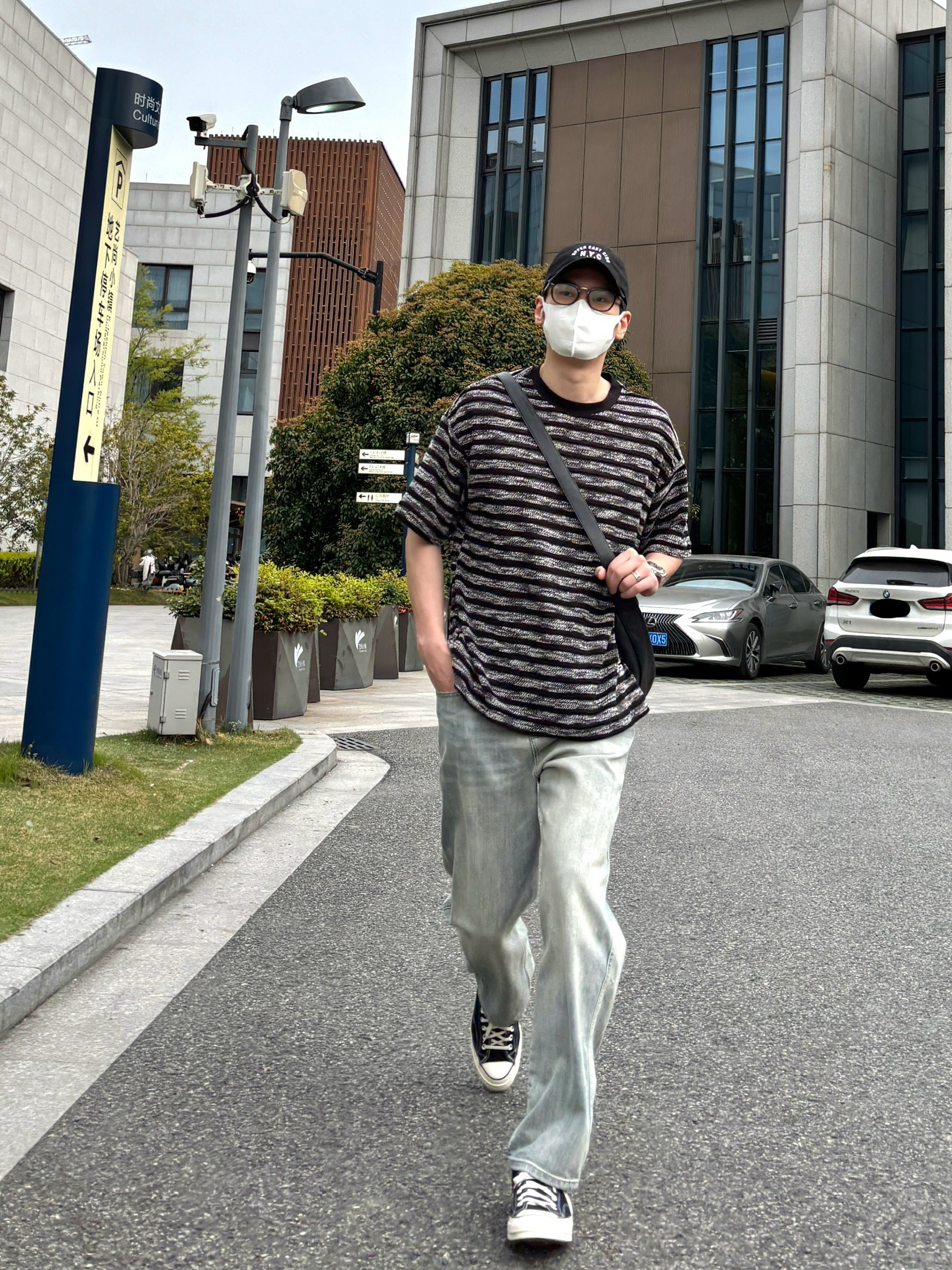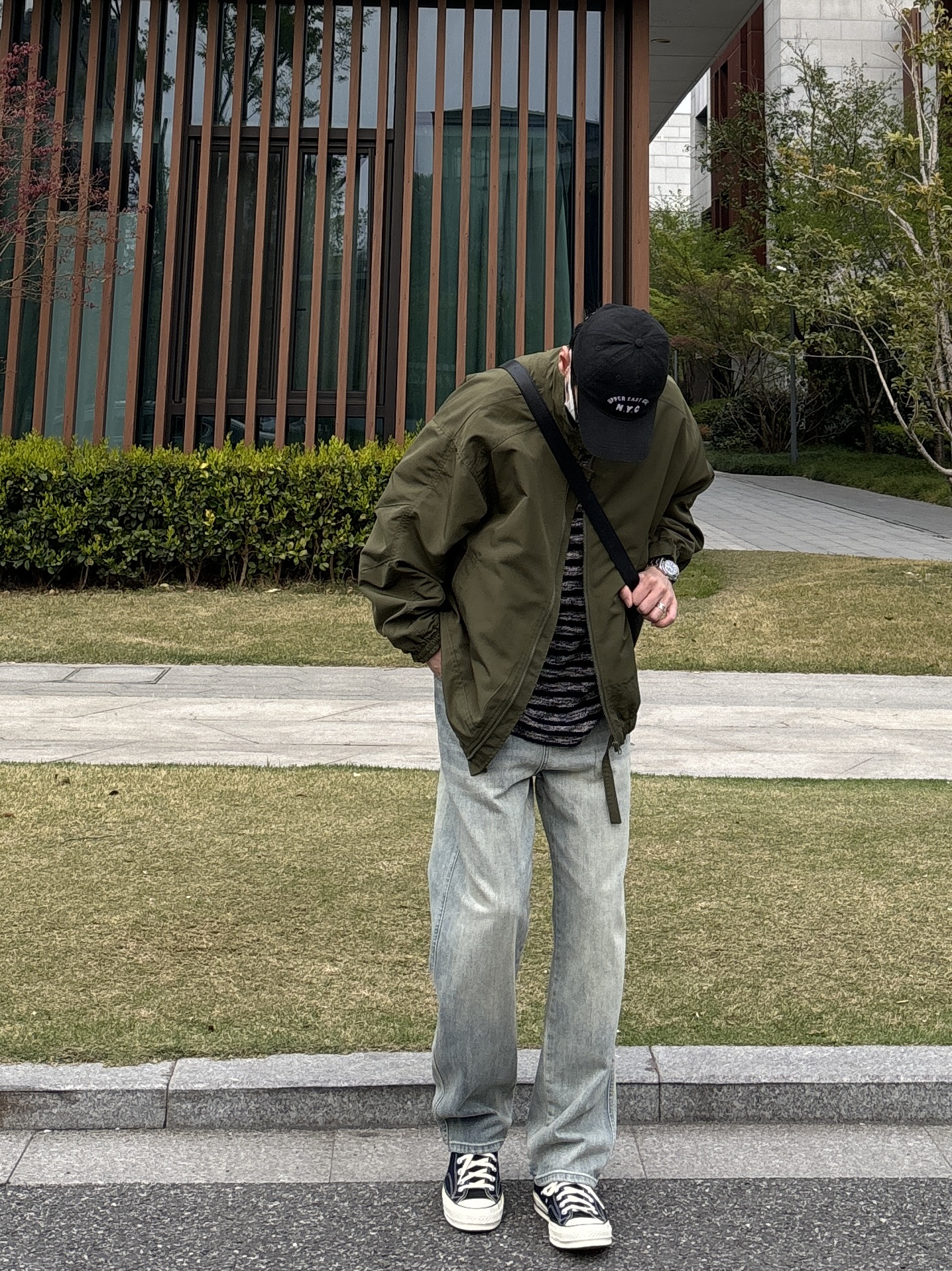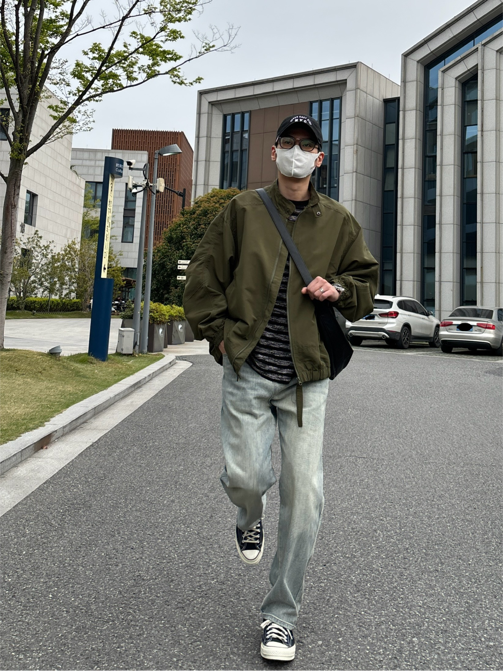 今天这套先用少年感十足的黑色编织条纹短袖做内搭 ⬇️ 裤子选择清爽干净的浅蓝色水洗直筒牛仔裤 ⬇️ 鞋子上脚简约百搭的匡威1970s黑白 ⬇️ 接着套上军绿色宽松廓形抽绳下摆立领工装夹克 ⬇️ 最后背一个大容量皮质斜挎包 - 今日搭配 衣服裤子:NICE LILI 鞋子:匡威1970s黑白