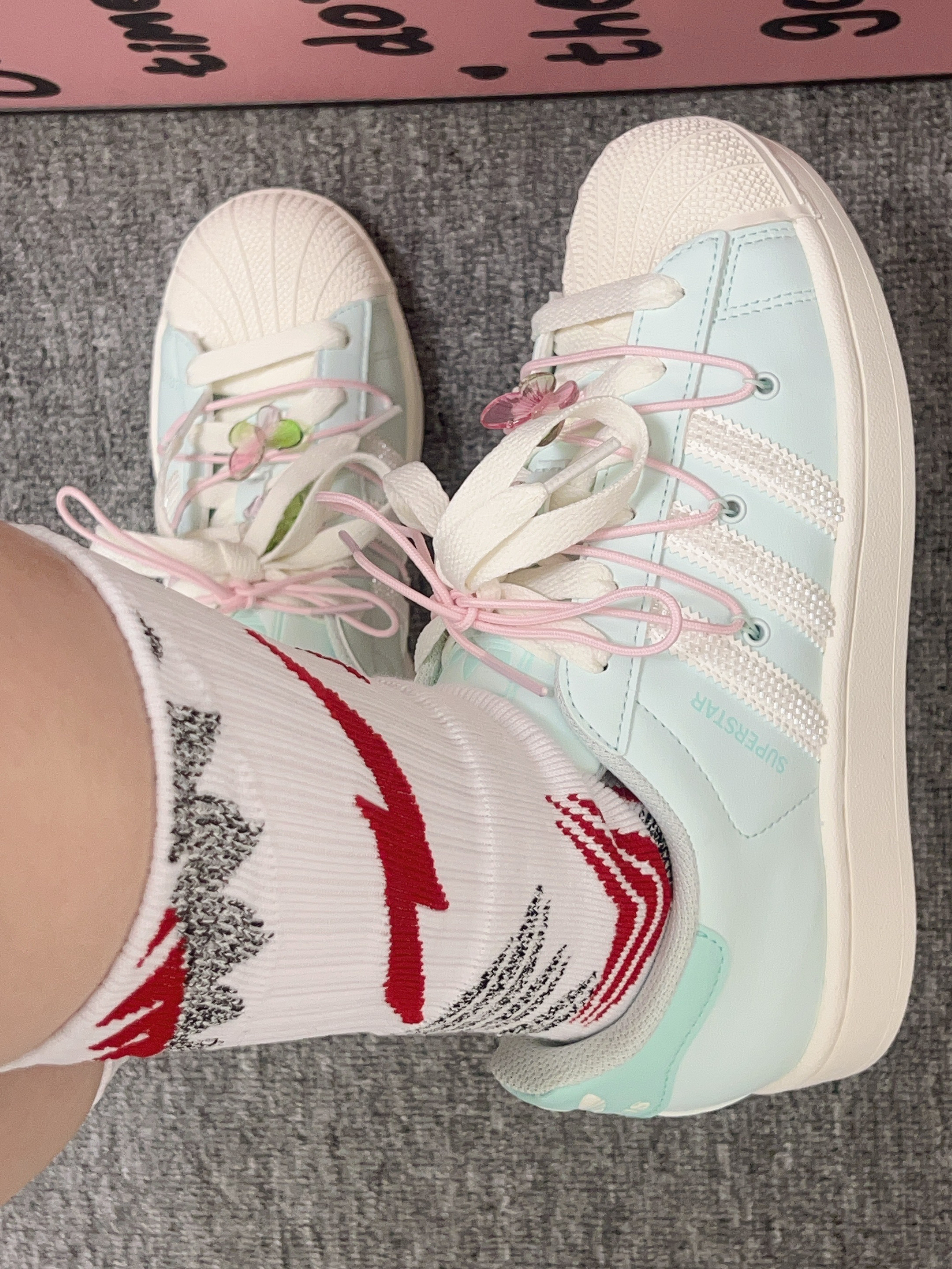 【🧚♀️🫧马卡龙阿迪达斯☘️搭上维动袜子好春天呀🍃🌱】,由用户 xu橘子 分享,来自中国香港。这是一篇来自识货社区的真实用户分享笔记。