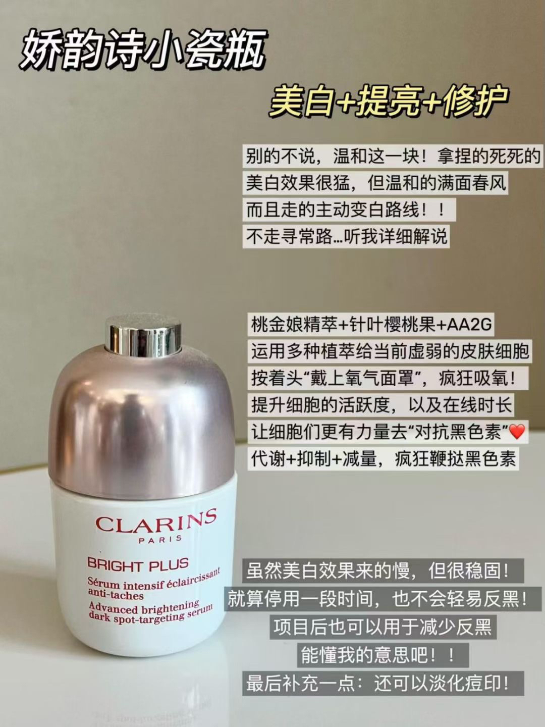 本篇笔记关联了CLARINS/娇韵诗 光芒小瓷瓶面部精华液 淡化痘印焕白淡斑匀净 焕亮淡斑、SKINCEUTICALS/修丽可 透白发光瓶精华 焕白褪黄透亮改善暗沉肌肤 30ml、Kiehl's/科颜氏 安白瓶新集焕白淡斑精华 抗氧淡化痘印 均衡亮肤美白等商品,为用户提供真实的使用体验和购买参考。