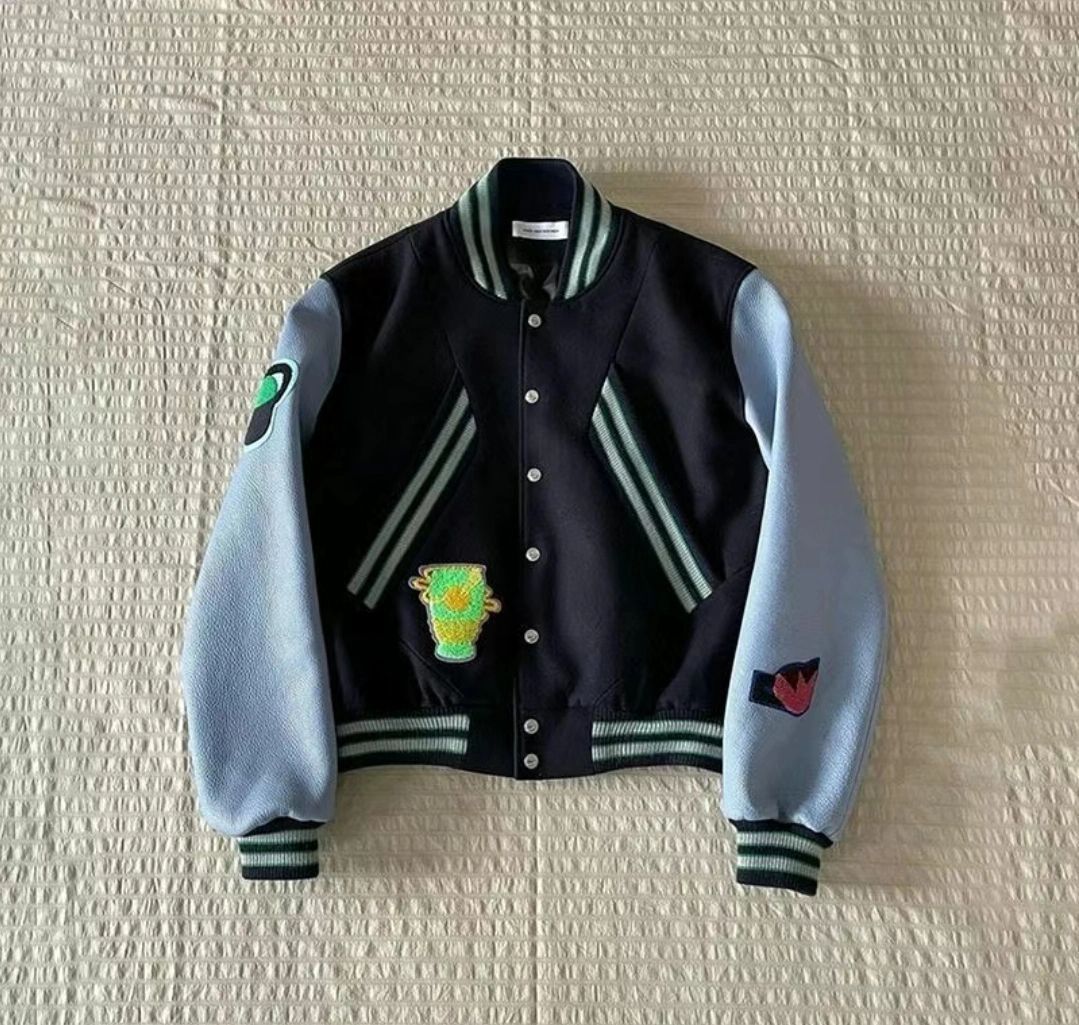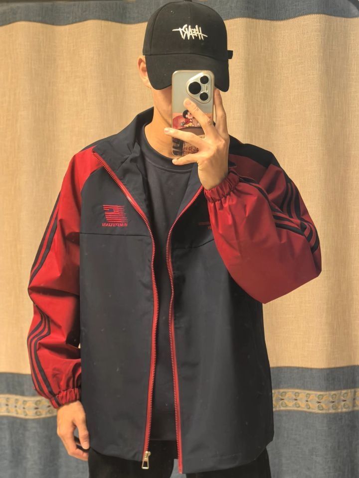 这款棒球夹克,撞色设计吸睛,袖间与衣身的色彩搭配和谐。个性徽章点缀,潮流感拉满,无论是日常出街还是运动场合,都能轻松驾驭。