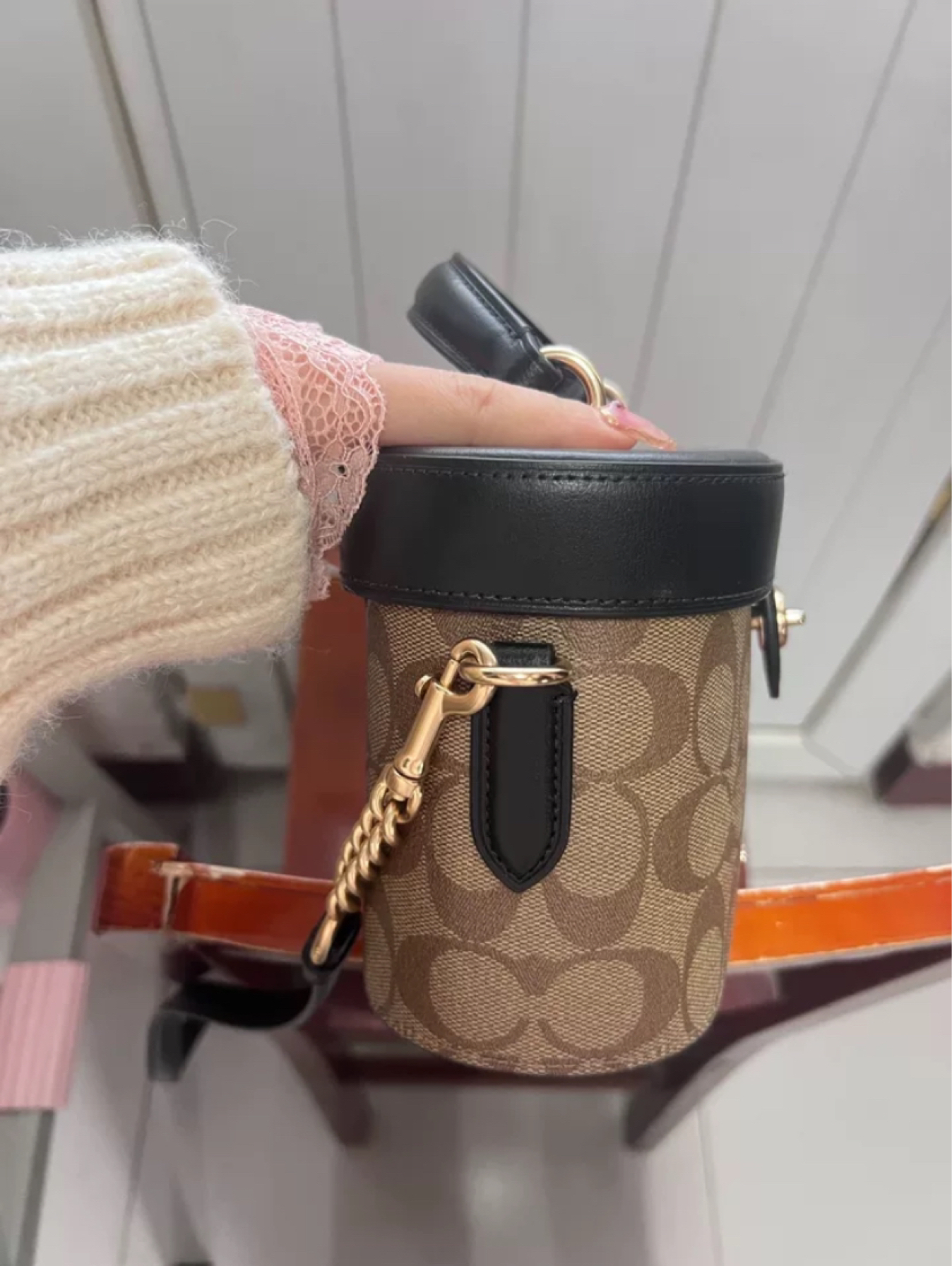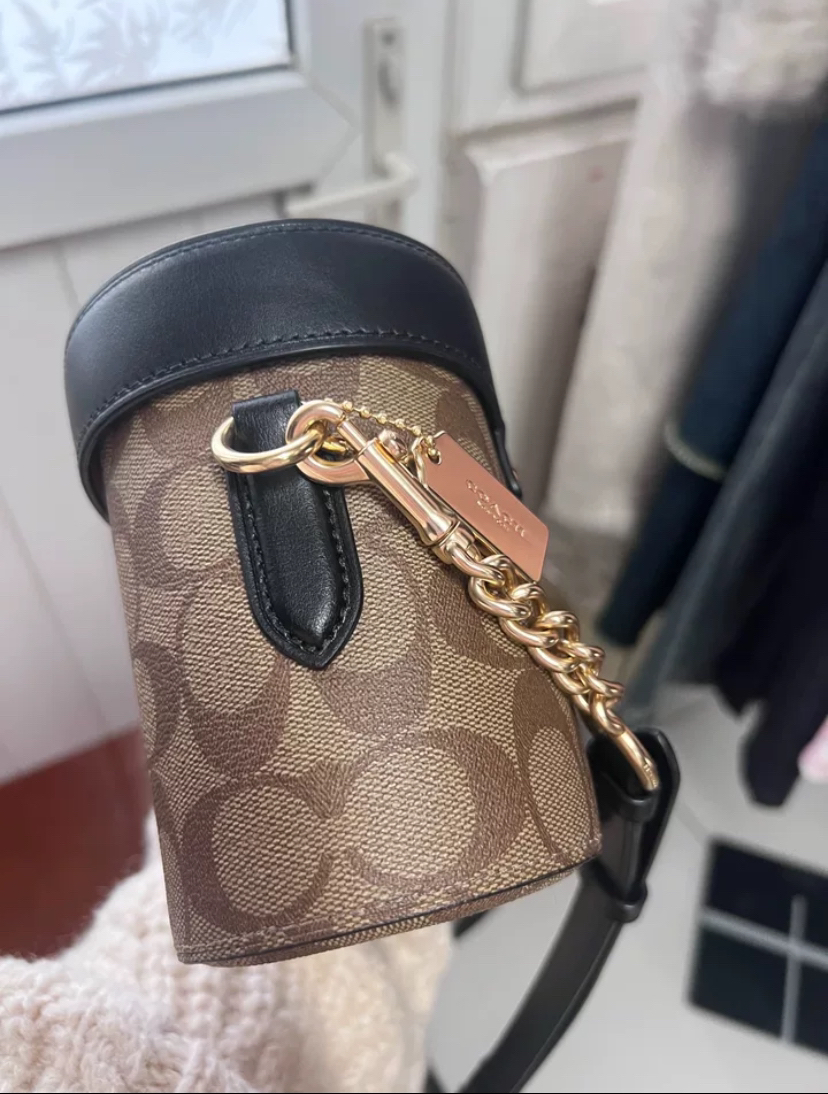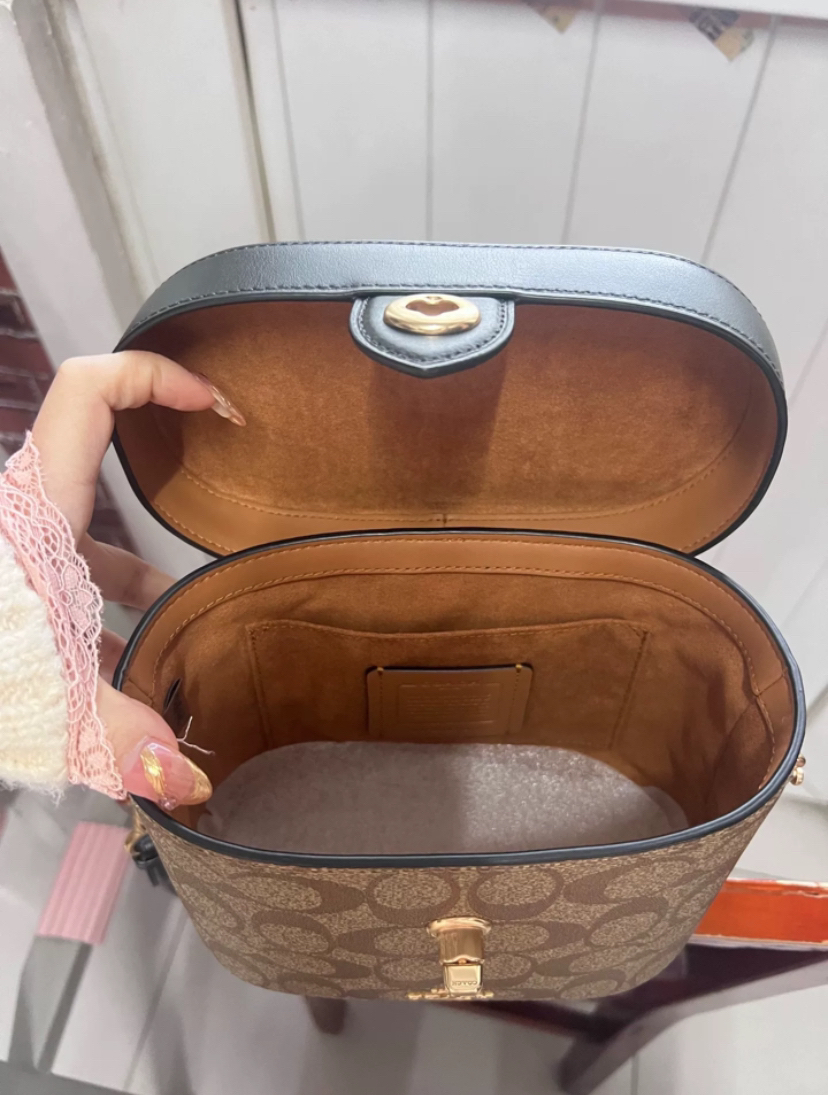 本篇笔记关联了Coach Kay 20 小号 经典老花满印徽标Logo帆布配牛皮革手提桶单肩盒子包斜挎包 深棕配黑等商品,为用户提供真实的使用体验和购买参考。