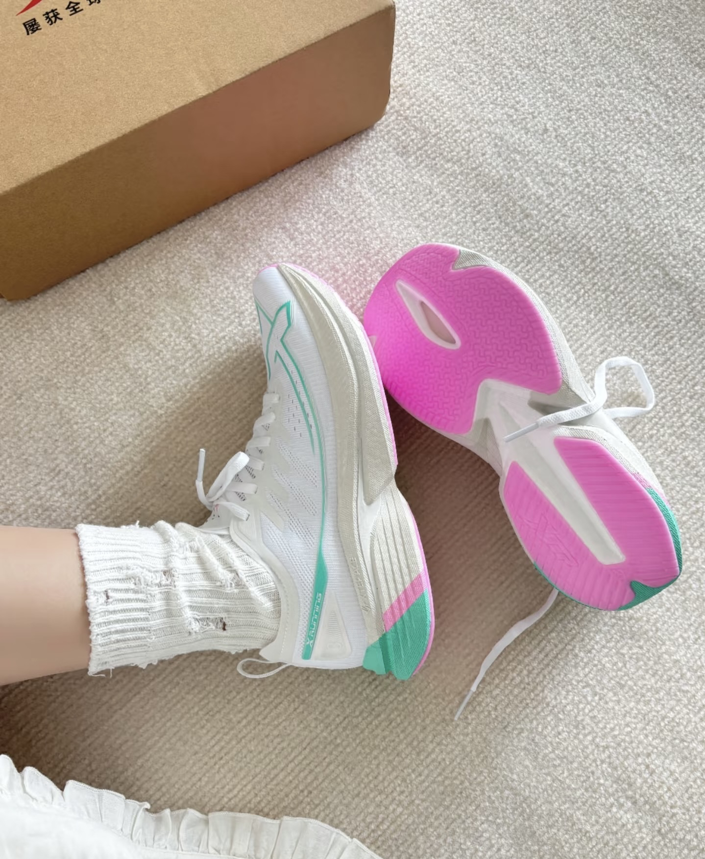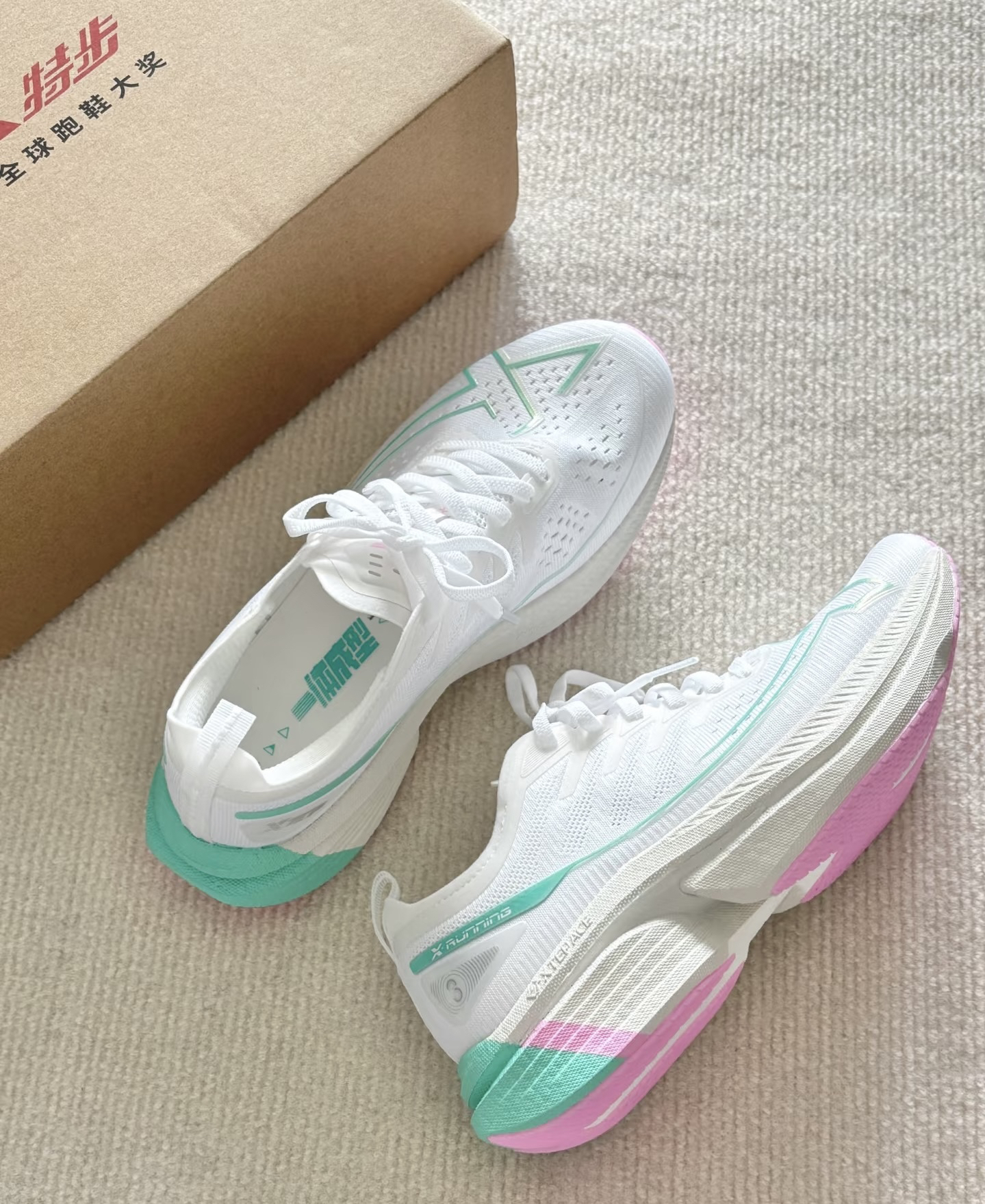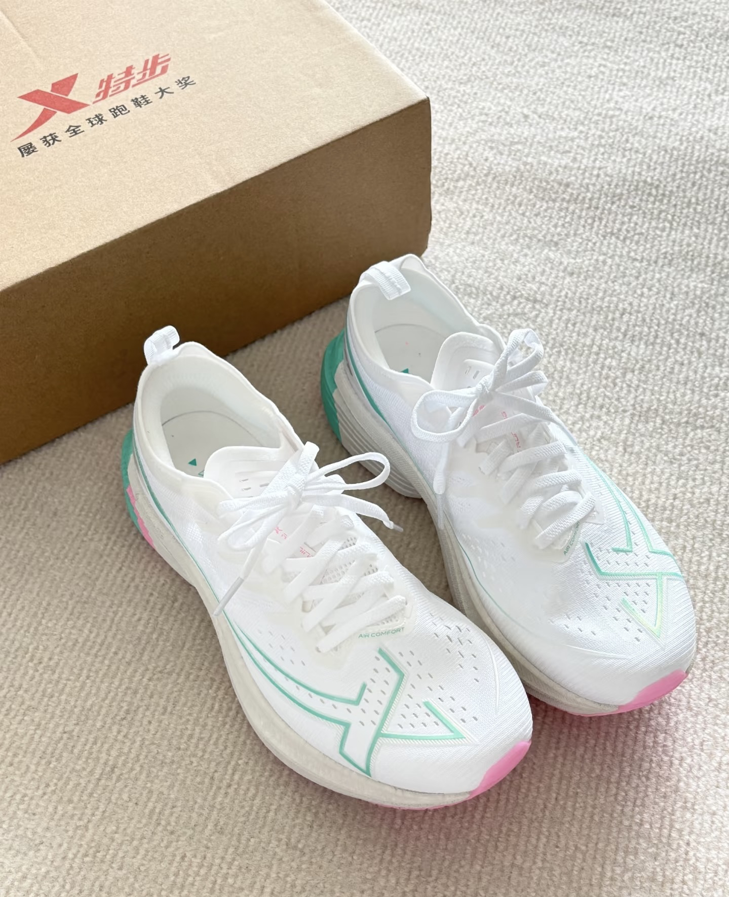 宝子们,又挖到一双神仙跑鞋啦!特步这款简直是颜值与实力并存~ 👟 外观:纯净的白色鞋面,搭配清新的薄荷绿和温柔的粉色线条,简约又不失时尚感,无论是运动风穿搭还是休闲装,都能轻松适配,出街秒变焦点。 💪 性能:作为荣获全球跑鞋大奖的选手,实力不容小觑。鞋面透气网布材质,保持脚部干爽;鞋底科技加持,缓震效果超棒,跑步时能明显感受到回弹,保护双脚还省力。 无论是日常通勤还是慢跑锻炼,这双鞋都能给你...