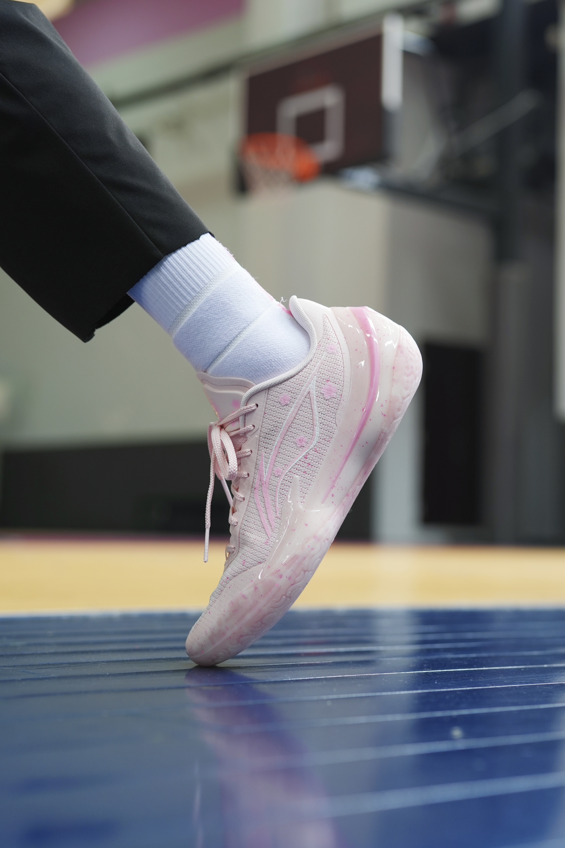 利刃5V2的桃花酿这个配色有多经典相信不用强调了吧,它的上脚颜值是真的稳!这个夏天球场上的猛男们可以好好留意一下这个配色[强_blue]而且还是鞋盒收藏价值也非常高。