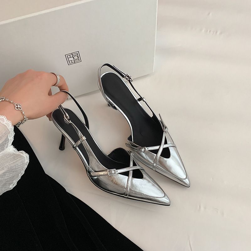 2025春夏新款女鞋时尚尖头包头凉鞋优雅气质百搭细跟浅口鞋高跟鞋