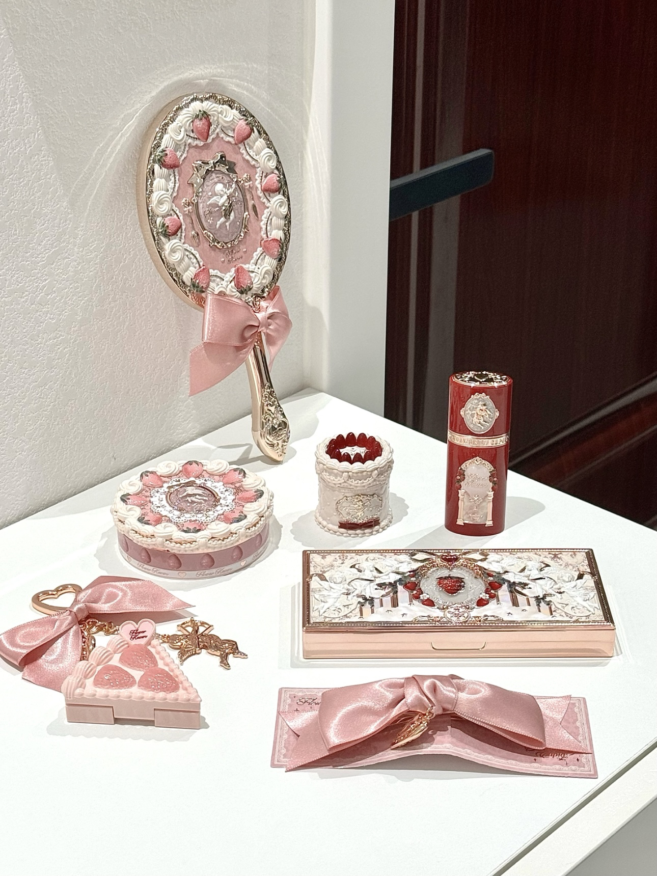 花知晓你小汁...也太会拿捏女孩子啦 新出的这款礼盒直接美晕我 无论是礼盒包装 还是单品都好精致哇 我宣布草莓脑袋有福啦 打开里面就是唇霜+腮红液+面综盘+粉饼 还有蝴蝶结发夹 和美到晕厥的手持镜 信我!实物尊嘟好美好美 这次还不得给你宠成小公主呀 拿它送礼我想没有哪个女生会拒绝叭