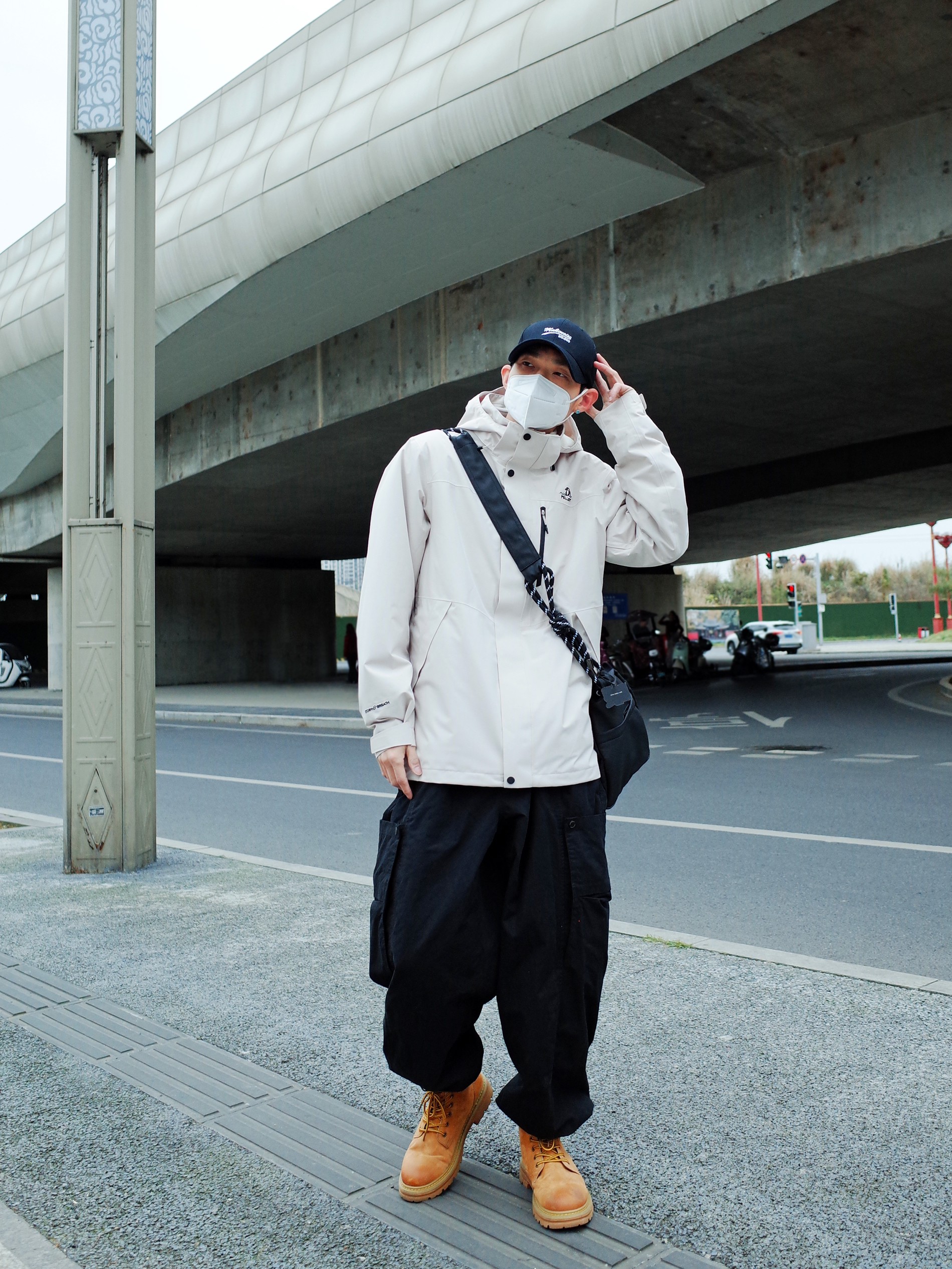 作为一个合格的牛马打工人💼 也会担心早晚温差大🌡️ 浅米色的冲锋衣穿起来! 自带可拆卸内胆, 防风防水还能一键切换厚薄模式。 春分时节变天也不怂✨ 搭配一条黑色工装裤➕马丁鞋, 不费力拿捏轻户外感📸