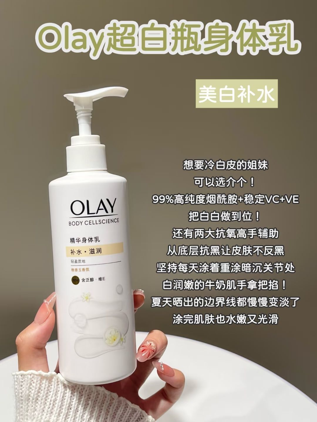 本篇笔记关联了Olay/玉兰油 烟酰胺身体乳 保湿滋润美白 晚香玉等商品,为用户提供真实的使用体验和购买参考。
