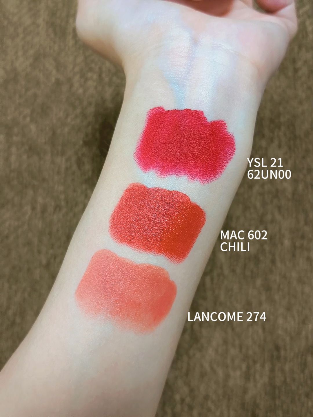 本篇笔记关联了YSL/圣罗兰 小金条细管哑光口红 显白丝绒 2.2g 21不羁复古红、Lancome/兰蔻 小蛮腰菁纯丝绒口红 雾面哑光 3.4g 274杏仁奶茶、【爱心限定】YSL/圣罗兰 黑管镜面唇釉 水光滋润玻璃唇 610冰乌龙等商品,为用户提供真实的使用体验和购买参考。