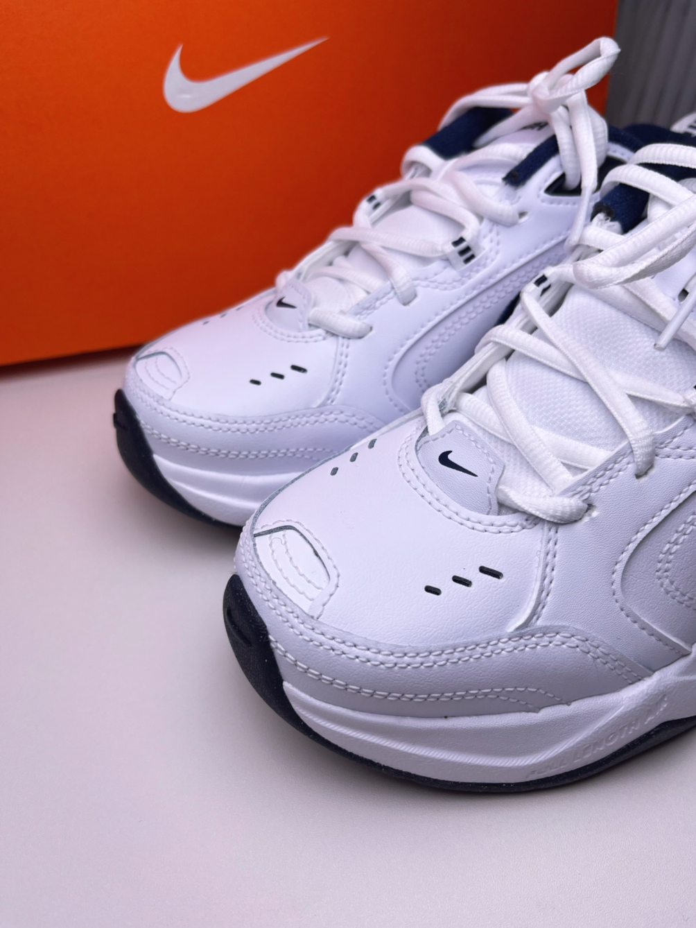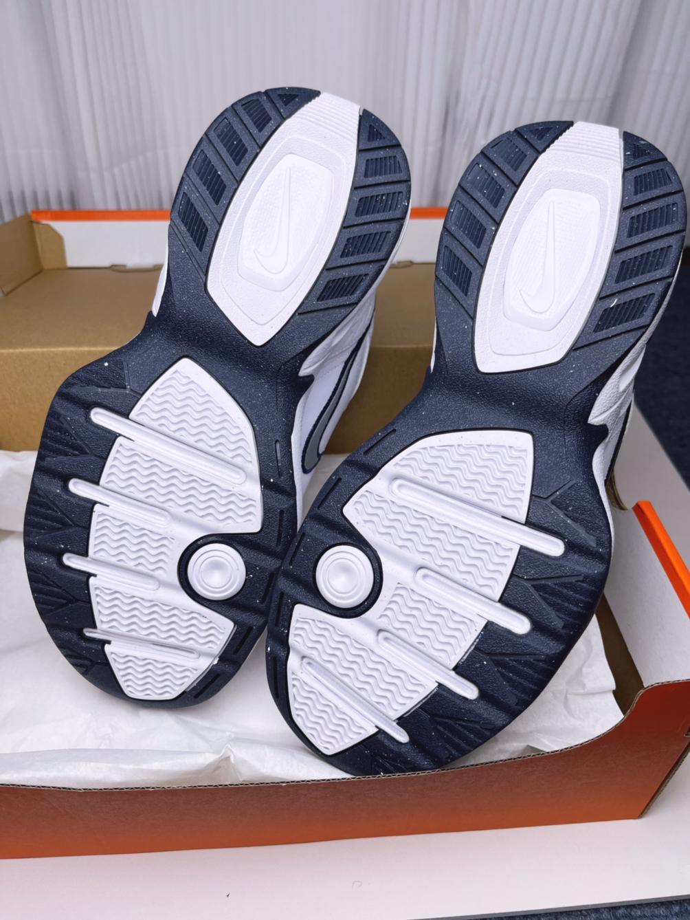 太爱这双老爹鞋~Air Monarch4一上脚就感受到美式老爹鞋的扎实感,像给脚穿了盔甲 鞋子是全皮鞋面+厚内衬,包裹感特别,鞋子中低有Air Sole气垫(踩屎感70分) 传统波浪纹耐磨性能没的说 我穿了一周左右的时间,有几点需要注意,首先鞋子内有气垫就会有轻微的吱吱响,然后传统波浪纹耐磨但易打滑,最后就是这双鞋的鞋楦偏窄(宽脚建议试穿/选大半码)。总的来说这双鞋很百搭,上脚颜值给满分~