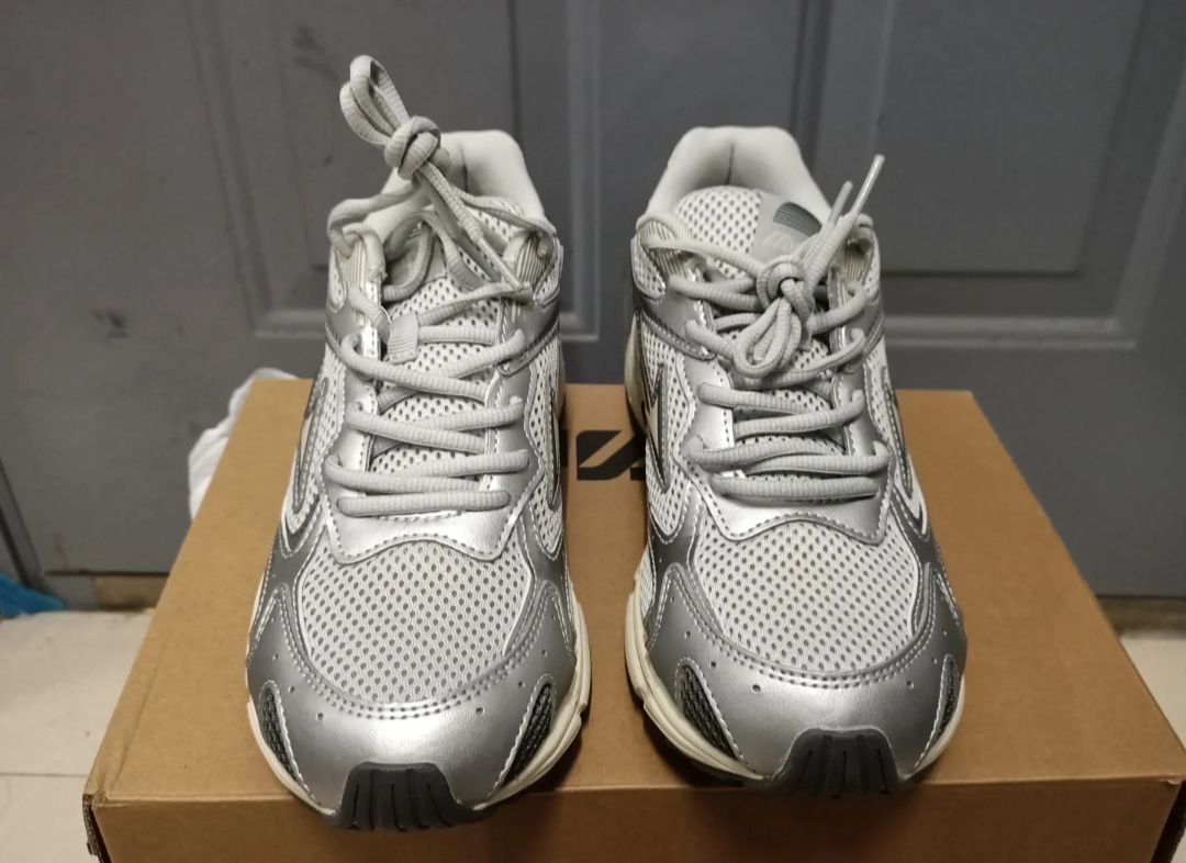 💥 **颜值党必冲**:千禧年复古设计灵感,冰川灰主调搭配银色、笋色细节,鞋面多层拼接工艺,侧身经典鸟标LOGO点缀,日常出街秒变穿搭焦点! 🏃♂️ **缓震黑科技**:EVA中底软弹如“脚下弹簧”,厚底设计减少关节压力,橡胶大底抓地防滑,实测10KM长跑不泄力!跑步、通勤、暴走全场景适配! 🌬️ **透气不闷脚**:网面材质+轻量设计,春夏秋三季穿都清爽,跑完步脚感依然干爽! 💰 *...