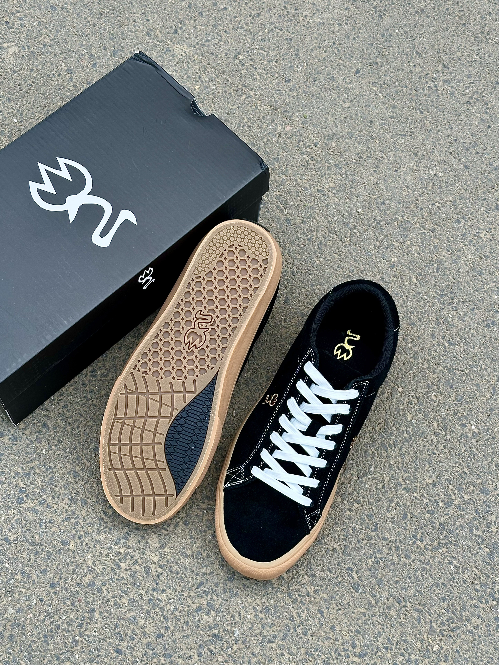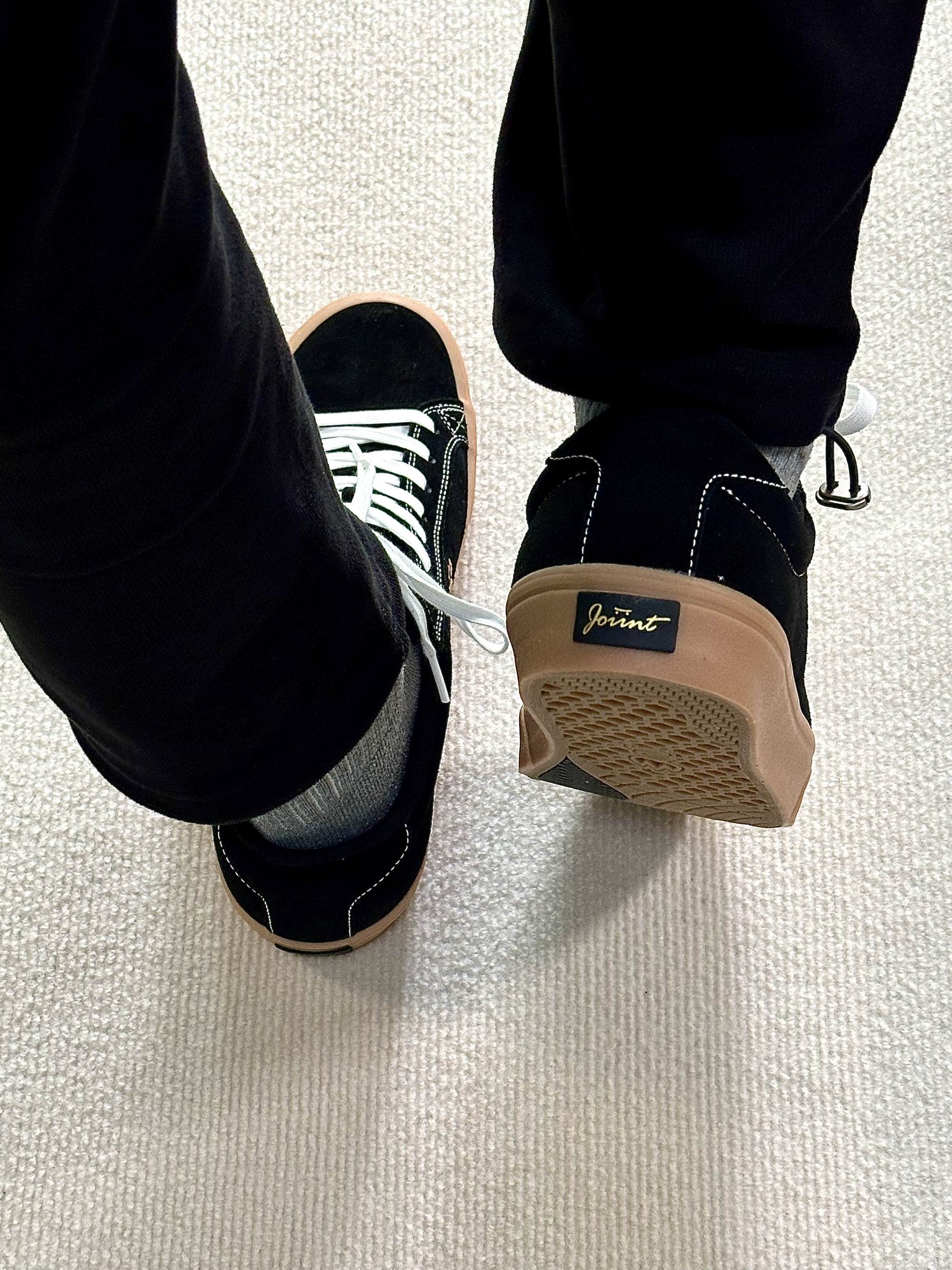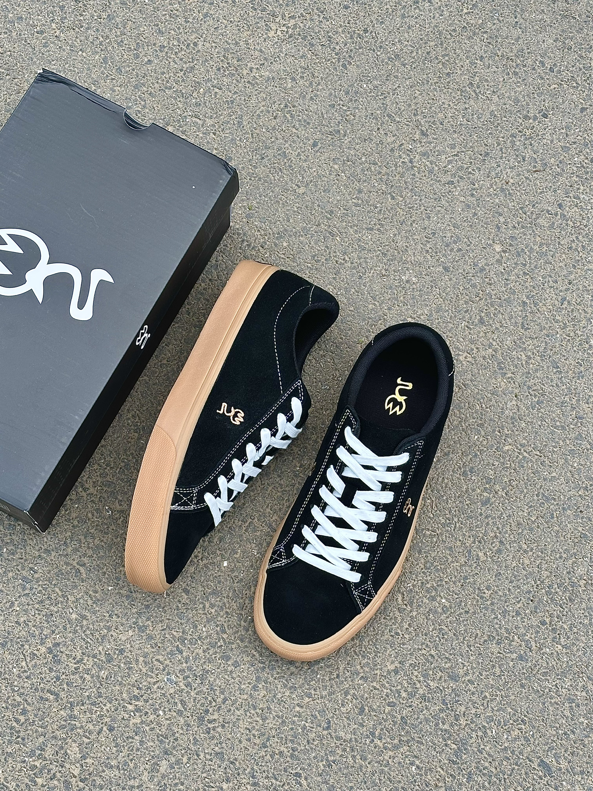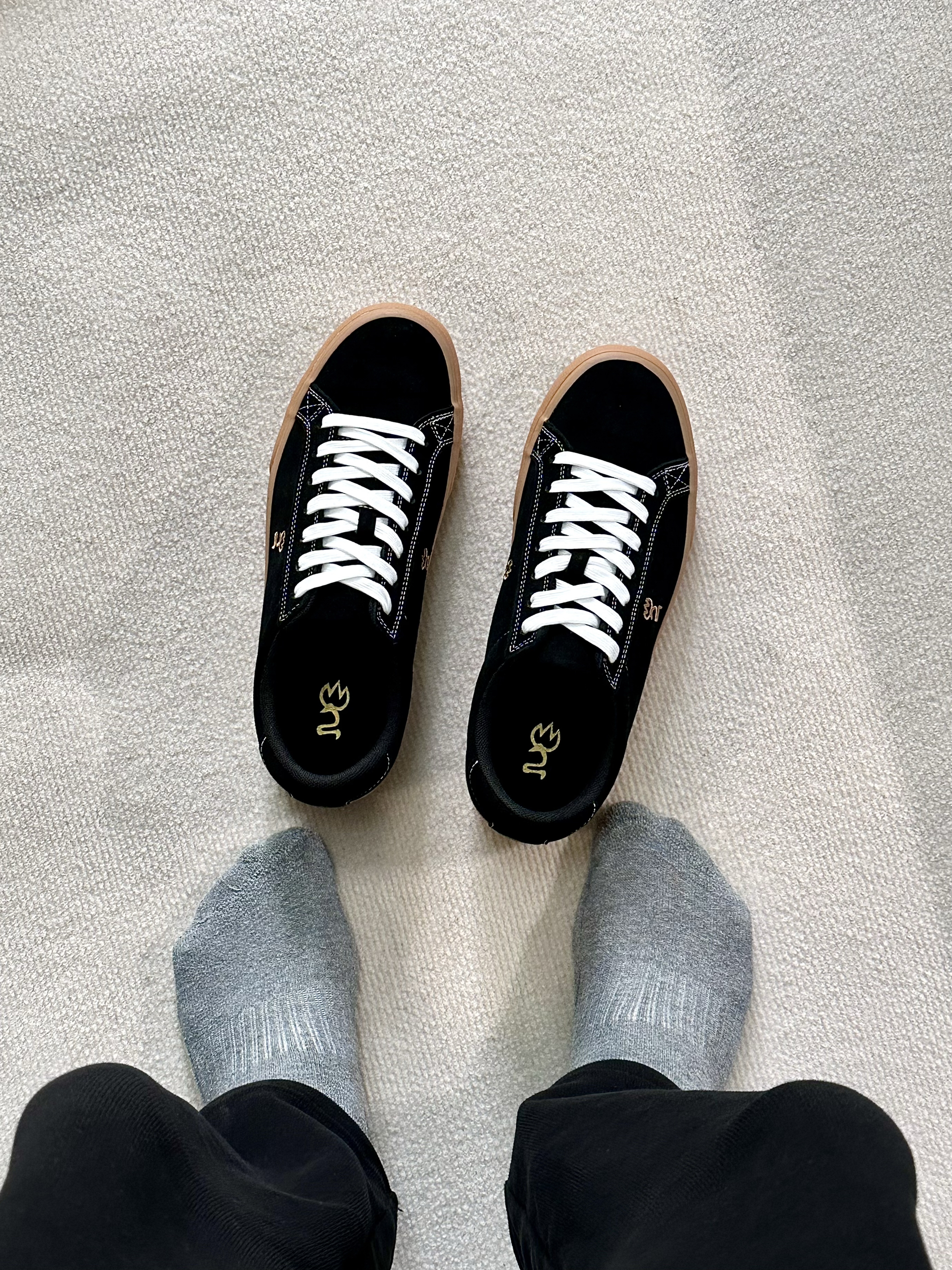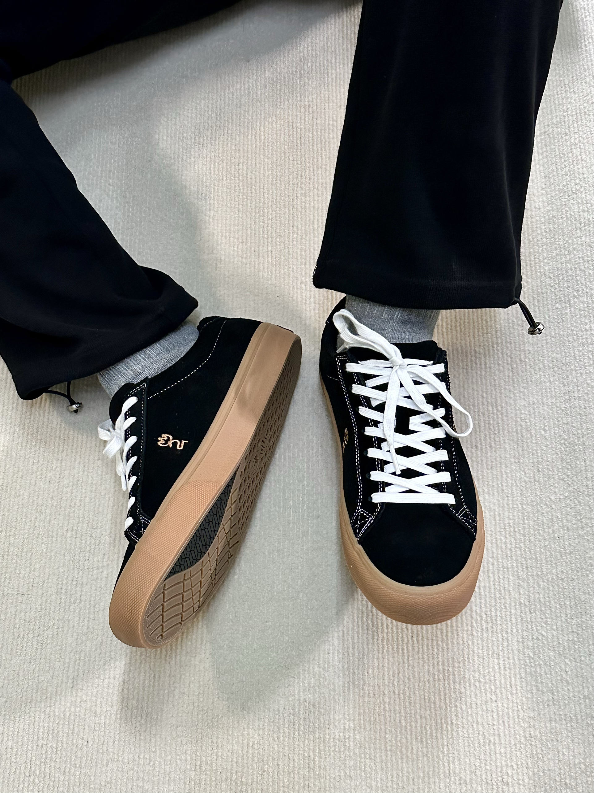 最近对于痞帅风格板鞋比较着迷 但是有不想入手太过于张扬的风格 索性选择了这双有点经典的黑色 纯黑色鞋面搭配棕色橡胶鞋底 上脚穿着起来是有点软软的感觉 现在入夏上脚刚刚好穿起来不会闷脚 适合作为休闲风遛弯或者通勤穿着 这款一共有黑白两款配色鞋带 我搭配的这个白色鞋带也是比较好看!