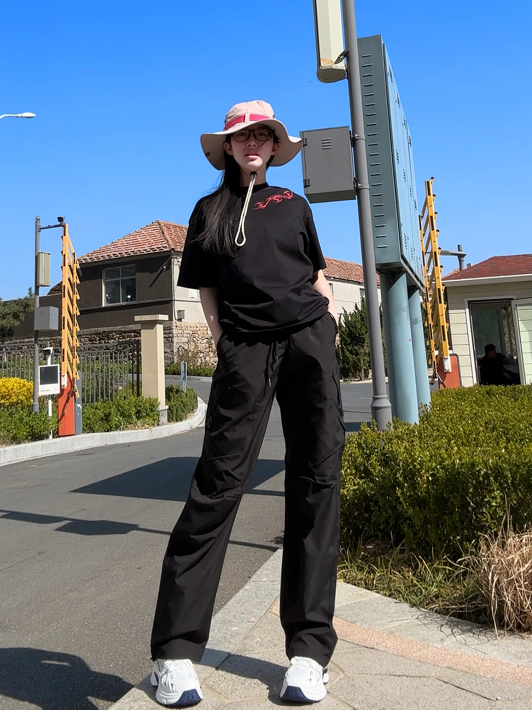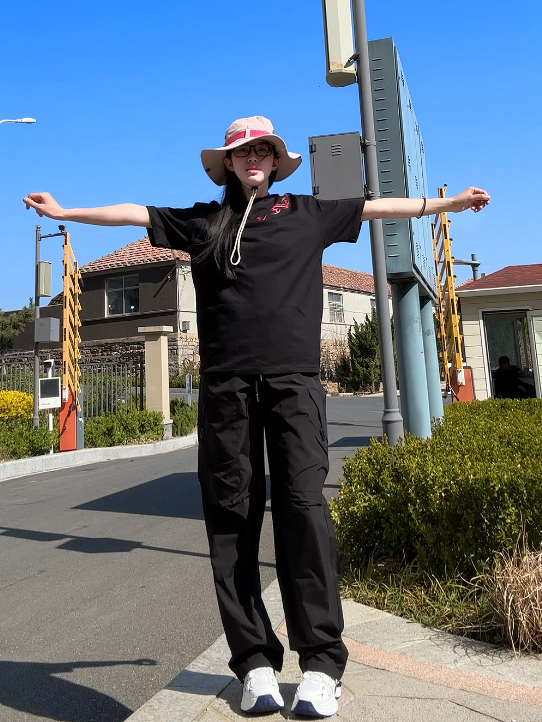 👖:Jeep 🧍♀️:163cm 44kg 📏:S码 Jeep这条运动裤真的太绝啦! 上身轻薄透气,巨凉快, 防风防水,应对各种天气情况 直筒版型,巨显腿细! 纯黑色休闲冲锋裤,不管是通勤还是日常都百搭! 男女同款,百搭情侣装单品!