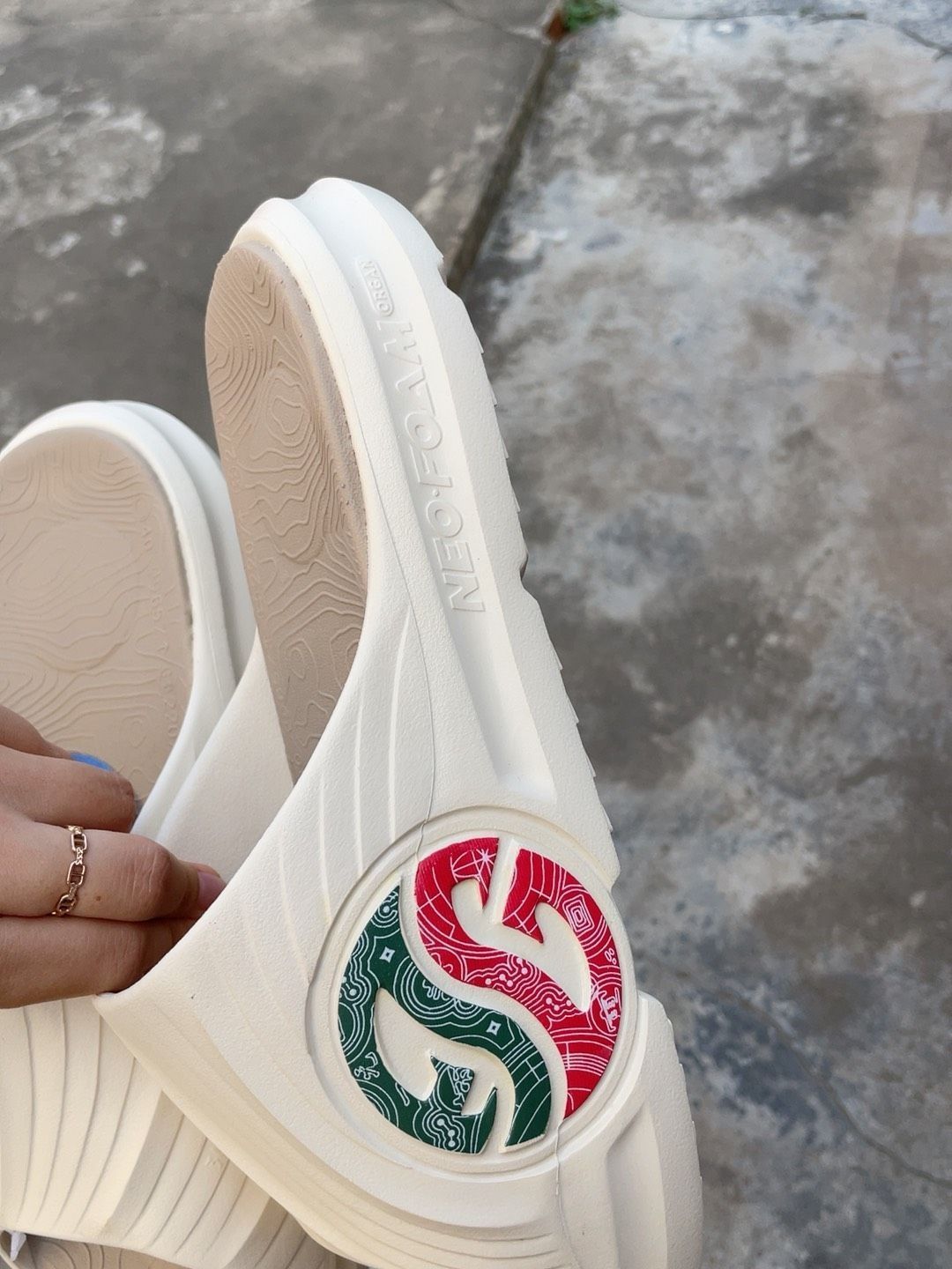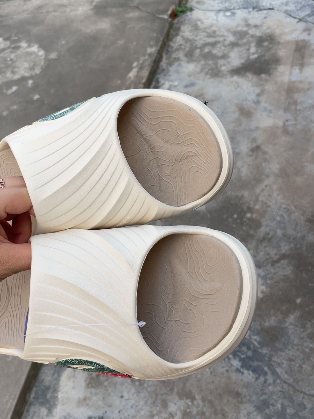 开箱新拖hai!红配绿我很喜欢~熟悉的踩屎感,随便沾水,不穿袜子不会有声音😏户外出街也可以穿,办公室也可以放一双🤫