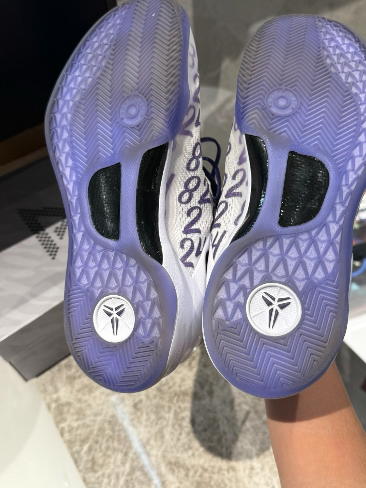 外观设计 白紫配色清新亮眼,鞋身的紫色号码与白色网眼鞋面搭配,简约又时尚,科比元素满满。 性能表现 鞋面工程网布与热压材质,支撑尚可但包裹性一般。全掌React鞋垫搭配中足碳板,提供一定稳定性,但脚感偏硬。水晶大底颜值高,抓地在干净场地不错,不过粘灰后防滑性下降,且耐磨性欠佳。 总体评价 科比8白紫复刻版颜值出众,适合收藏与日常穿搭,对于轻体重后卫在室内场也有一定实战价值,但性价比不高,...