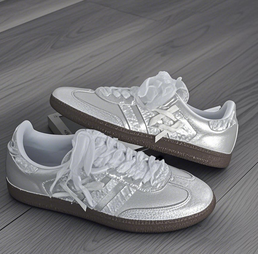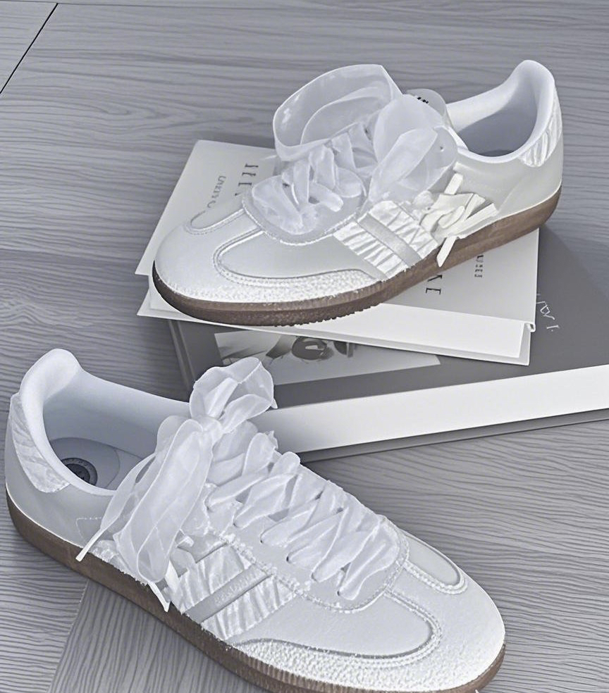 家人们,我最近挖到宝了!就是这双阿迪达斯德训鞋,真的太好穿又好看! 先说说外观,经典德训鞋型搭配上梦幻的白色,再加上那仙气飘飘的纱质蝴蝶结,直接把甜美值拉满!走在路上回头率超高,朋友见了都问我要链接。不管是搭小短裙还是阔腿裤,它都能轻松适配,时尚感瞬间拿捏。 再讲讲穿着感受。我平时走路多,对鞋子舒适度要求很高。这双鞋上脚很舒服,鞋底软硬适中,有一定的弹性,走路久了也不会觉得累。鞋面材质柔软,不...