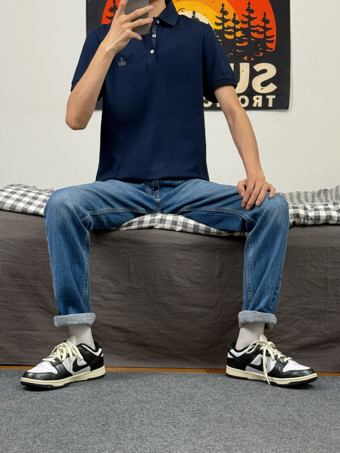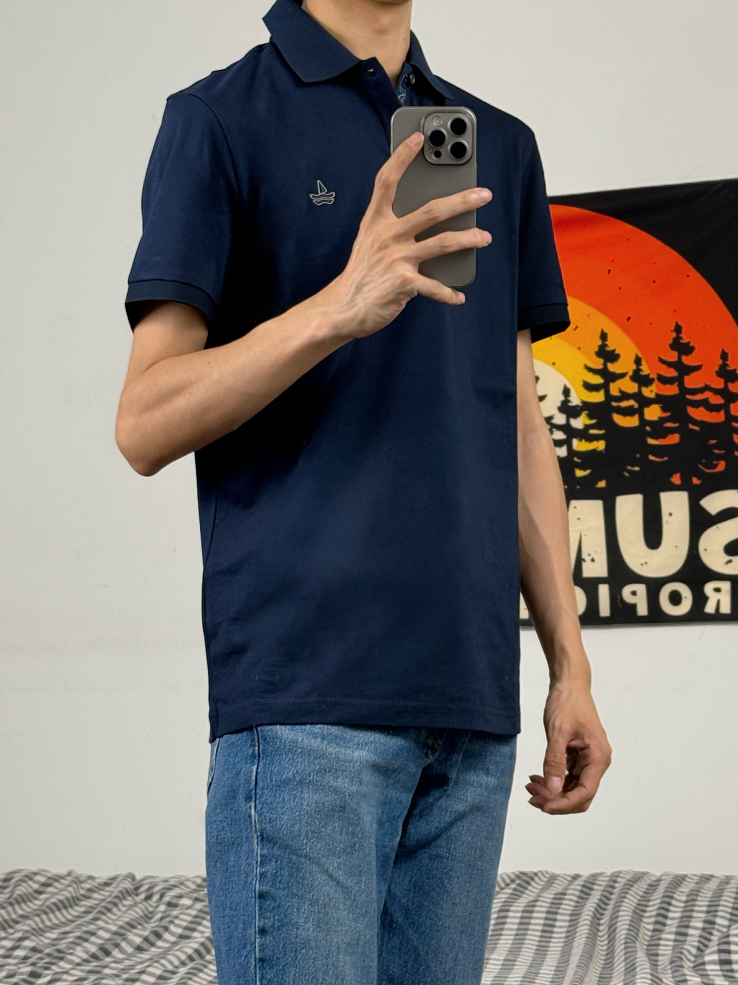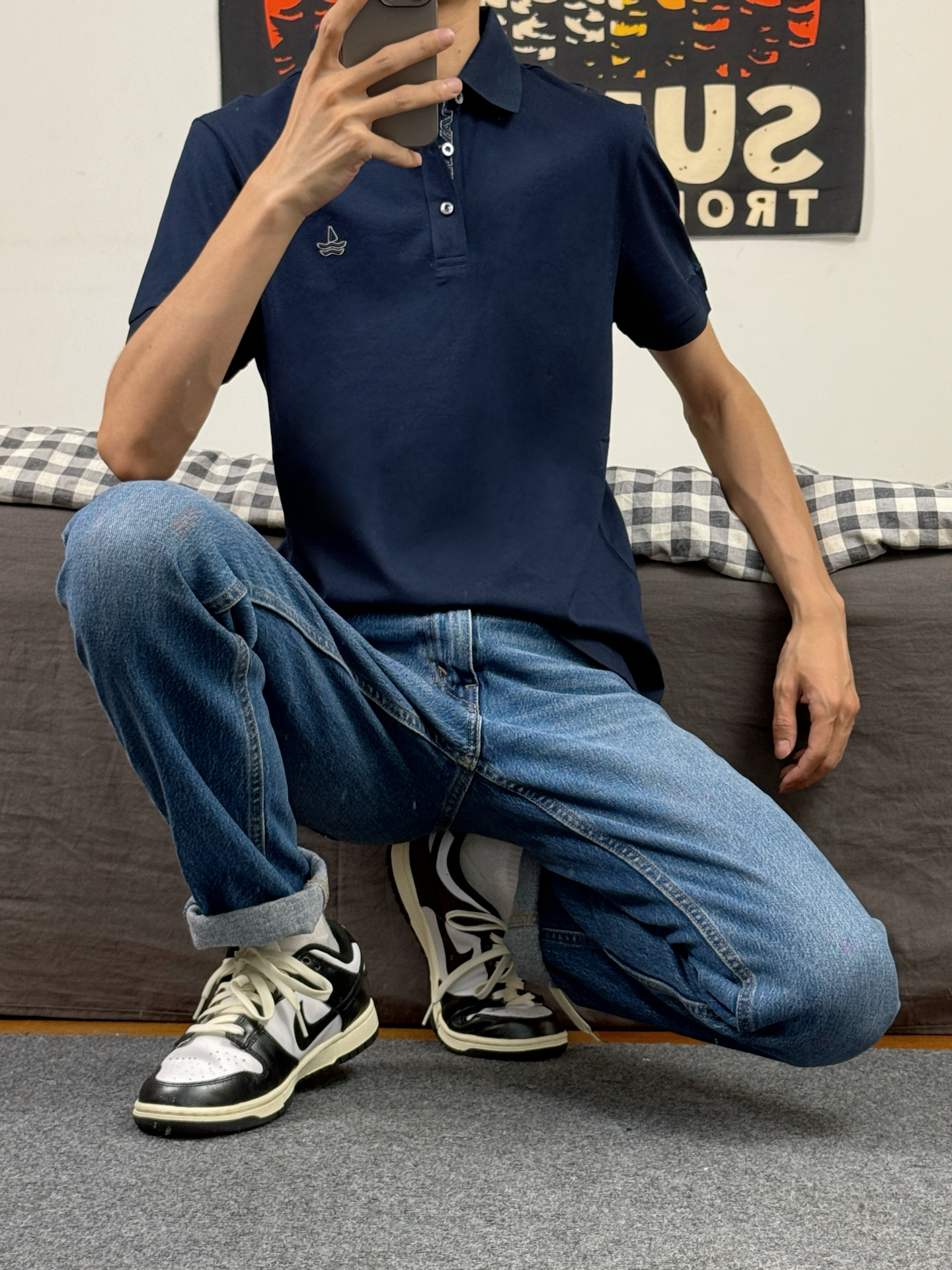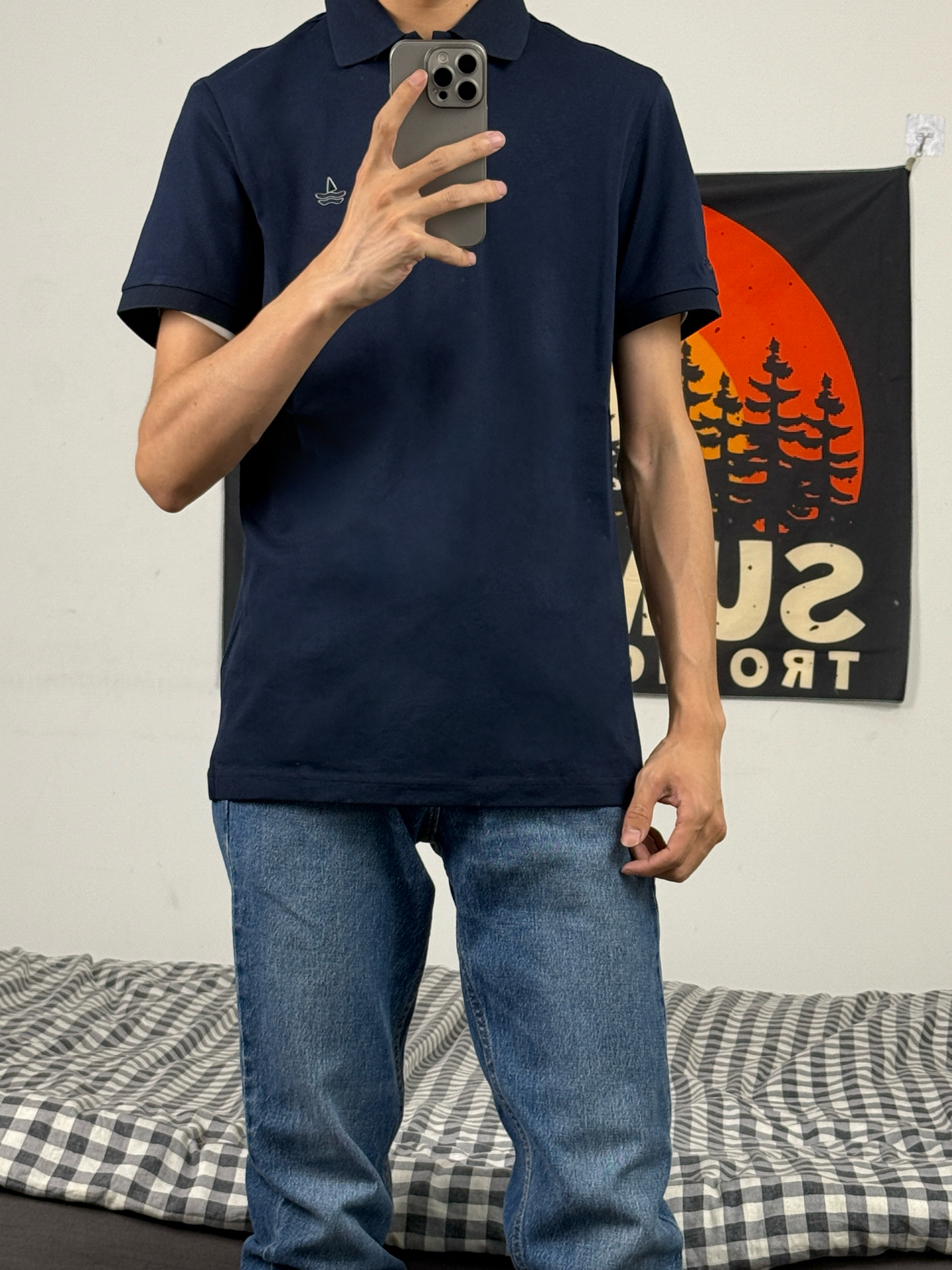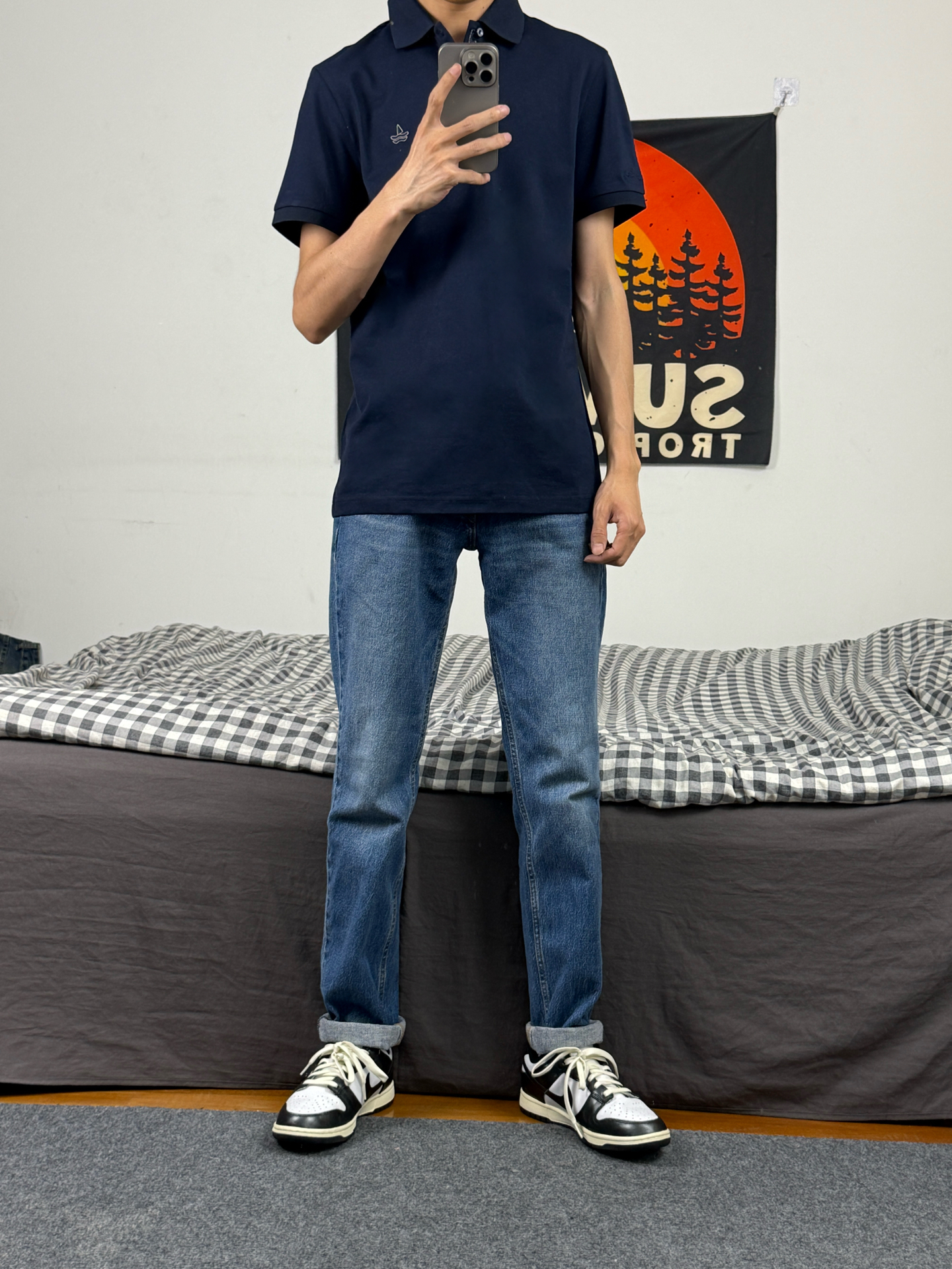 身高174体重48kg 今日上身 圆领短袖+牛仔裤+aj1影子灰 👕是 #NAVIGARE 家的圆领短袖 款式偏合身 简约配色搭配胸口的小帆船logo 上身特别百搭 款式偏轻薄 穿在身上柔软透气 上身m码刚刚好 👖搭配的直筒牛仔 美式复古风格 直筒版型 上身显得腿又细又长 👟是aj1影子灰 #宝藏短袖T恤的穿搭分享 #navigare意大利小帆船 #男生春天穿搭OOTD #宝藏polo衫分...