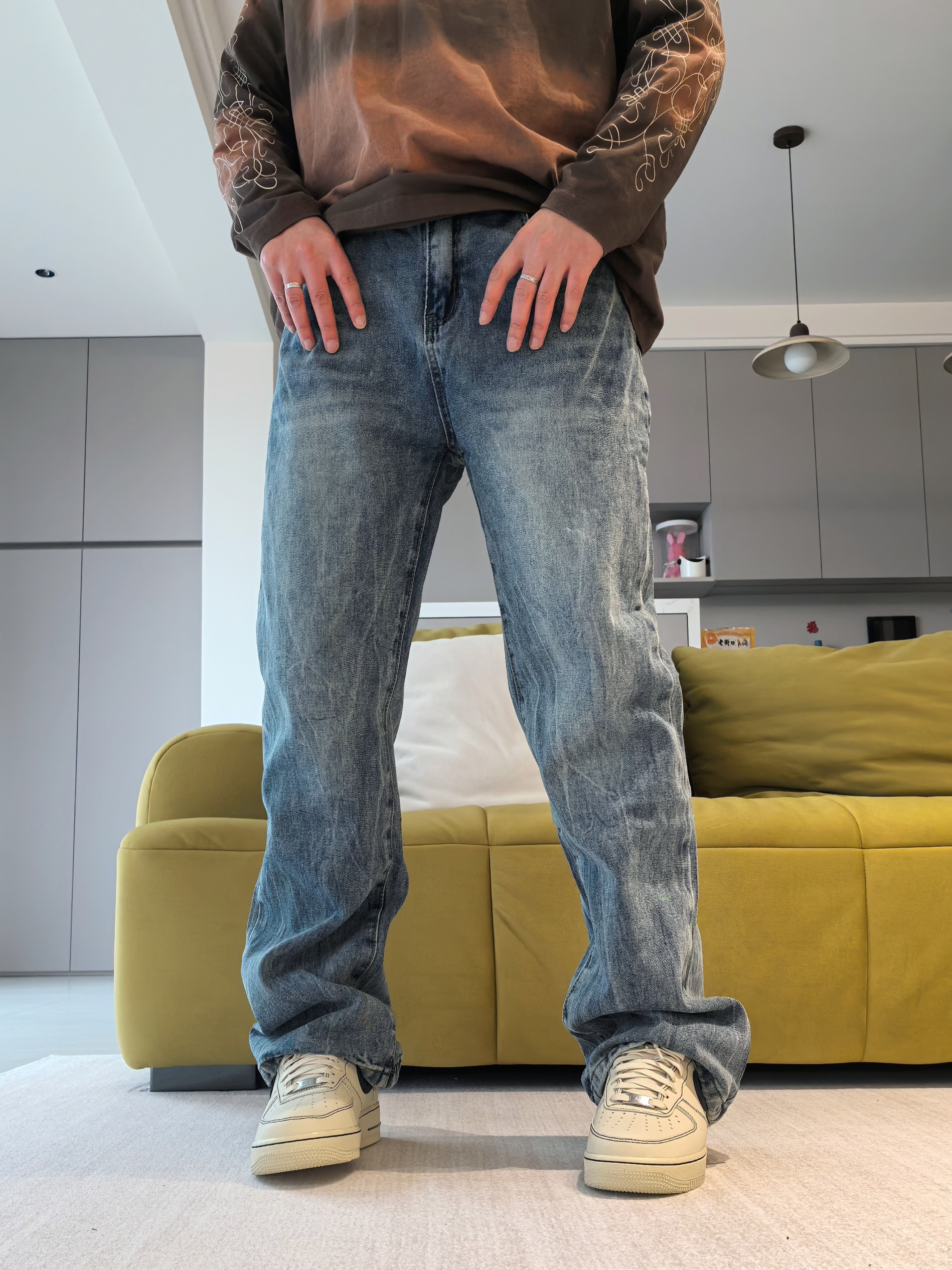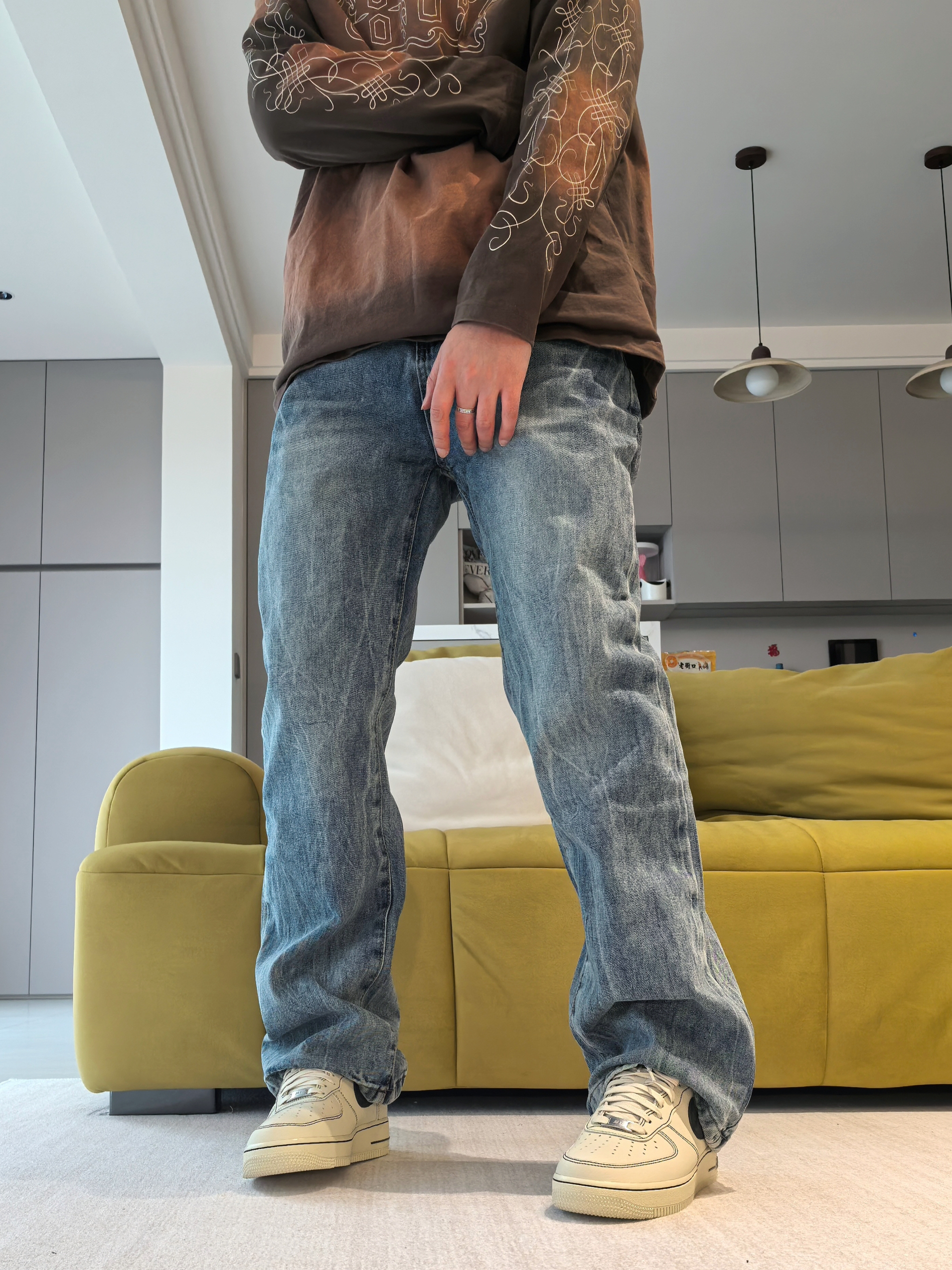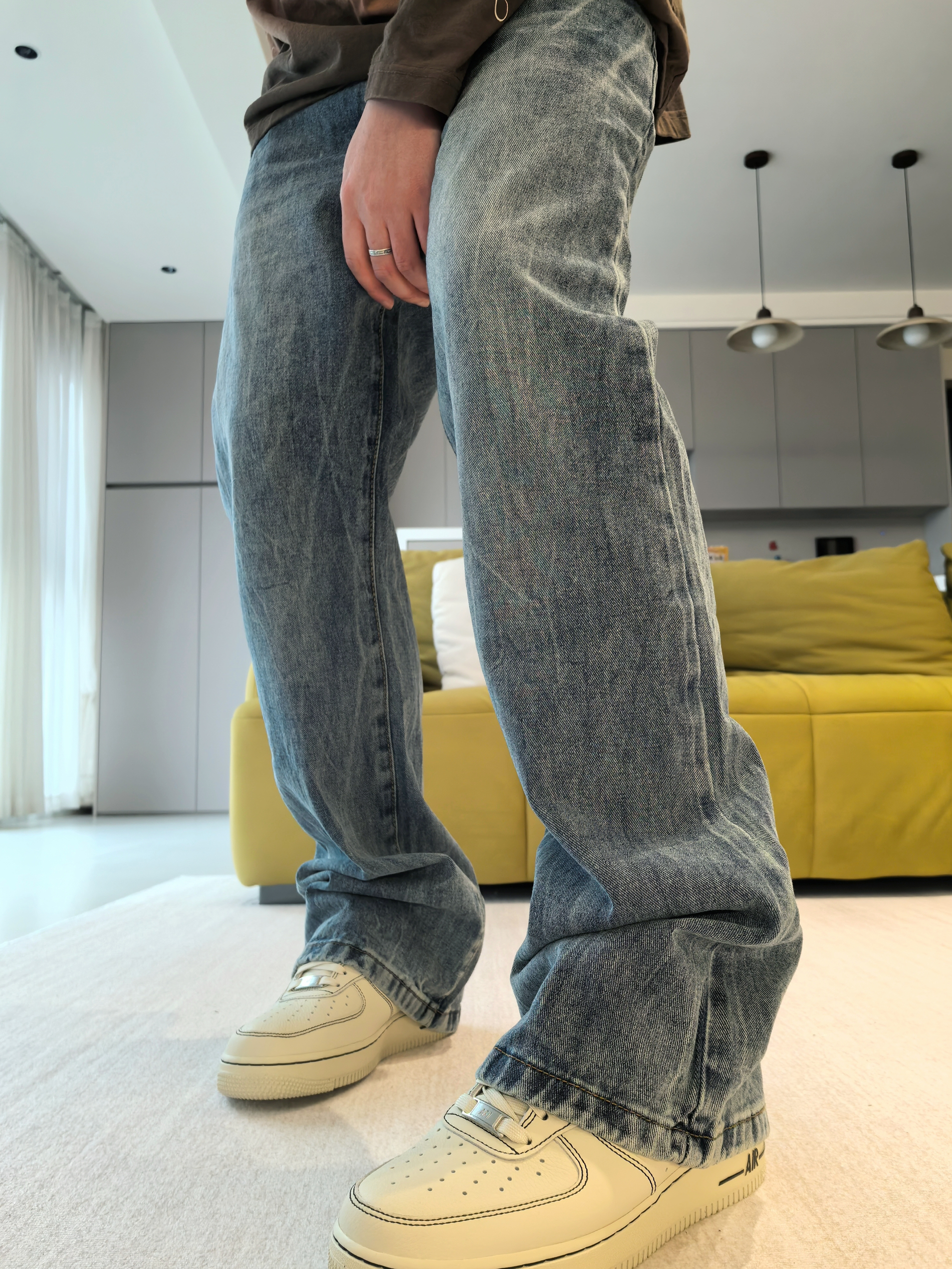 微喇风显腿长又显瘦 蓝色配色搭上一些细节纹路! 上身休闲感拉满~💥 ------ 普款AF1这次也不普通带有一点点特色显高级❕