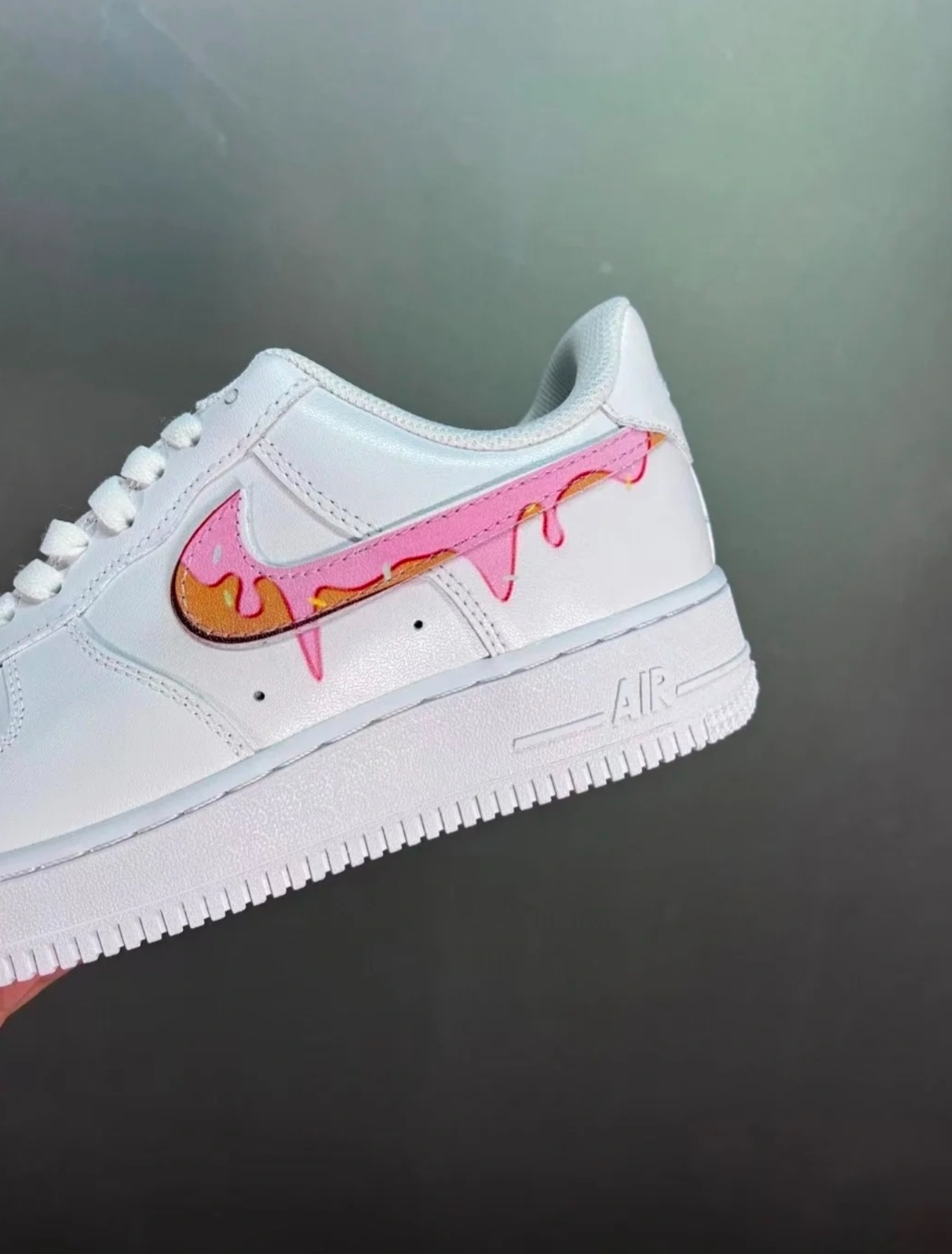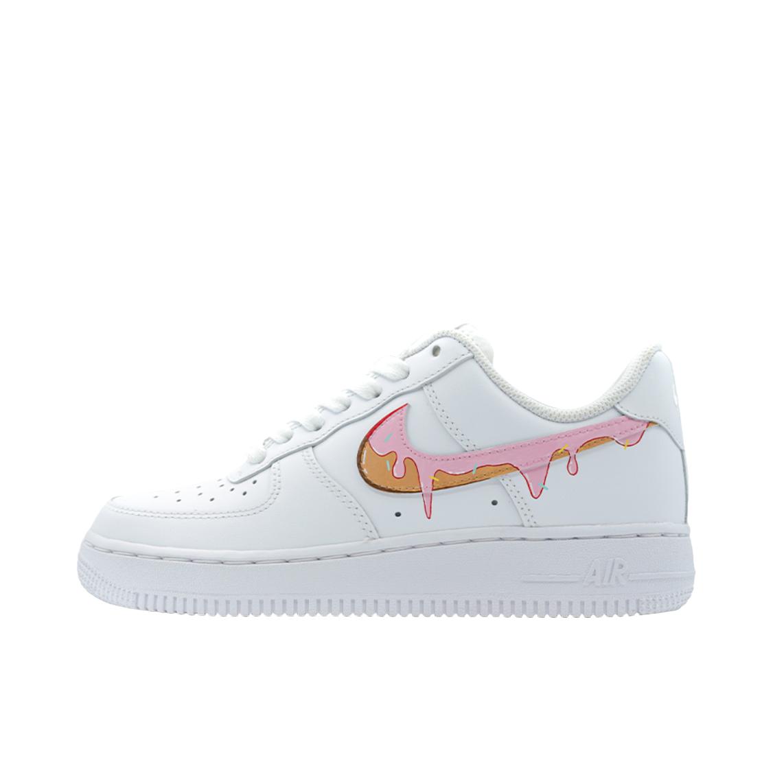 【定制球鞋】Nike Air Force1男款 冰淇凌海浪定制 鸳鸯勾 甜甜圈 马卡龙 夏日限定 白 该定制版球鞋选用原鞋款为耐克Air Force1纯白男款。灵感文案:将夏天中不可或缺的元素融入夏日必备的小白鞋,简约中又带着浓浓的夏日气息,清凉又甜美。