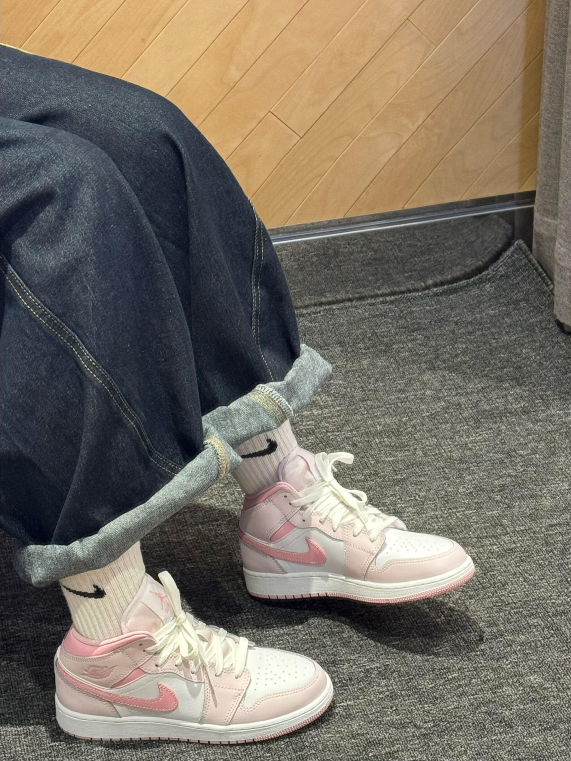 入手这双 AJ1 粉白配色啦! 皮革鞋面质感在线,白色与粉色搭配,活力又吸睛。上脚后,鞋型很修饰脚型,鞋带系紧后包裹感刚好,不勒脚。 虽然没有特别软弹的脚感,但日常逛街、通勤穿着,舒适度完全能满足。 搭配短裙或牛仔裤,轻松打造出青春时尚感,回头率满满,真的越看越爱! #很难不爱粉色鞋 #粉色系AJ1 #粉色的AJ1 #粉色aj1 #粉色系列aj