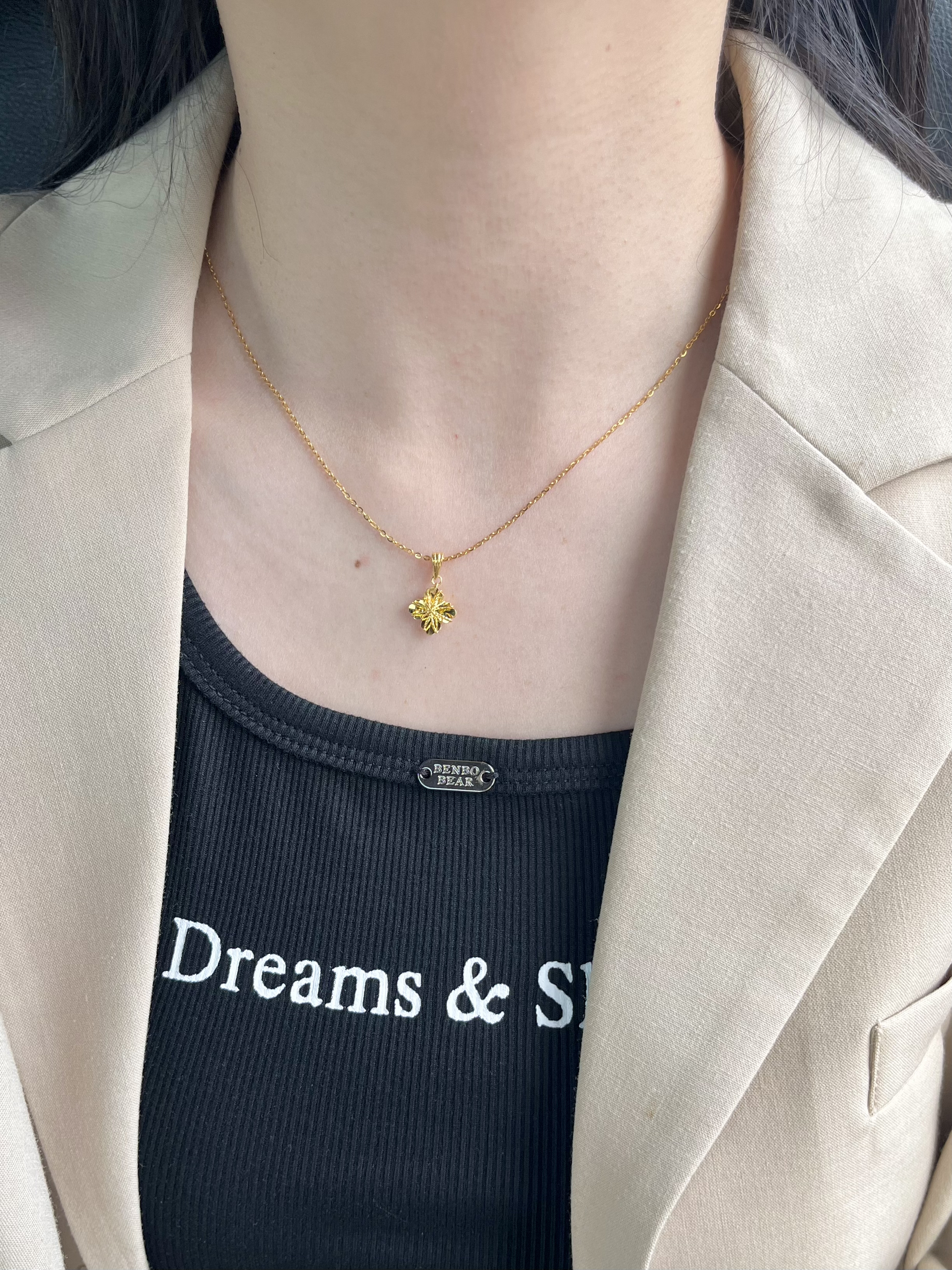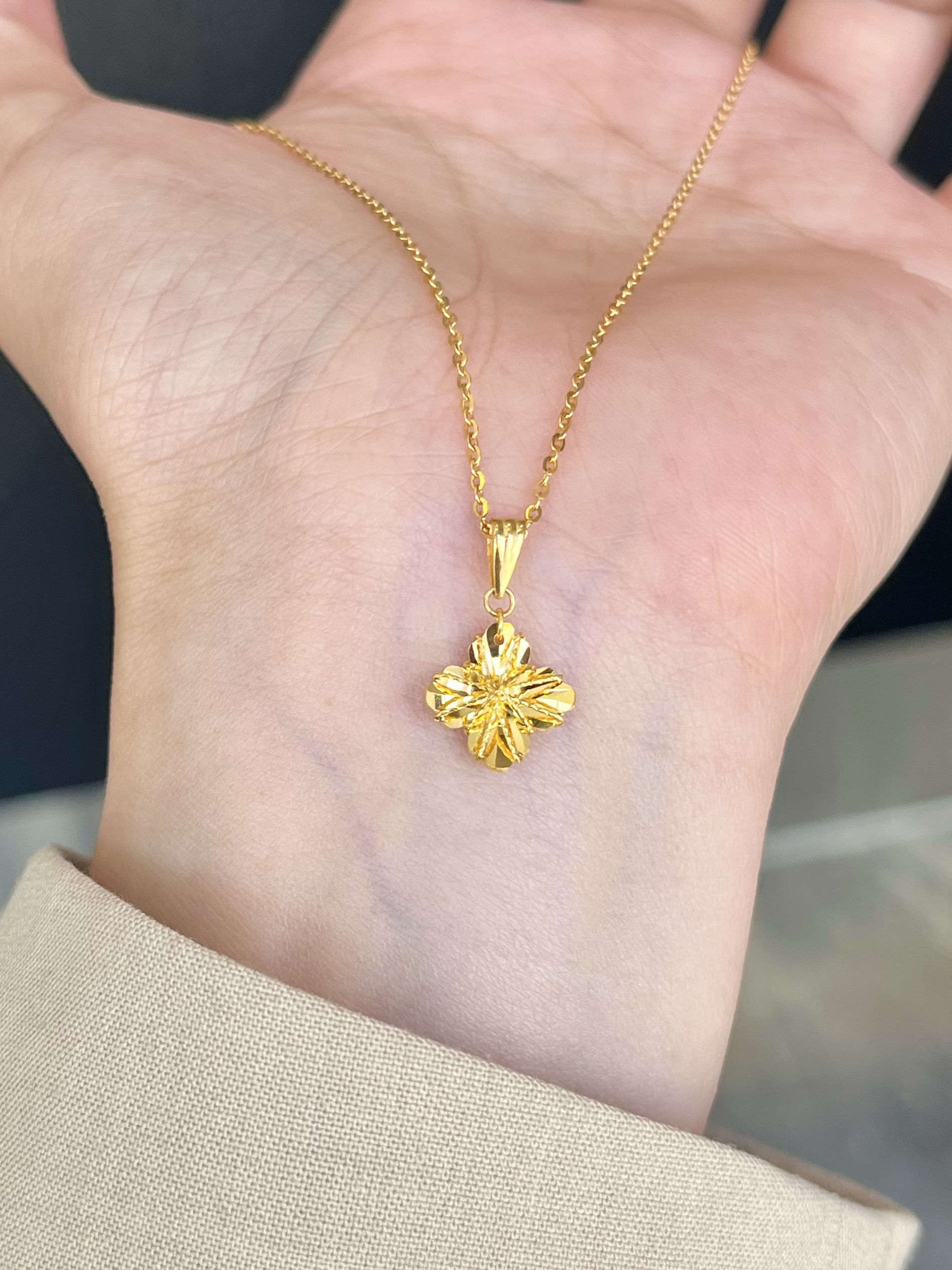 老凤祥你都没有设计瓶颈吗 介个四叶草项链尊嘟很有少女感 立体拉丝设计blingbling哒 我觉得戴在脖子上还蛮特别的 日常也不容易撞款,hin百搭 520送女友蛮不错的选择!