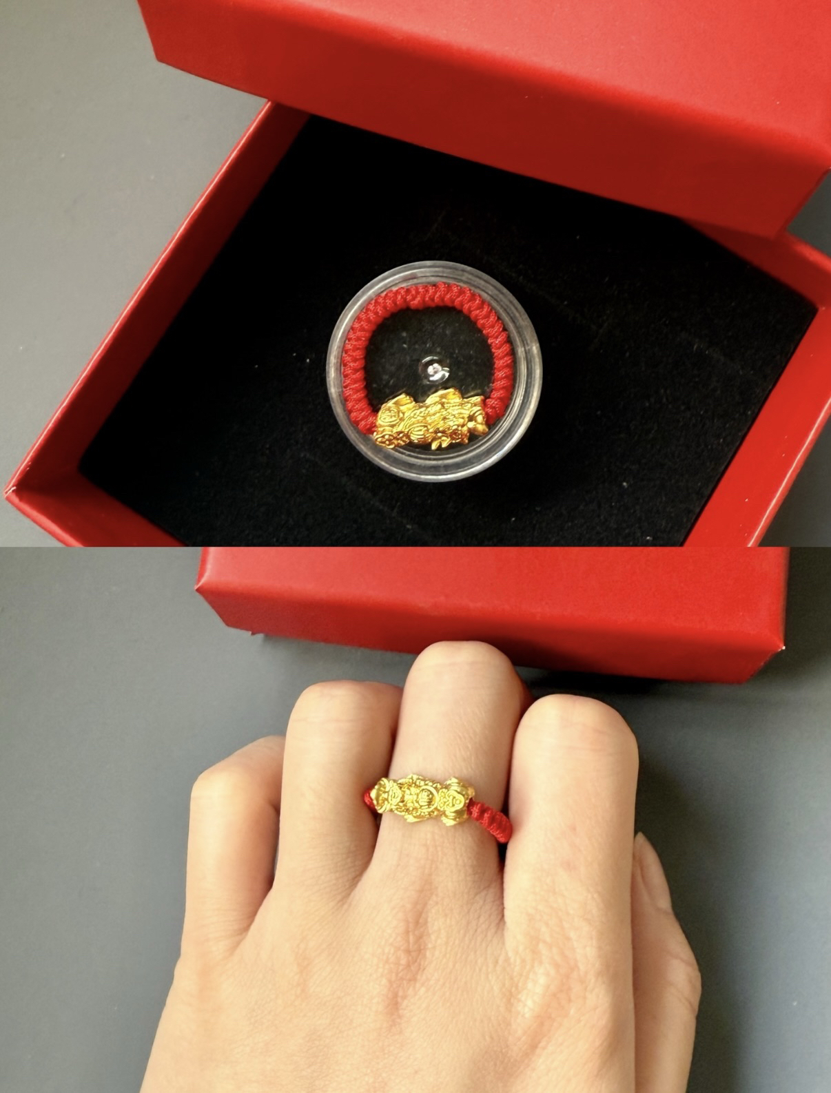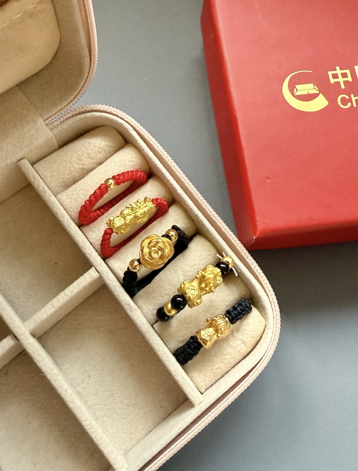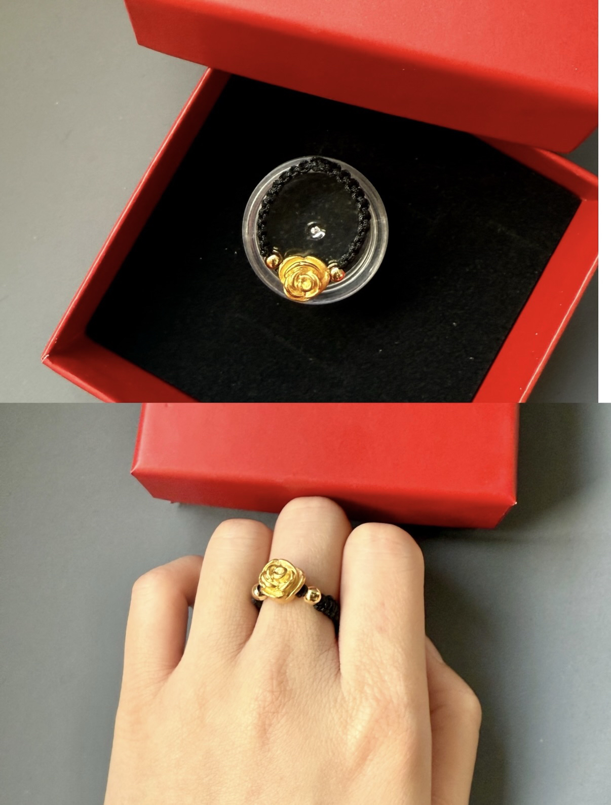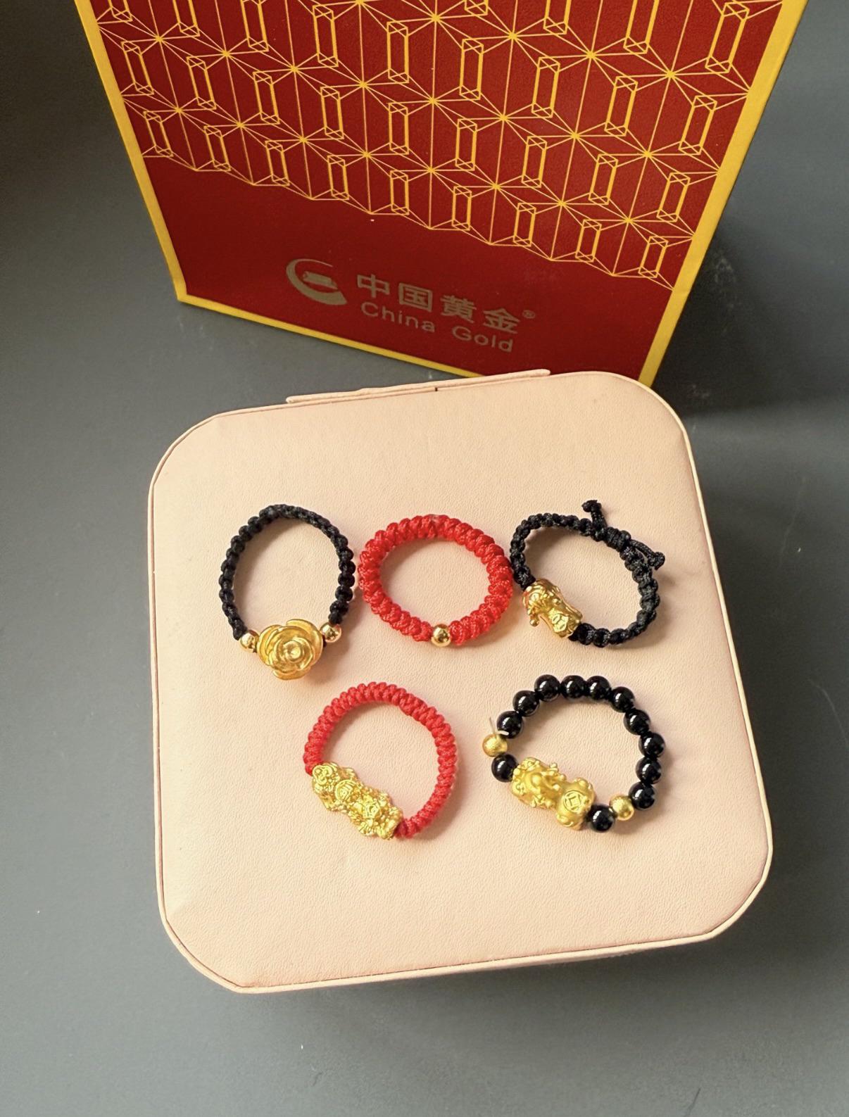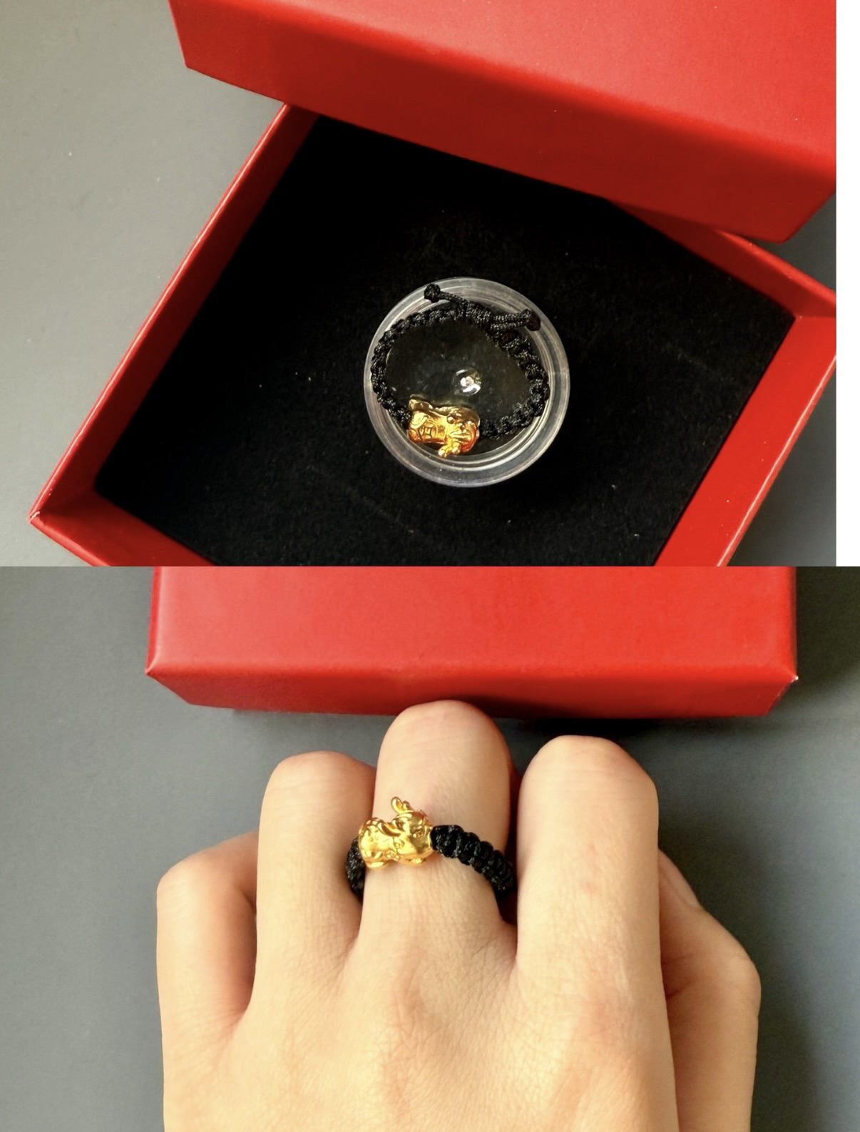 编织绳的戒指第一次见,黑色根红的都好好看,红色女生戴黑色男生带,搭配貔貅简直绝了,貔貅也是寓意好嘛,寓意着来财,不仅有貔貅,还有玫瑰花戒指也很独特,戴着显白高级,每一个款都很独特,都是百搭款,高级简约大气。
