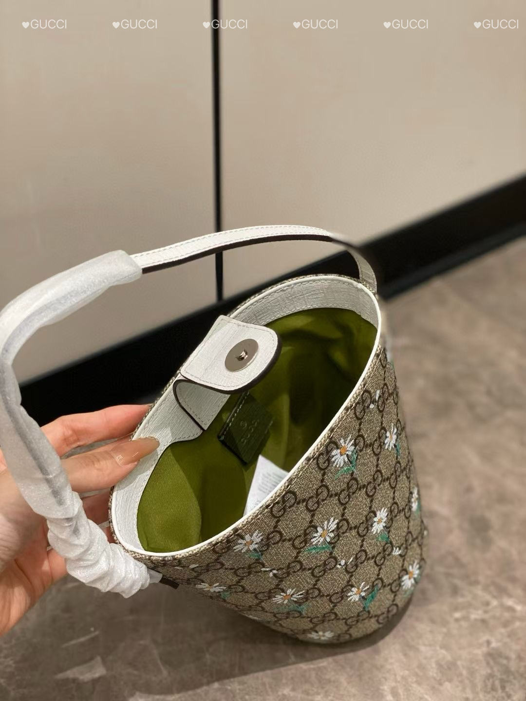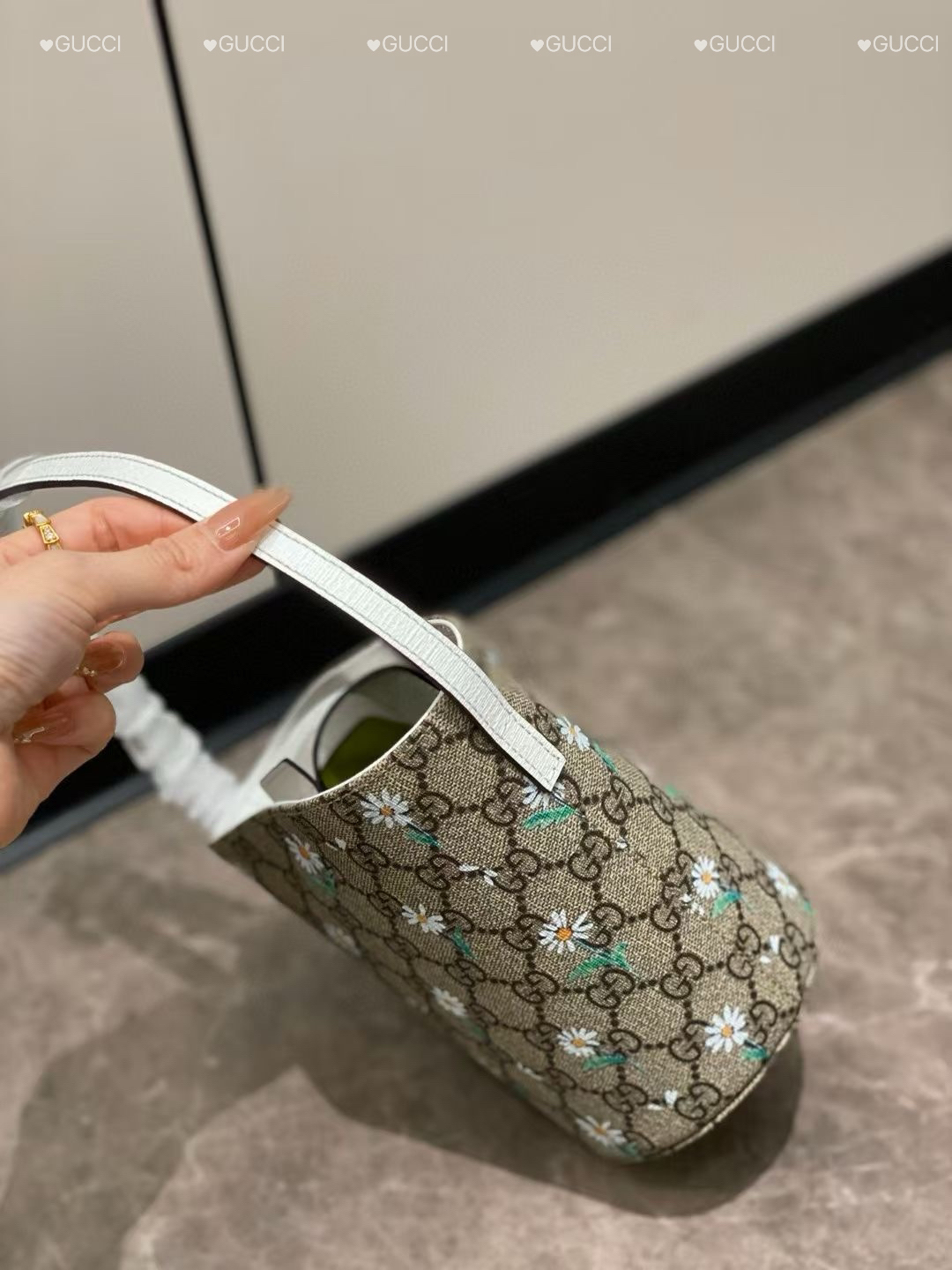 我宣布这款水桶包就是我的心头好!复古的老花图案和小雏菊刺绣相得益彰,手柄细节满满。背在身上既洋气又可爱,不管是逛街还是约会都超合适,闭眼入不亏!