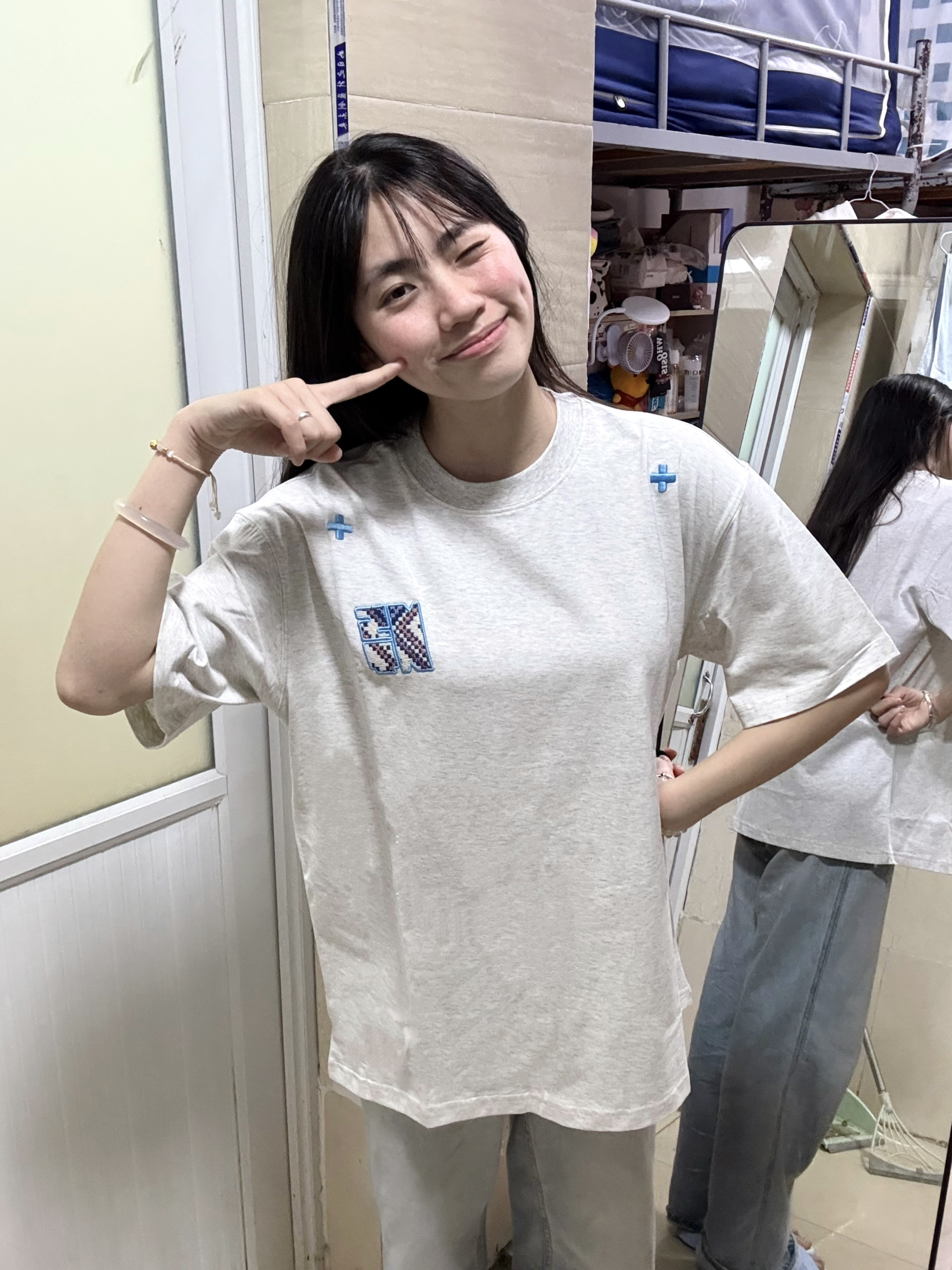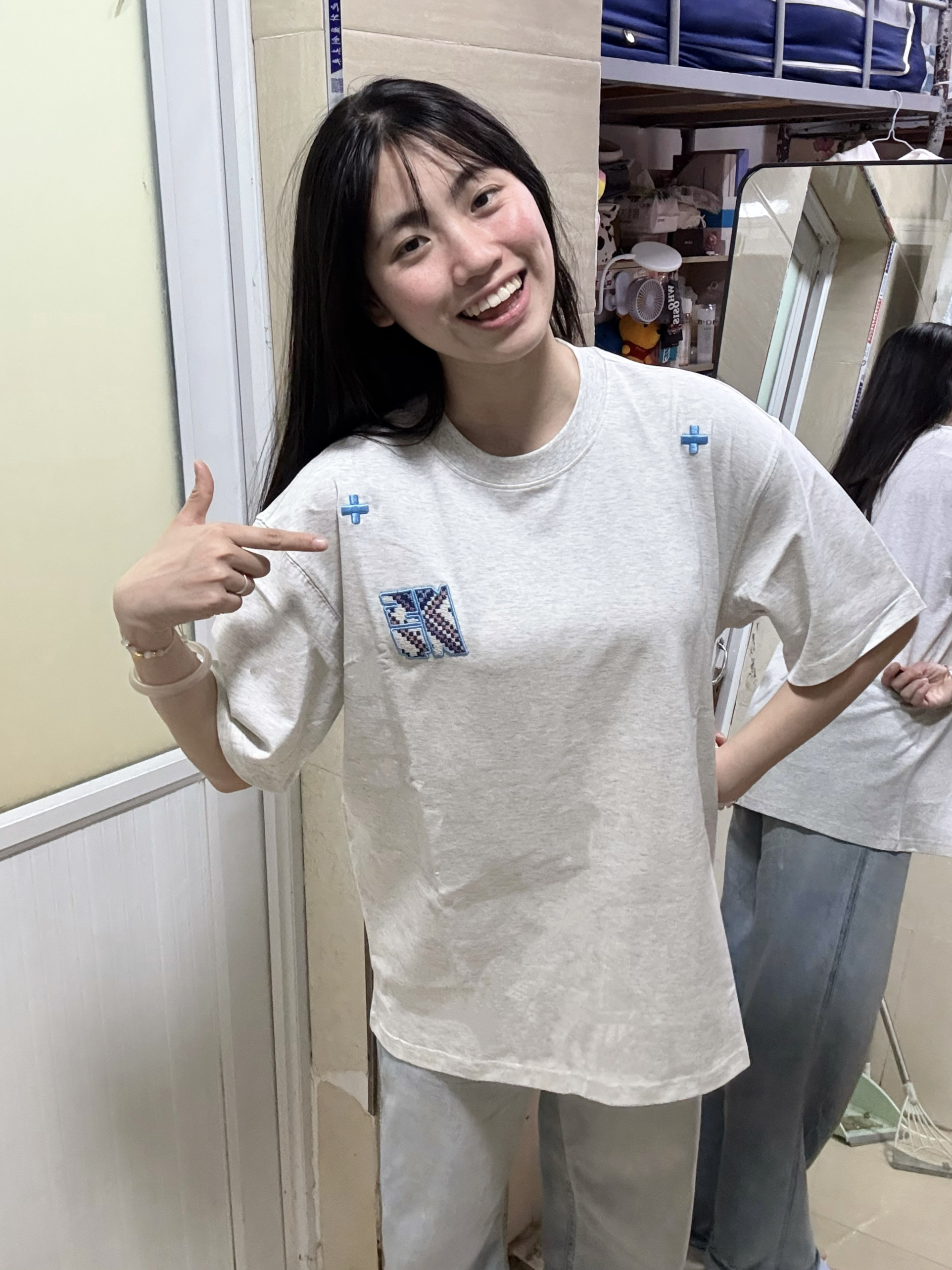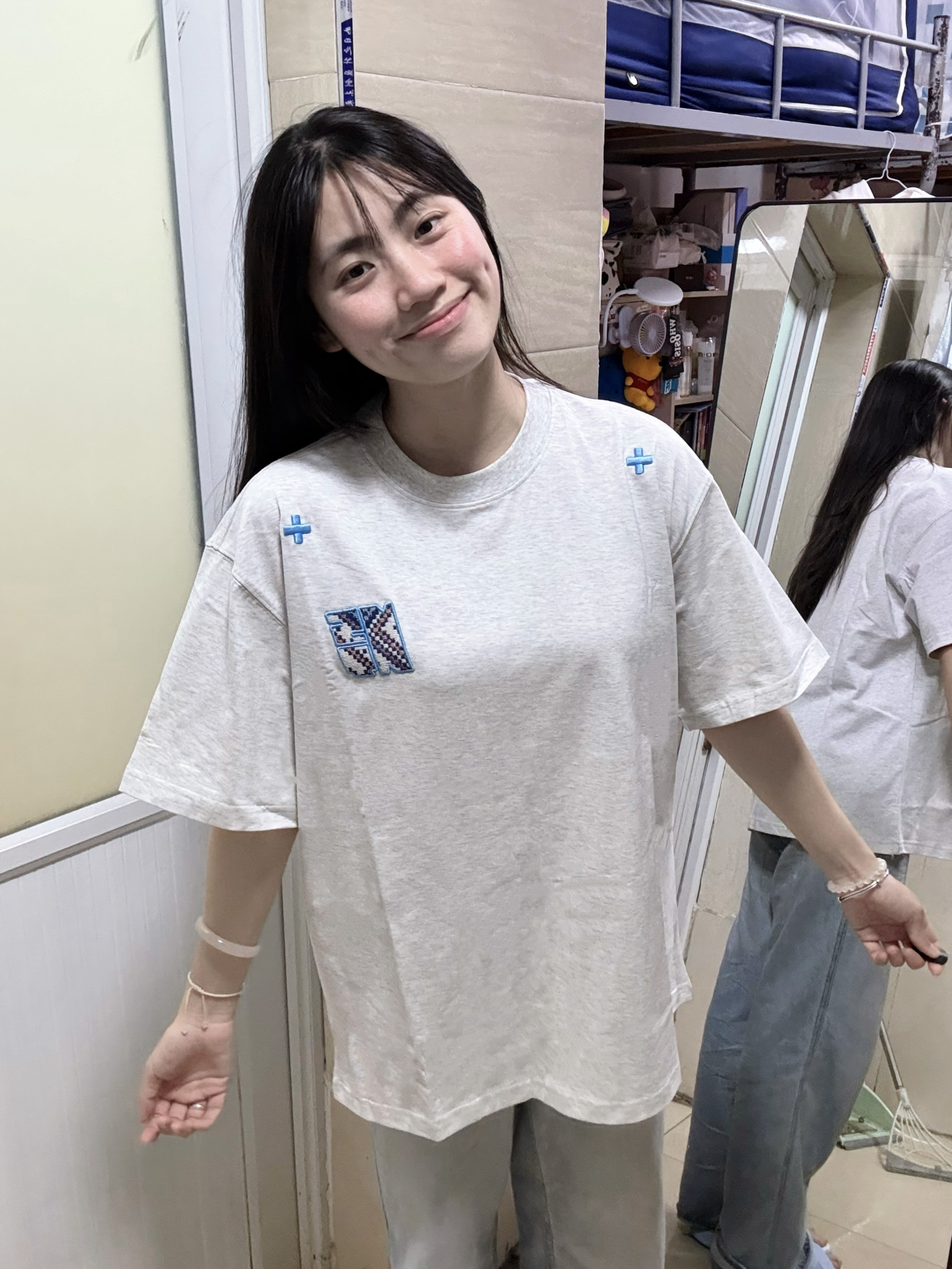 166 102穿的是M码 胸前的刺绣民族感满满!!!而且花灰色和蓝色组合在一起给人很清爽的感觉 喜欢的宝宝可以参考一下哦