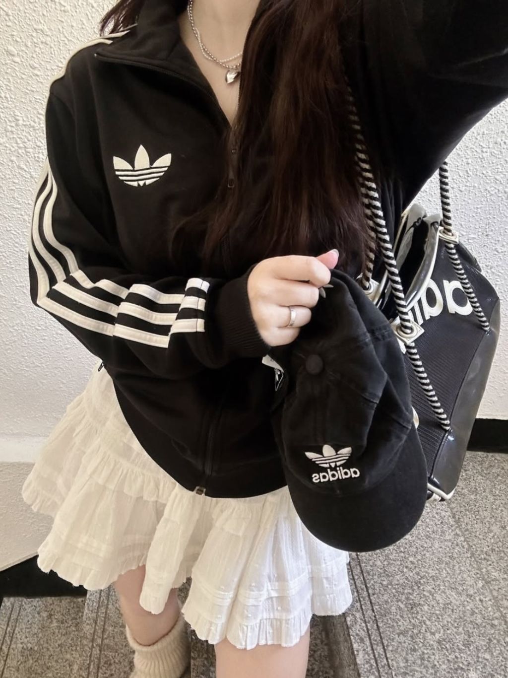 以前觉得阿迪的黑白条纹报看 直到我入手了一件穿了下才发现 真香… 但是我这件是立领的,感觉不适合脖子短的穿 整体上身还是蛮显瘦哒