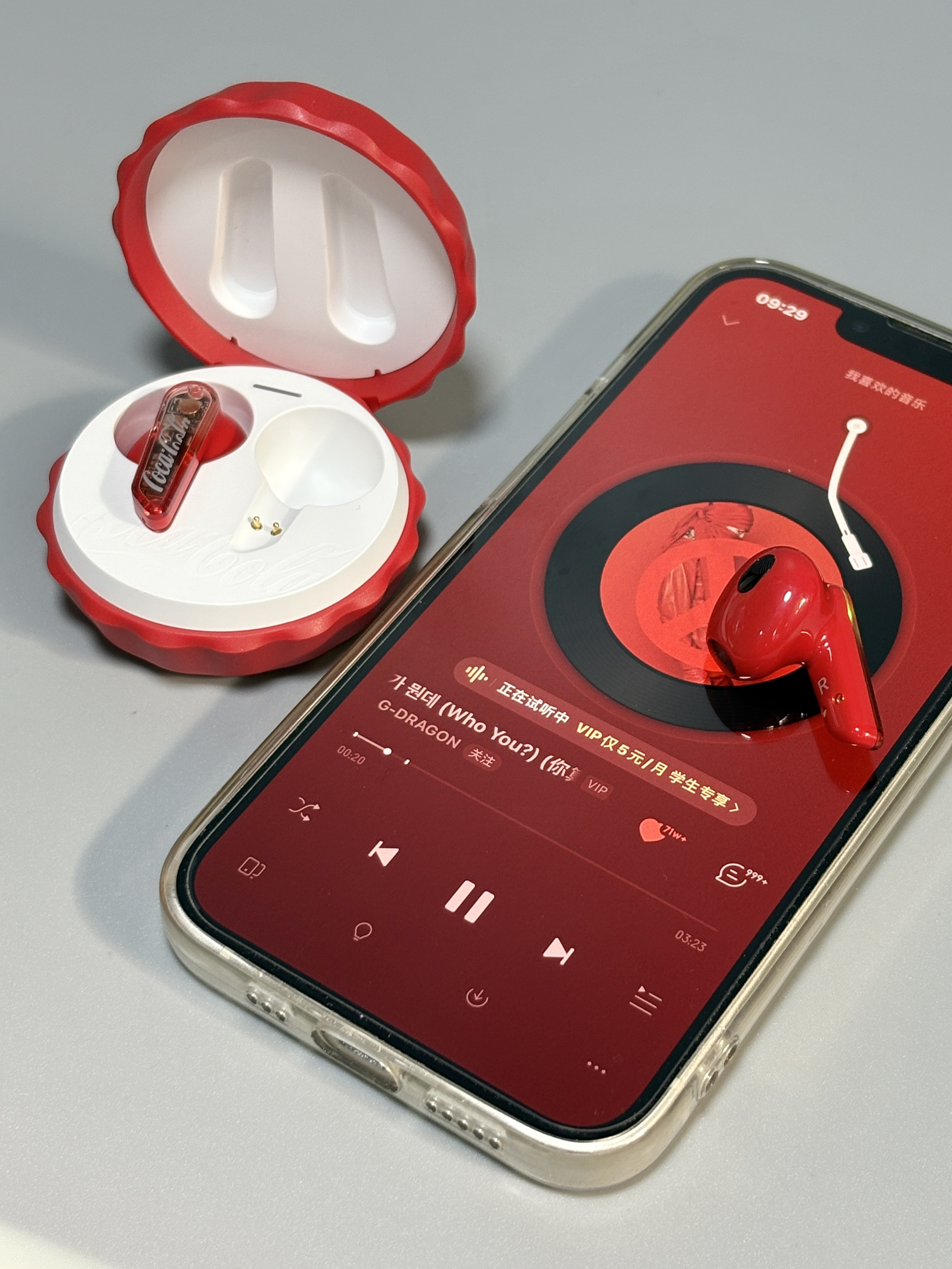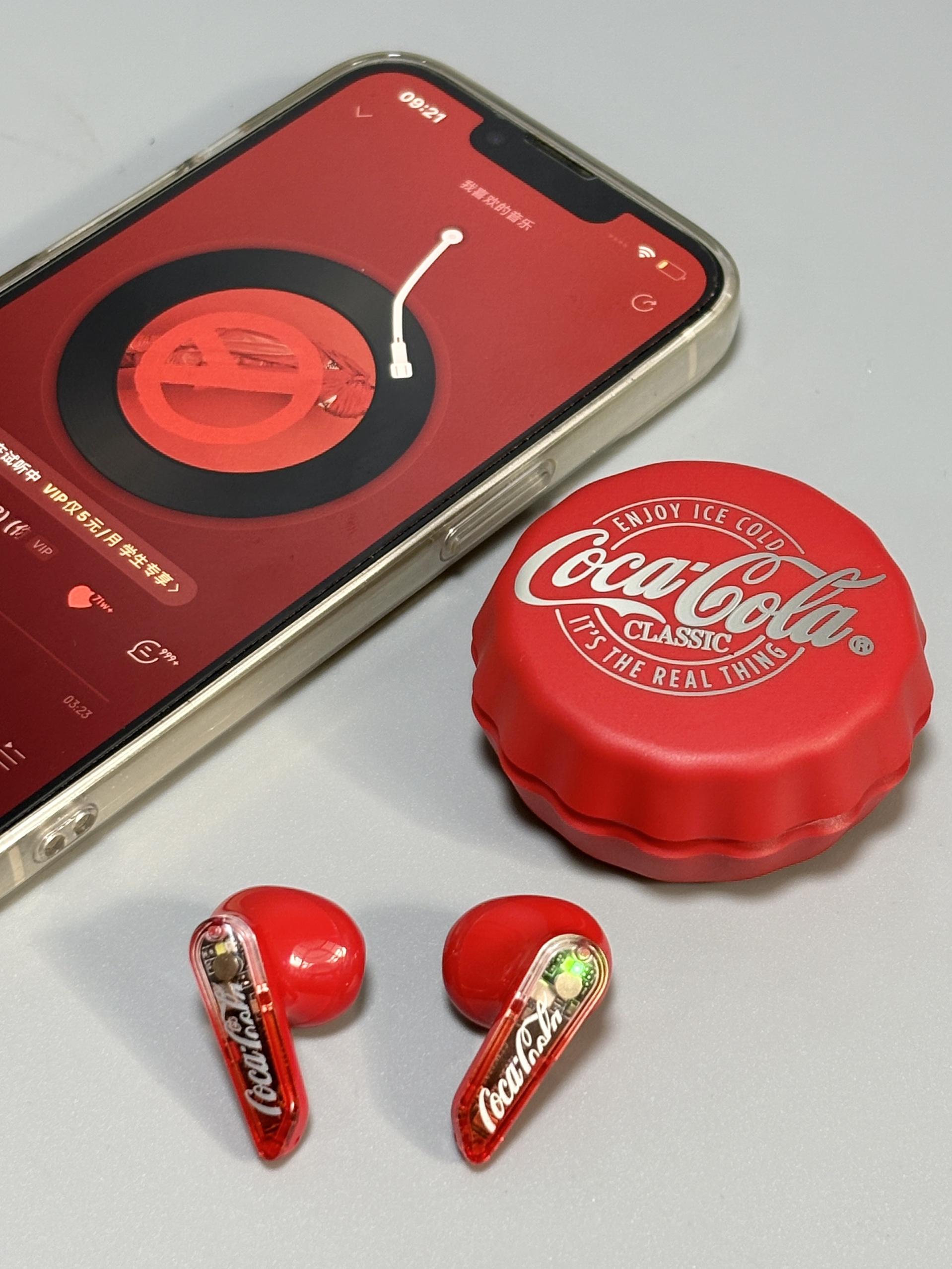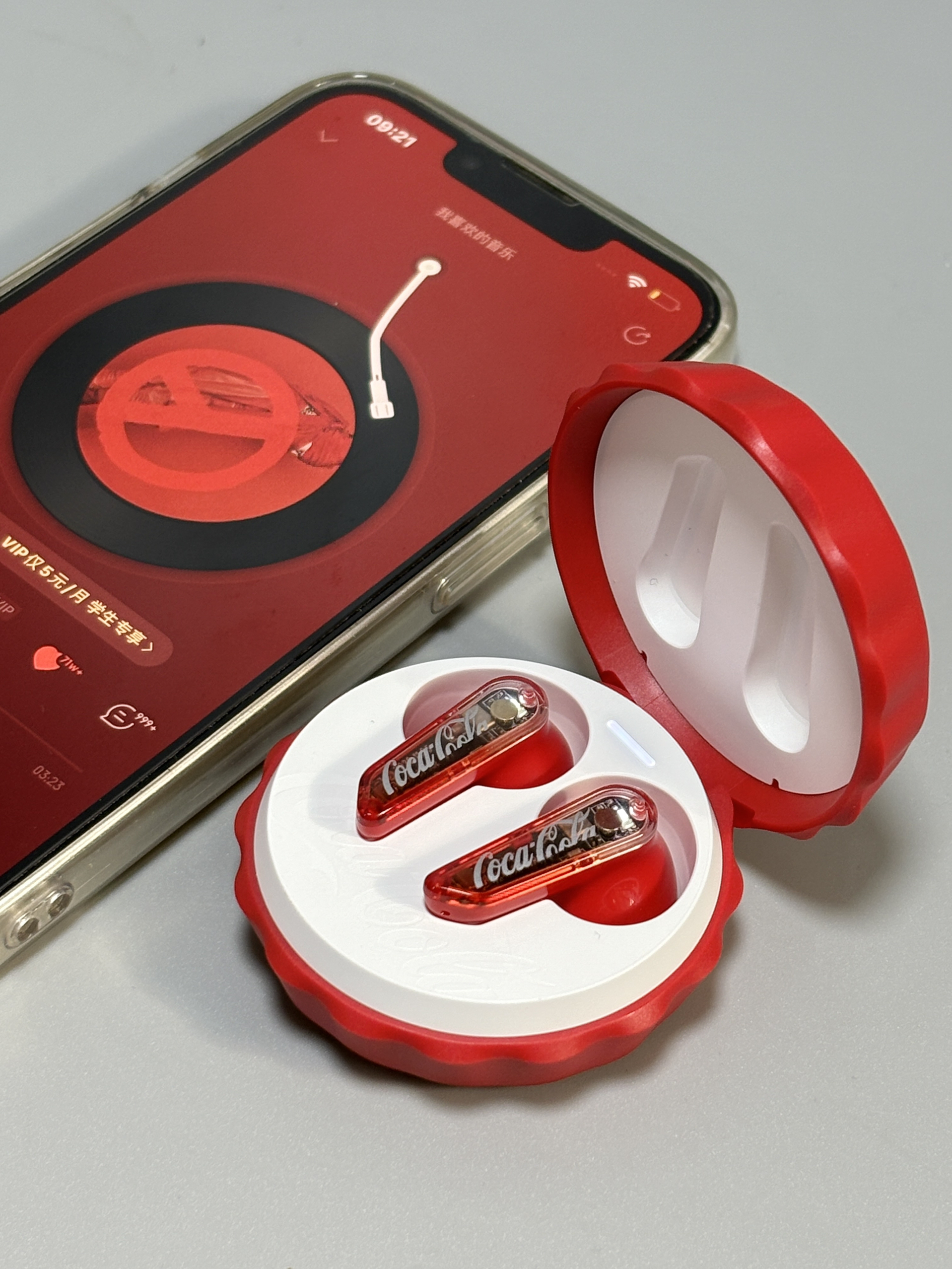 是可口可乐的蓝牙耳机耶! 像瓶盖的设计好特别 音质和续航都蛮不错的 我用它听歌都更沉浸啦