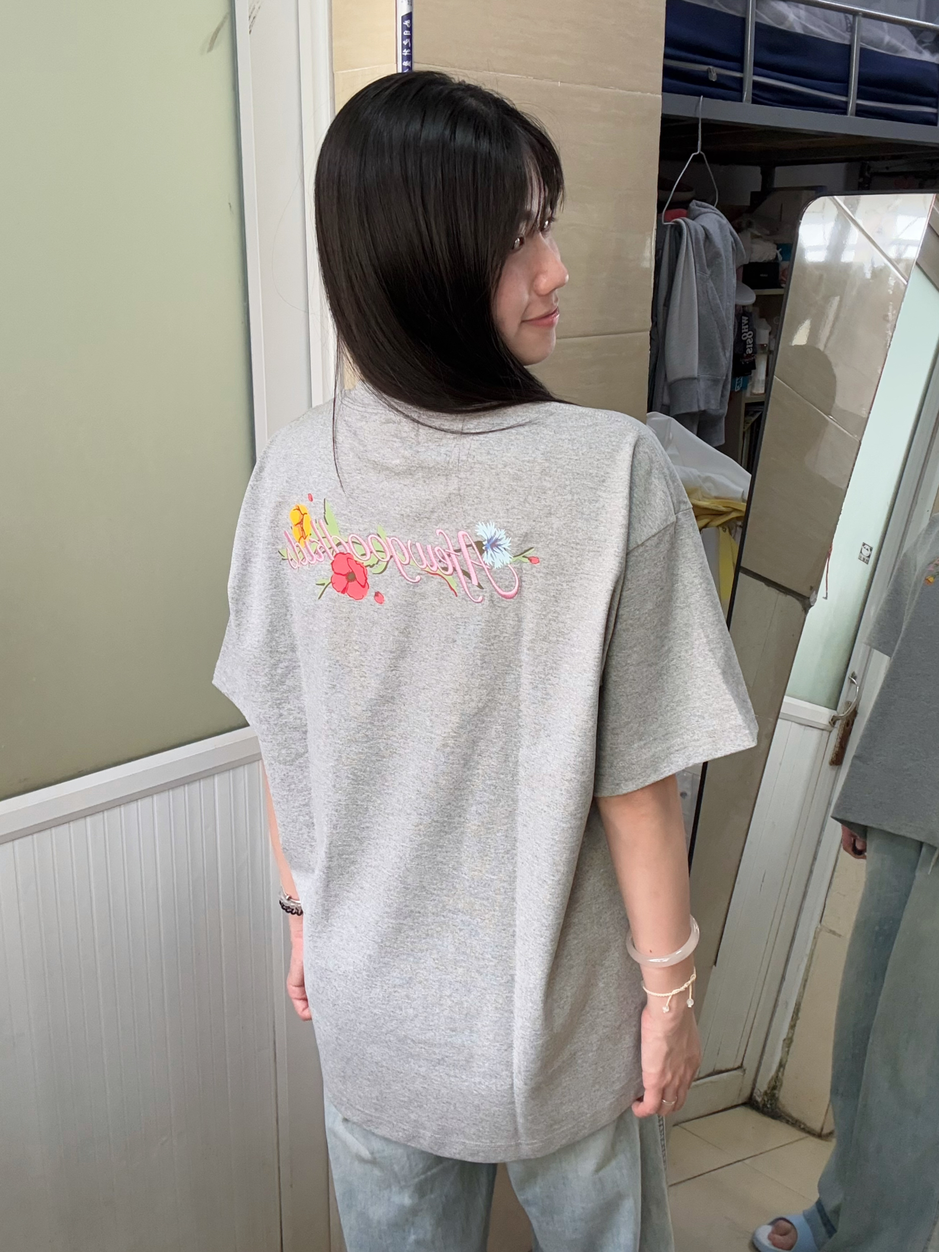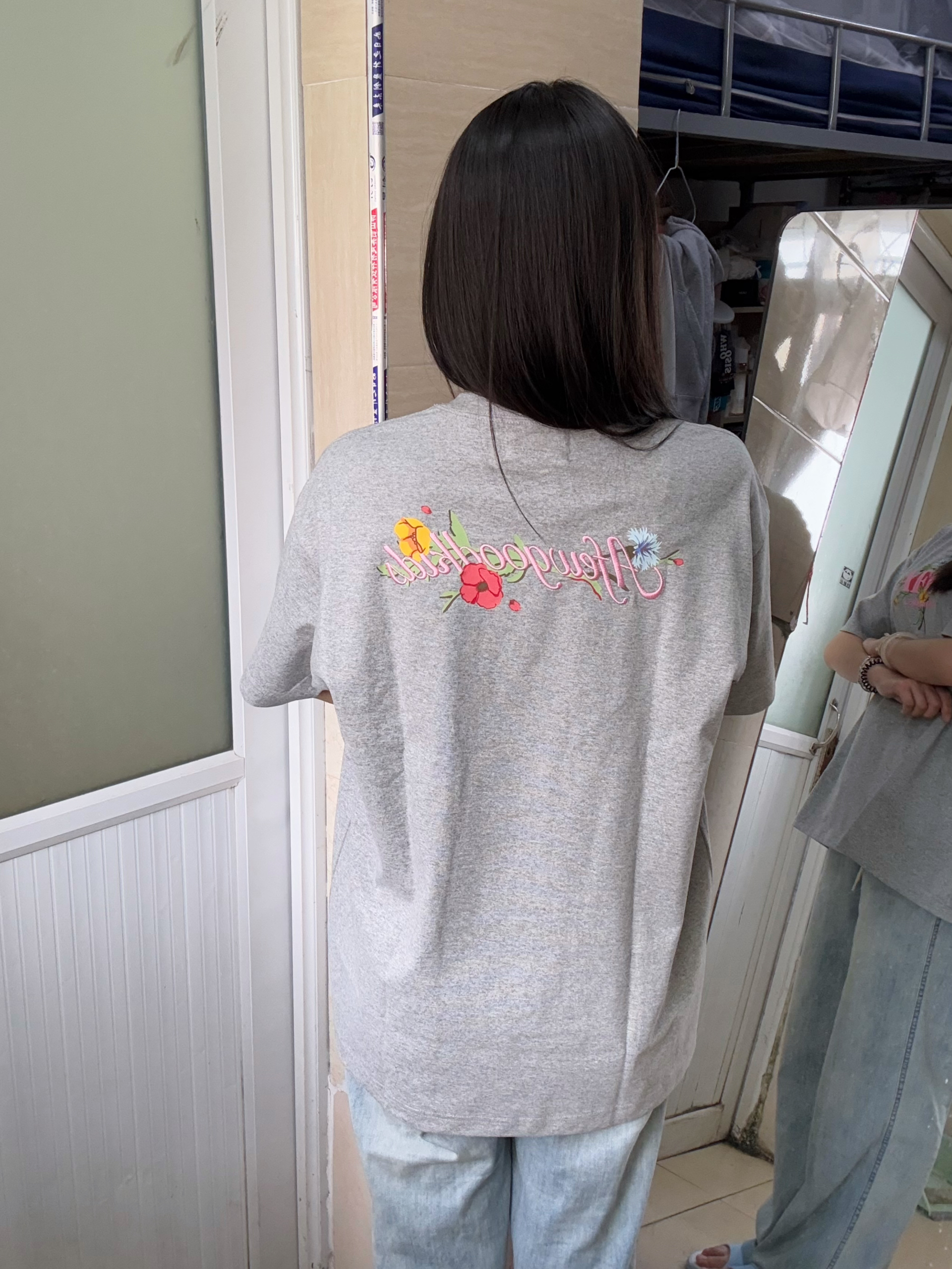 166 102穿的是M码 胸前是几朵彩色的花 后背还有花朵的刺绣 很有生命力呀 喜欢的宝宝可以参考一下哦