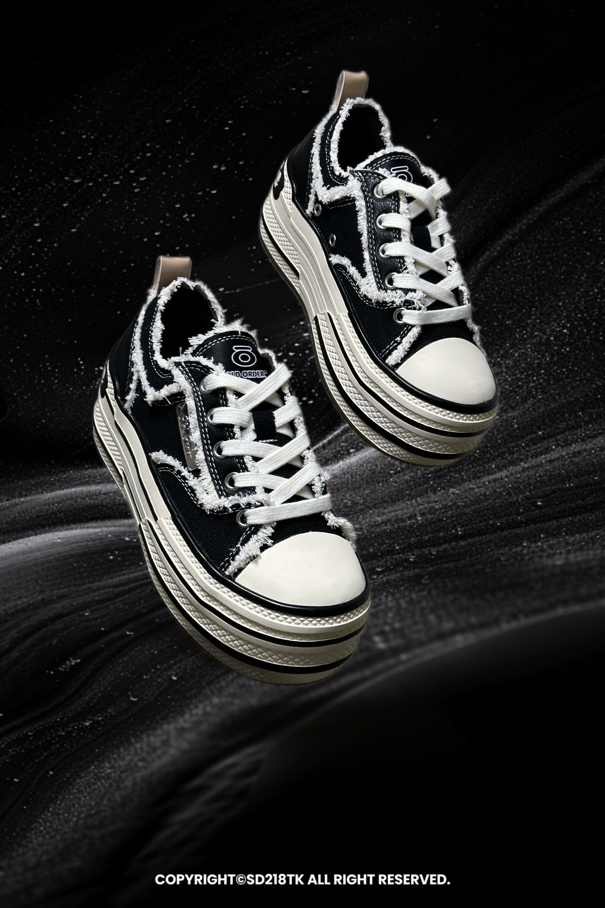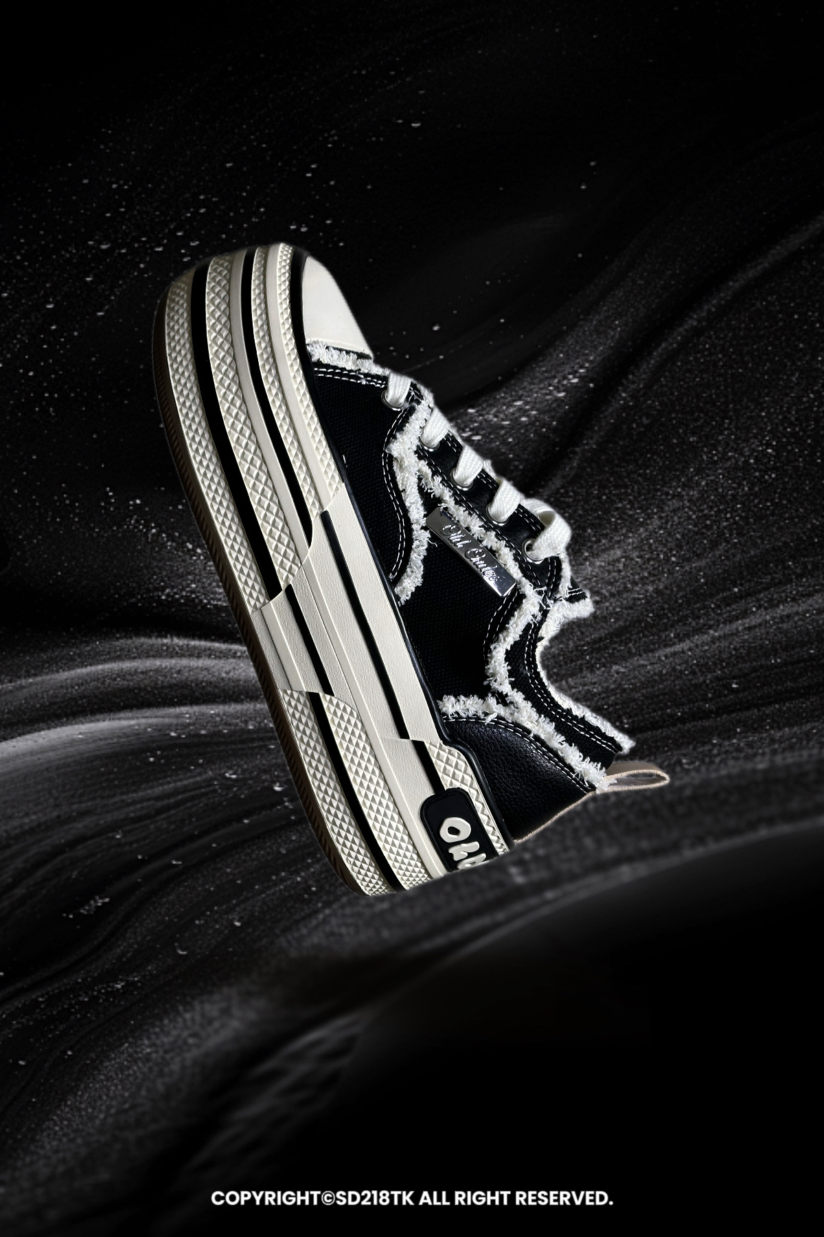 🎆球鞋设计 我最近入手了一双OLDORDER的厚底解构帆布鞋——Canvas High。加高的版本我觉得会在穿搭上更富有想象力,解构的设计也更加青春流行。鞋面是多种材质拼接而成,更富有街头感。鞋跟增高了6.5cm,衣服里的衣服不再担心,视觉上拉长腿型不在话下。鞋底侧面也运用了解构美学打造,让设计上能更具有整体性。 🎇尺码搭配 鞋子按日常穿搭选择就好,不偏码。我入手的黑白...