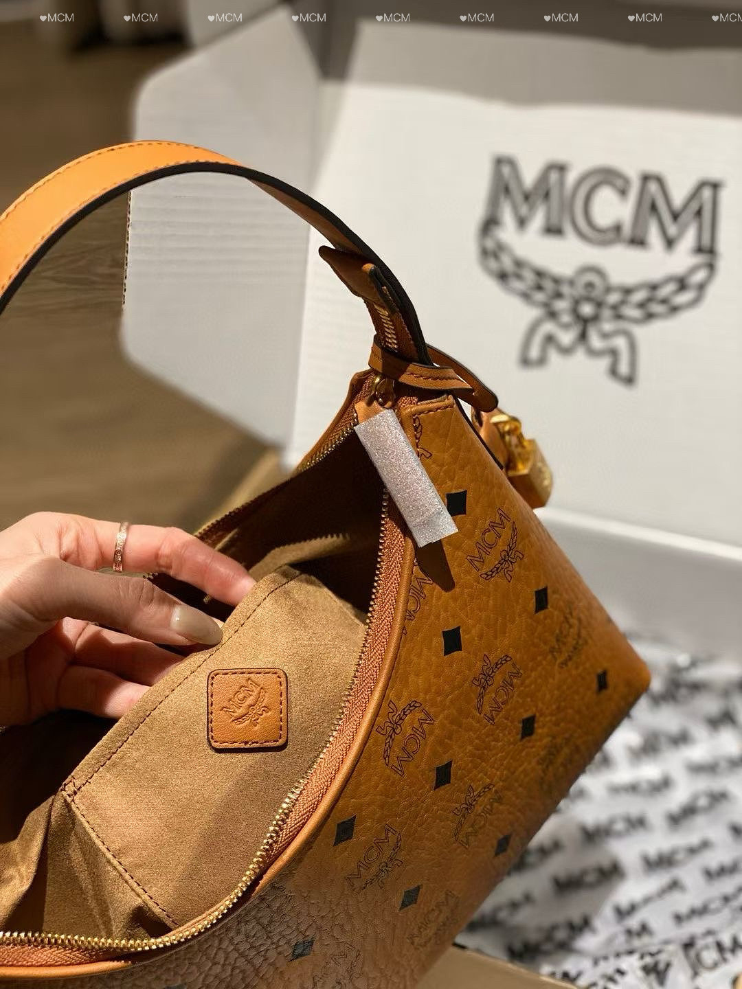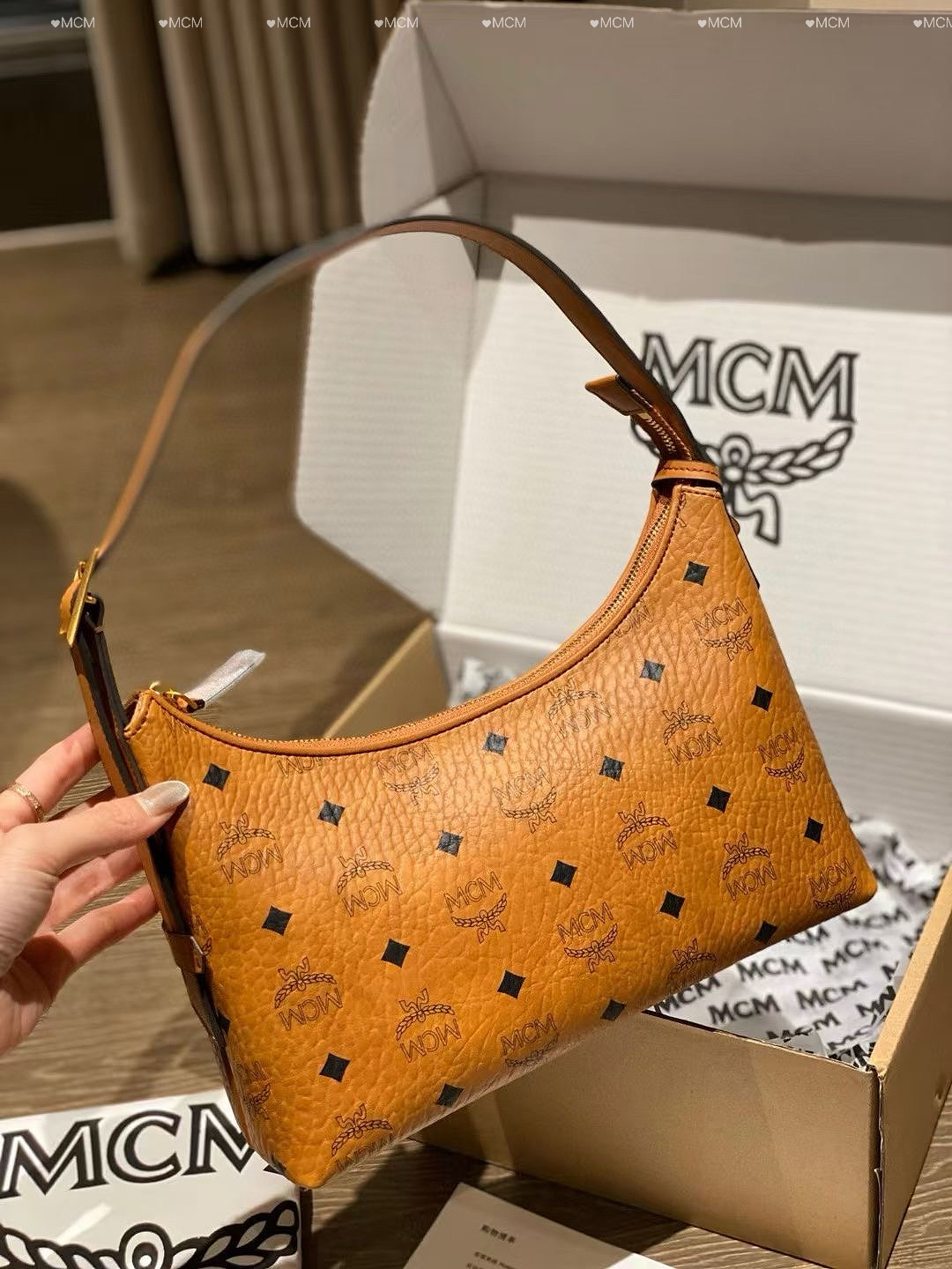 本篇笔记关联了MCM AREN HOBO 小号 轻奢时尚金锁百搭涂层字母印花老花满印牛皮革人造革可调节肩带单肩背提包腋下包 干邑色等商品,为用户提供真实的使用体验和购买参考。