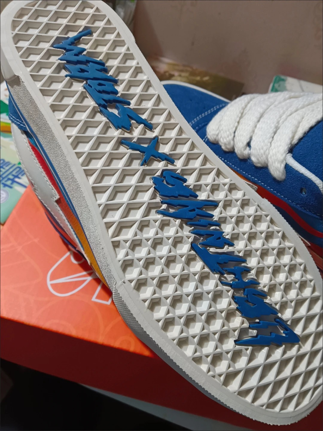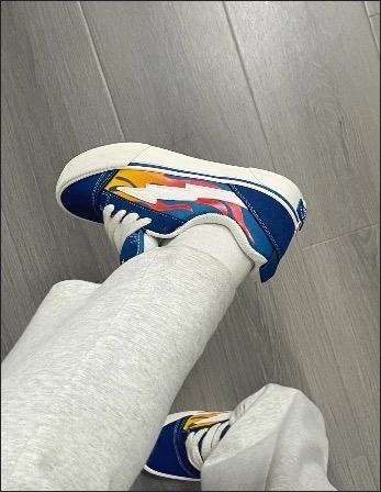 这鞋简直太惊艳啦!色彩搭配大胆又和谐,蓝、橙、红、白交织,时尚感拉满,走在街上回头率爆表。材质看着就结实,做工精细,缝线工整。上脚舒适轻便,无论是日常出街还是运动,都能轻松驾驭,性价比超高,真心推荐给追求个性与舒适的朋友们!