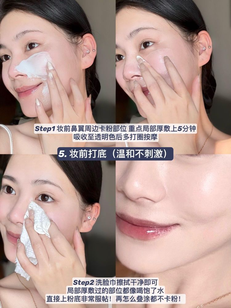📌【妆前鼻翼周边卡粉部位重点局部厚敷上5分钟 洗脸巾擦拭干净即可】