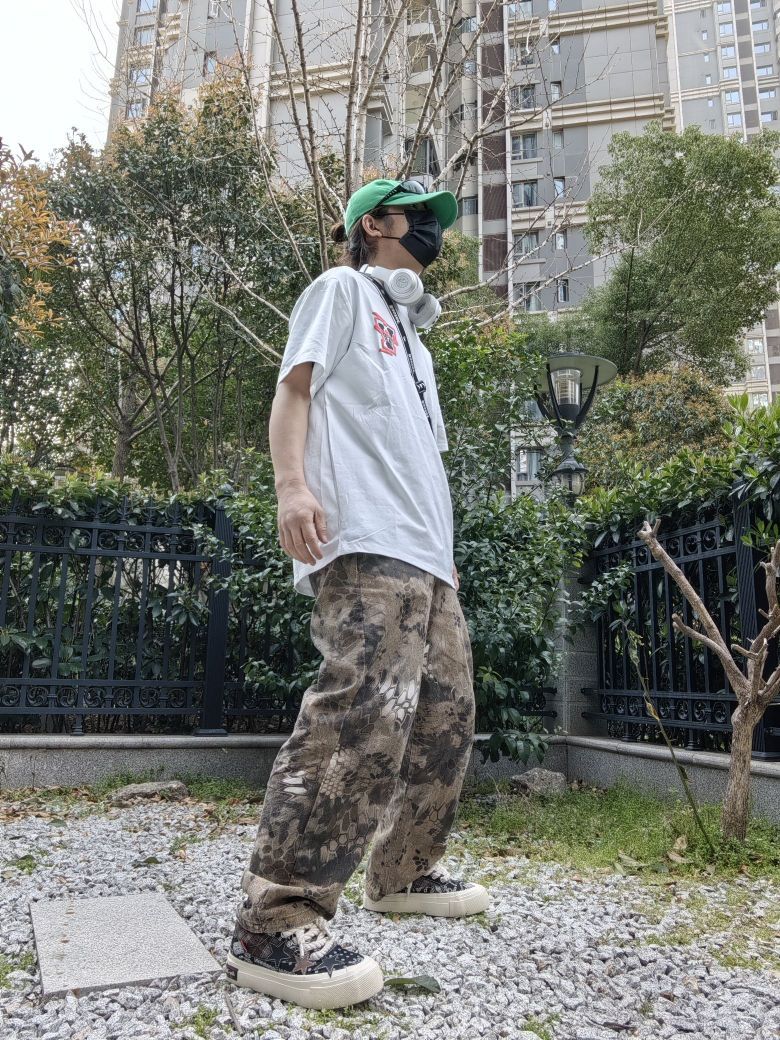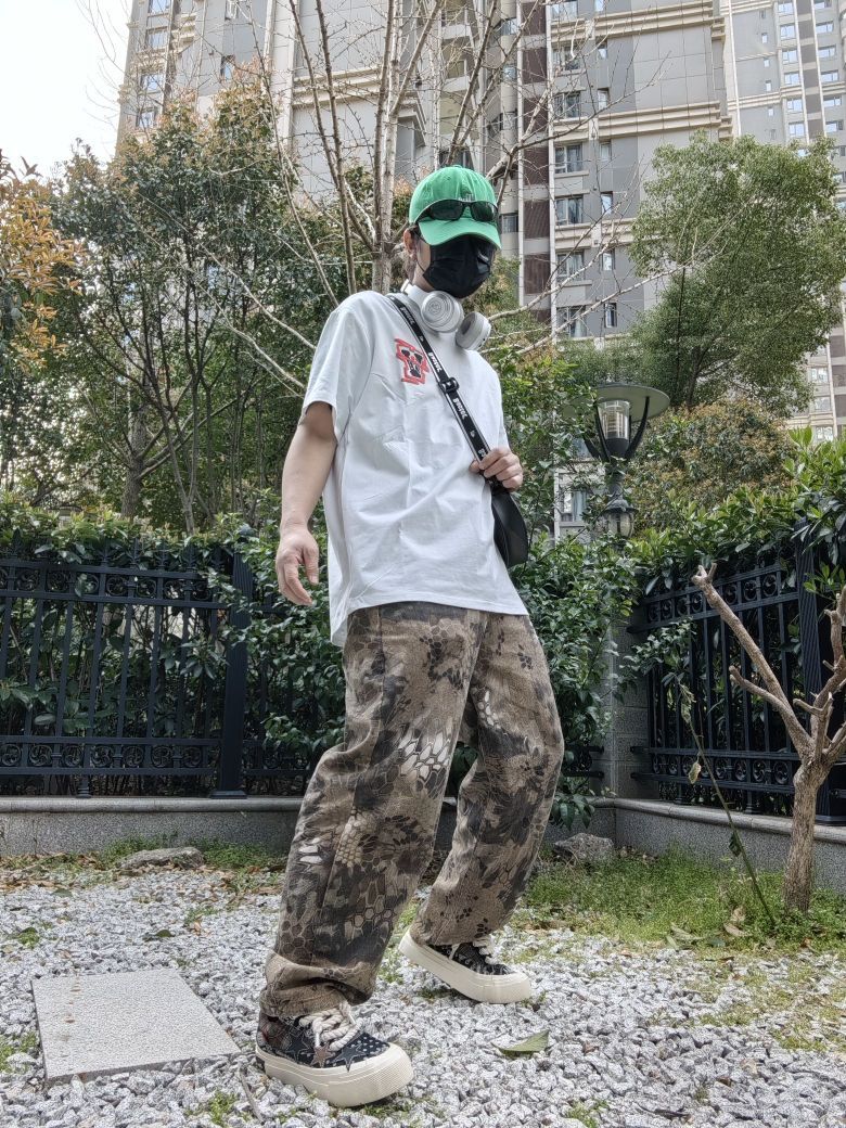 春日公园踏青出游穿搭分享 透气舒适 吸汗透气棉质短袖T恤 搭配户外风十足落叶🍂休闲裤 帆布透气的休闲板鞋出街是真不错 上衣:#维动 VEIDOORN 大logo 字母卡通印花棉质短袖T恤,纯色系棉质 透气吸汗,圆领基础款 宽松舒适,尺码xxl 不错 下装:落叶🍂直筒休闲裤 鞋子:腰果花街头风休闲板鞋