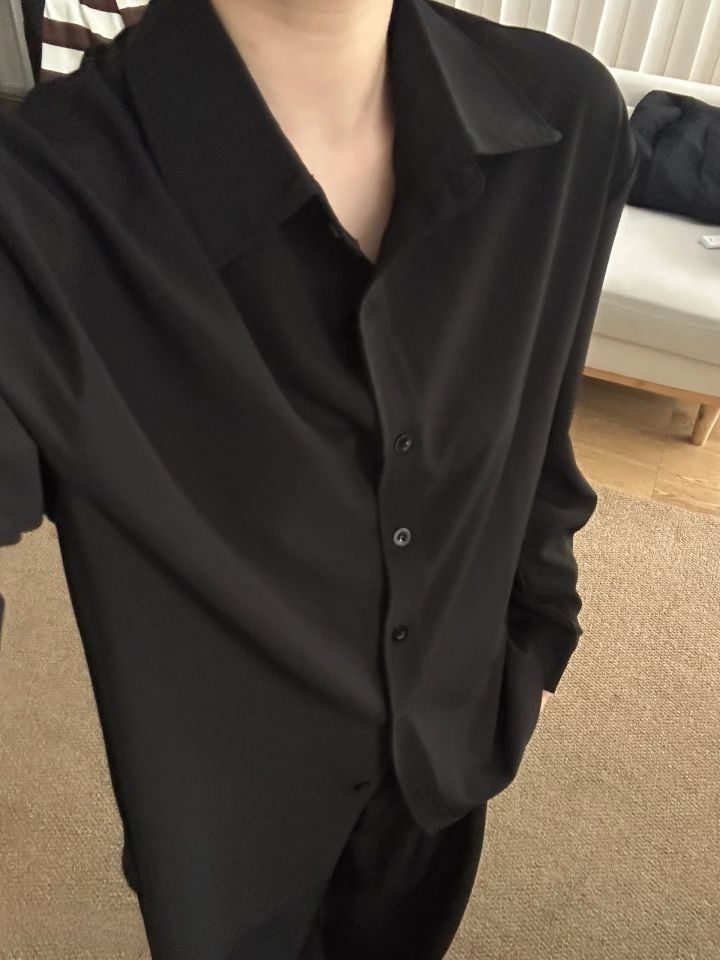 冰丝衬衫夏季坠爱~ 黑色真的巨显瘦啊啊啊!! 搭配黑色西裤,凉快又有气质