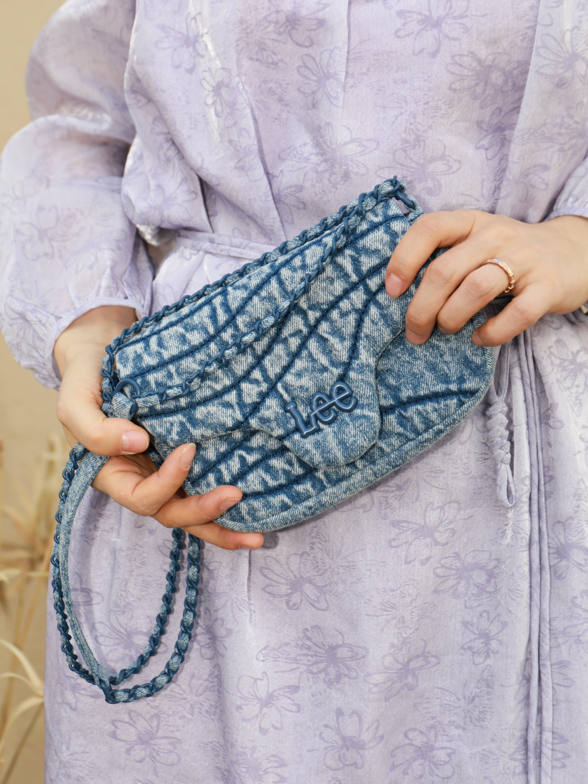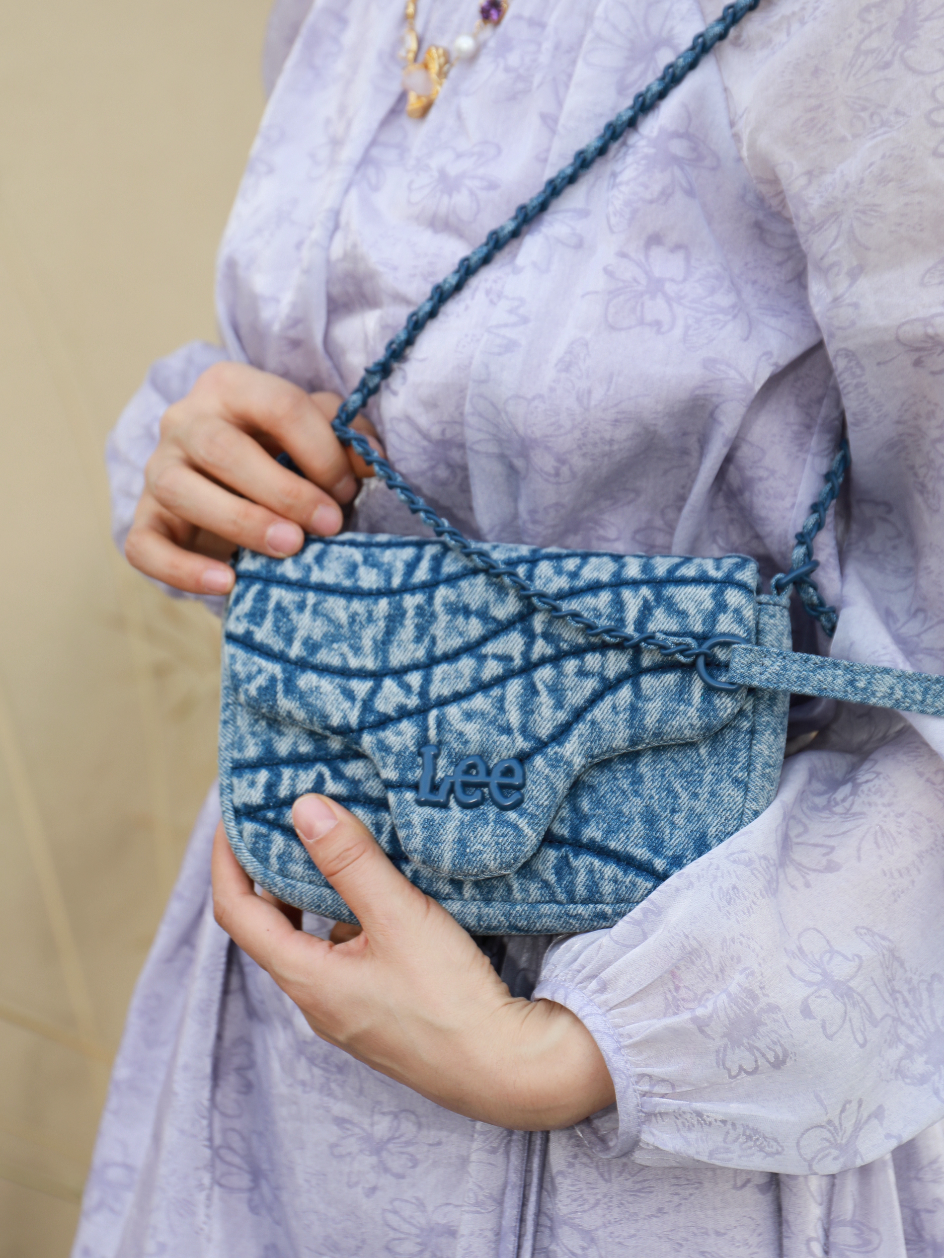 记忆里的春天 一半是日光~一半是花香终于可以 褪去厚厚的外套了清爽的穿搭~ 自然少不了小巧可爱的牛仔包啦 Lee是懂我的念 出门逛街约会背上这款合适的 正正好好放进我的爱美小心思 一个口红一个小粉饼 还有一些碎小的日常用品 整天好心情