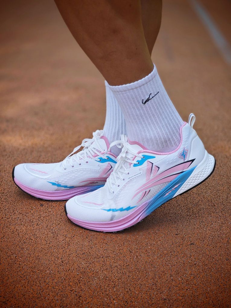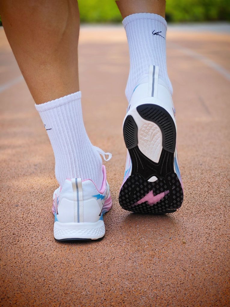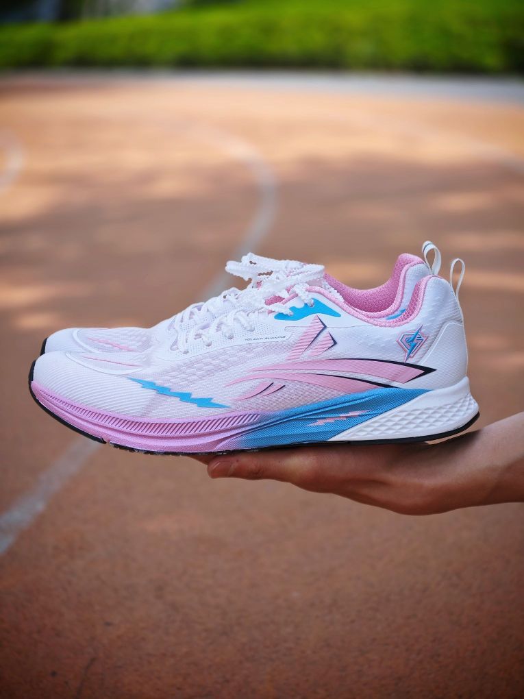 大家好,这里是爱健身的运动boy☞流连的轨迹、 今天要来分享我脚上这双沃兰迪911梦幻闪电蓝粉GL联名款跑鞋👟 这个颜值真的让人爱不释手。 我之前穿的一直是白紫配色,这次再次选择沃兰迪,因为穿过,所以信赖。 这款跑鞋是专门为体考设计的,性价比方面可以说炒鸡良心 它鞋子的造型流畅度高,前掌上翘不夸张,跑起来没有那么激进。 除了跑道,日常穿舒适度也高。 这双鞋整体的克重还是比较轻的,军工V800纯碳板...