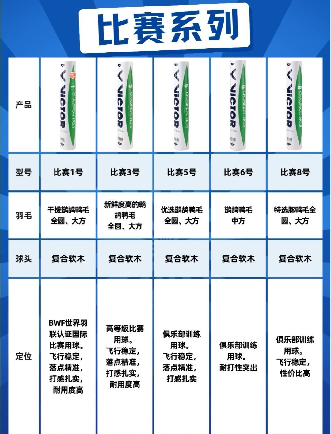 本篇笔记关联了VICTOR/威克多 大师系列 6号 比赛训练 碳音 飞行稳定 耐打 鹅毛 羽毛球 MASTER NO.6 大师6号、VICTOR/威克多 比赛系列 5号 耐打稳定 训练比赛 碳音 耐用 飞行稳定 鸭毛 羽毛球 比赛5号、VICTOR/威克多 金黄系列 5号 专业比赛 耐打稳定 飞行稳定 训练球 初学者 碳音 耐用 水鸭毛 羽毛球 金黄5号等商品,为用户提供真实的使用体验和购买参考。