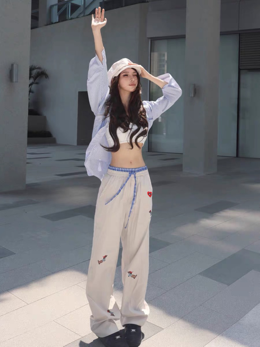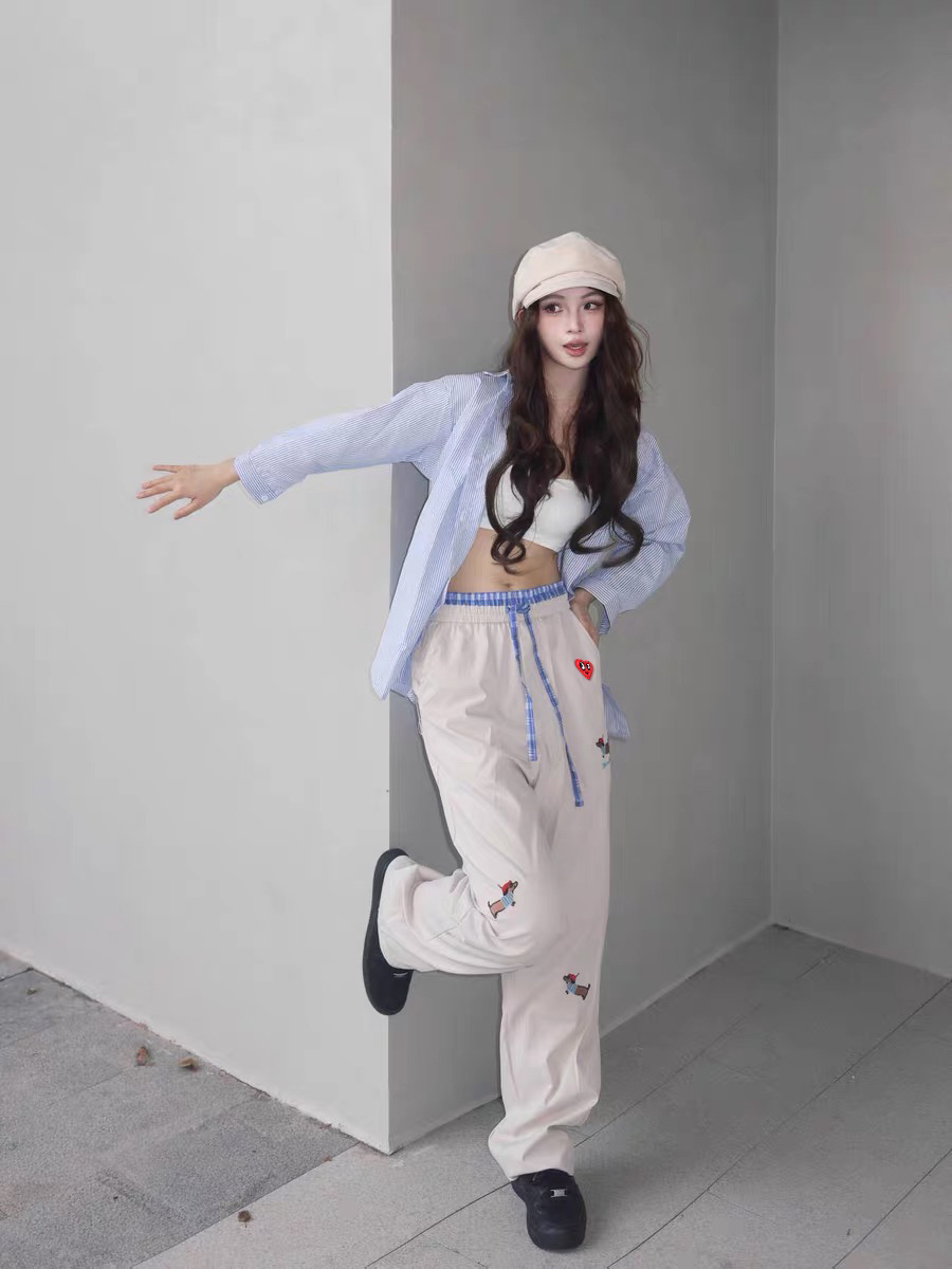 小狗工装裤我真的超级喜欢,版型没得说,抽绳设计腰围可调节,面料很有质感,春夏穿也不闷热,上身搭配了背心和衬衫,太好看啦