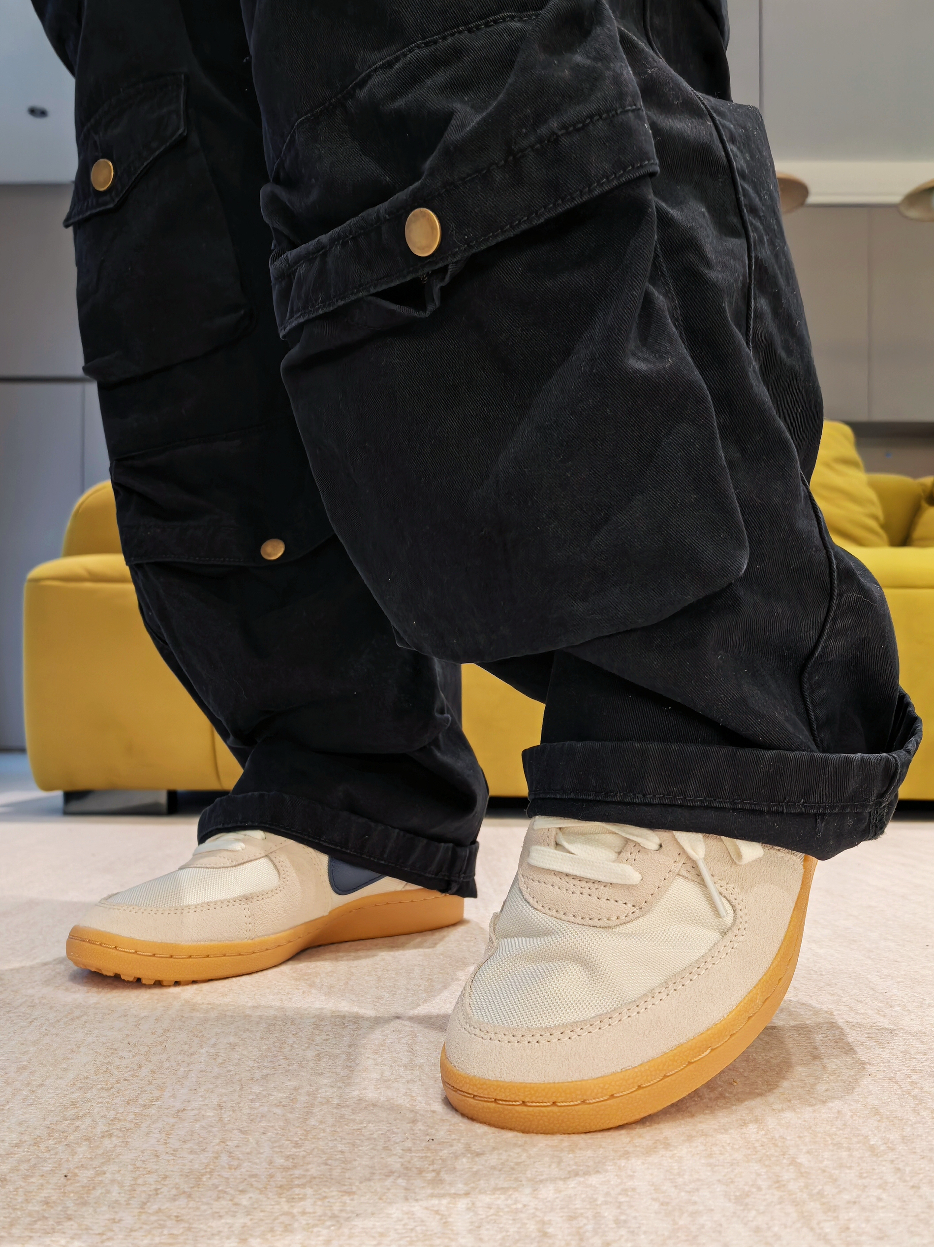 能够轻松拿捏🫴休闲复古感,薄底鞋今年依然火爆🔥 米灰色鞋身搭配到深蓝的钩子 搭配各类裤型都没问题 ------ 🏃我选择了一条纯黑的阔腿工装裤
