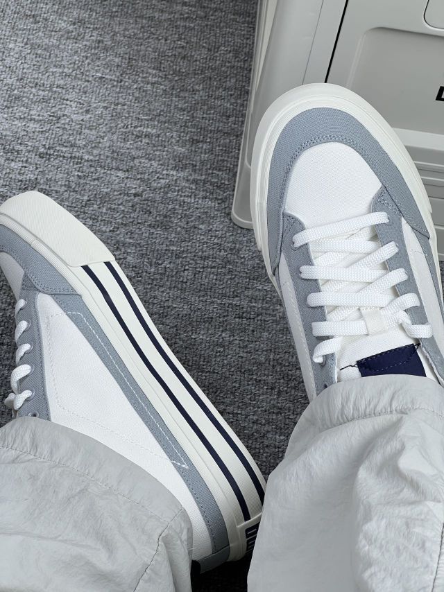 🔍【产品细节放大镜】 这双鞋简直是把“心机”穿在脚上了! 1️⃣ 材质混搭,走路都带风! 鞋面是透气的帆布,夏天穿不闷脚,鞋头有点做旧的感觉,复古味直接拉满!后跟那块深蓝皮革,像偷偷画了眼线,走路一摆一摆的,层次感绝了! 2️⃣ 白蓝配色,小心机拿捏! 主色是奶乎乎的米白,温柔又百搭,浅蓝条纹从鞋头溜到鞋尾,视觉上拉长双腿!深蓝色logo和鞋舌标,搭牛仔裤时露个蓝标,瞬间变身ins博主,走路都...