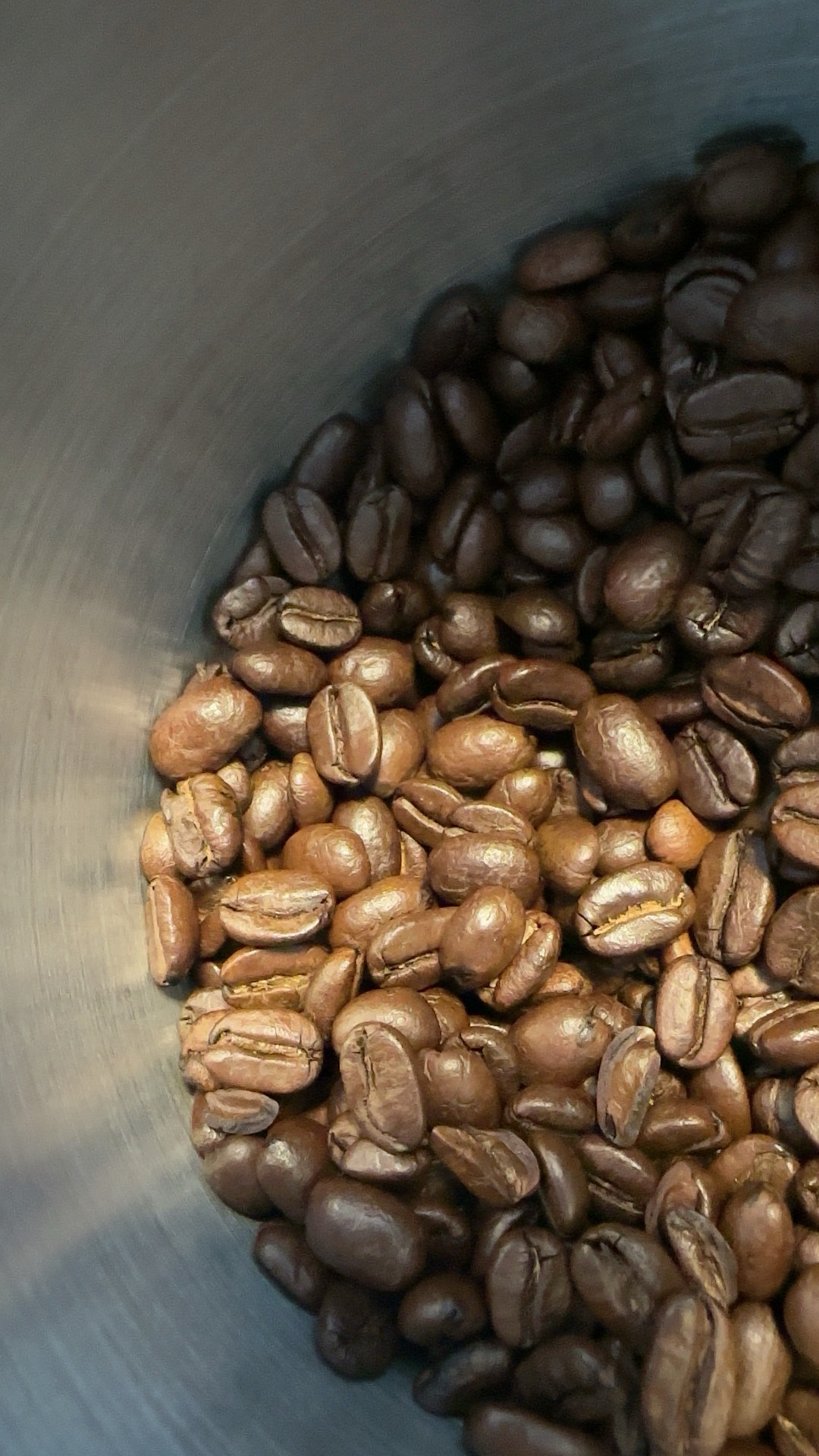 放进了密封罐保存 👌每次取豆的时候比较方便😁 这是手冲的豆子📈 📈 📈 每次用15克 ⚖味道浓郁 ,操作起来非常简单 ,很满意的一款豆子,喜欢他浓厚的味道,家里喝瑞幸同款😁