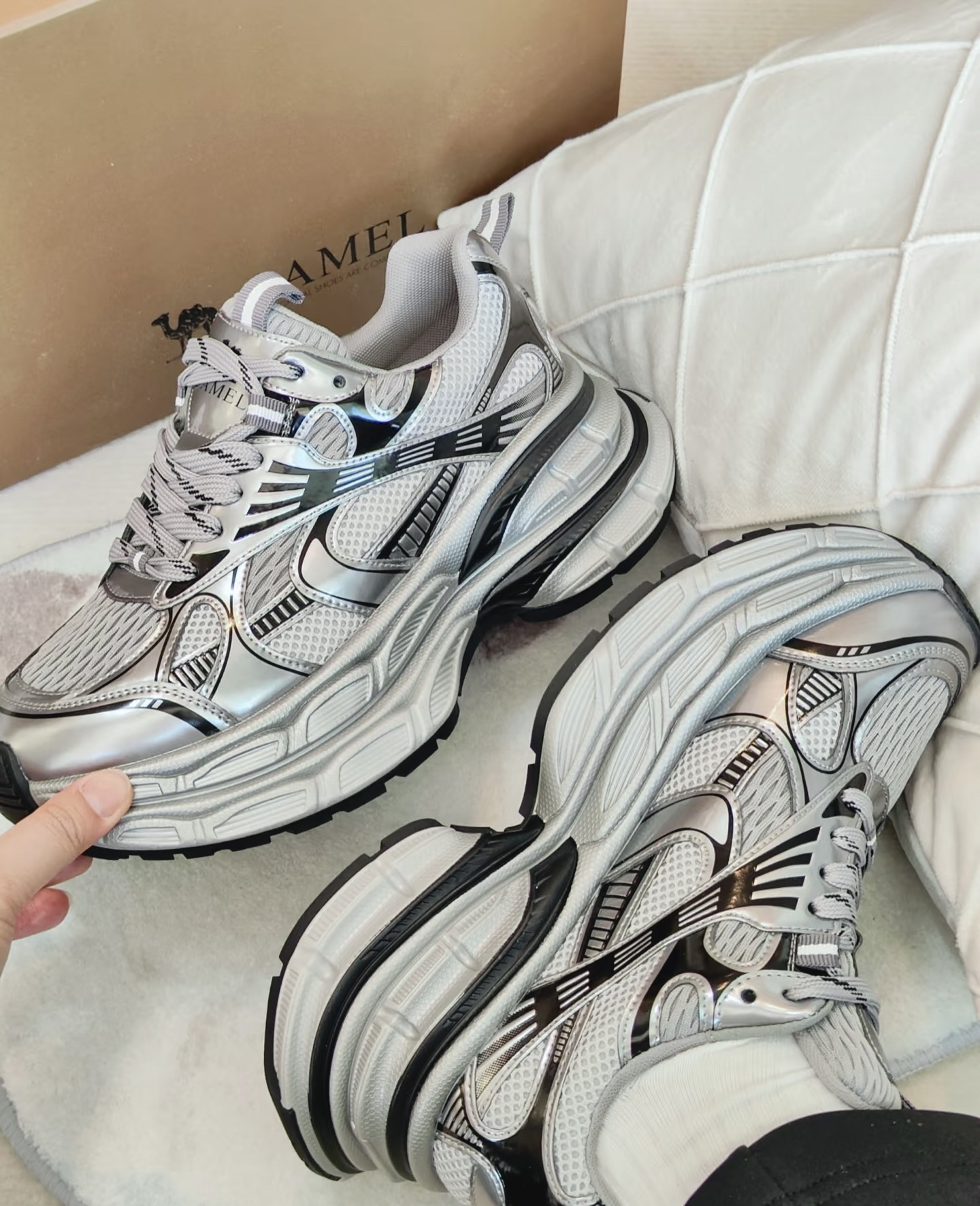 帅气又百搭,这双银色配色颜值拉满!!!厚底5cm增高,小个子穿上秒变腿精,简直是小个子的福音!日常穿搭轻松拿捏!