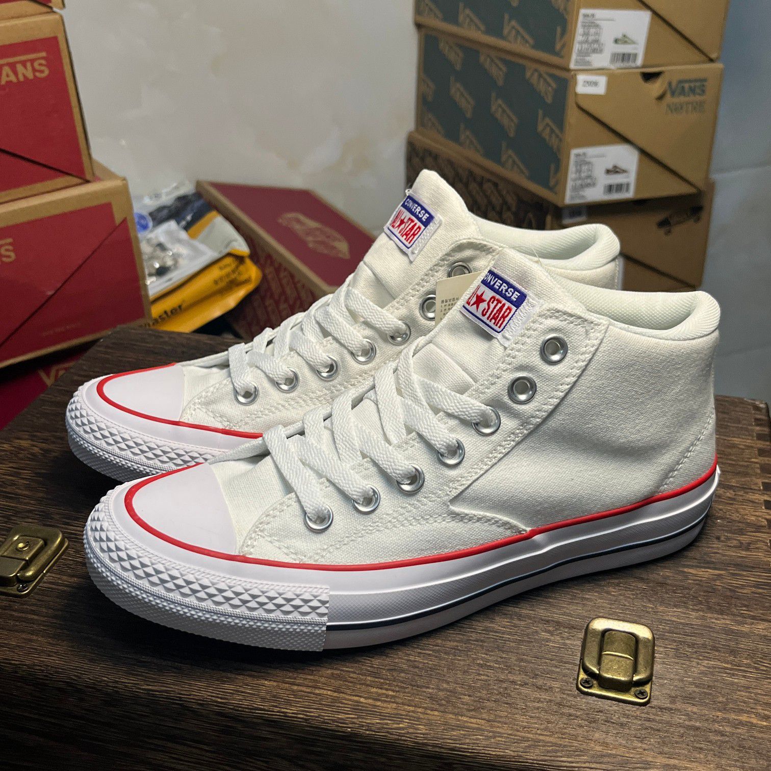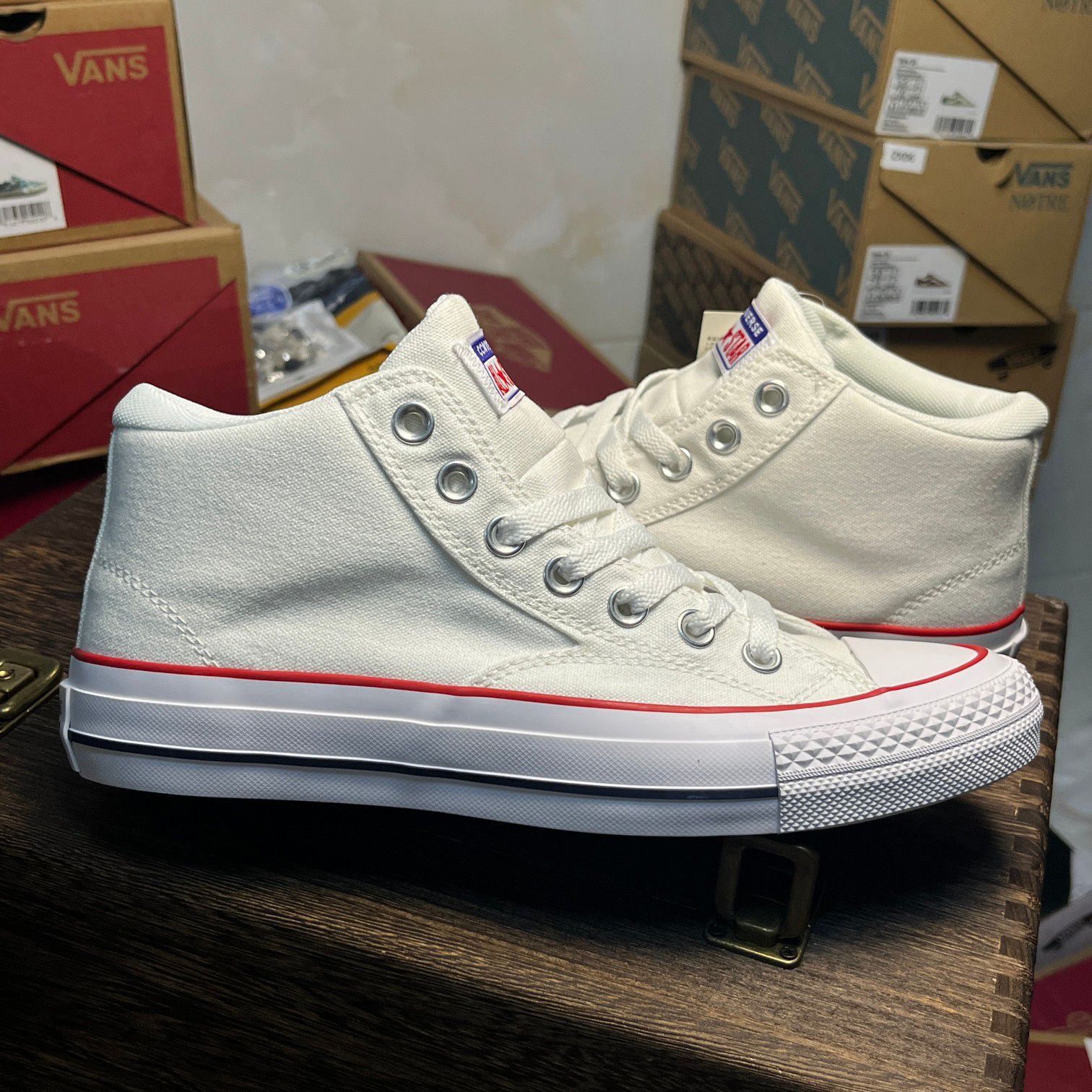 宝子看过来!这双匡威高帮帆布鞋,经典中的经典!简洁大气的白色鞋面,搭配醒目红边,时尚感拉满。标志性的匡威星箭标,彰显潮流态度。高帮设计修饰腿部线条,怎么搭都好看,牛仔裤、短裙都适配。优质帆布面料透气,橡胶鞋底舒适耐穿。无论是日常出街还是运动休闲,它都能轻松hold住,助你成为街头焦点,闭眼入不亏!